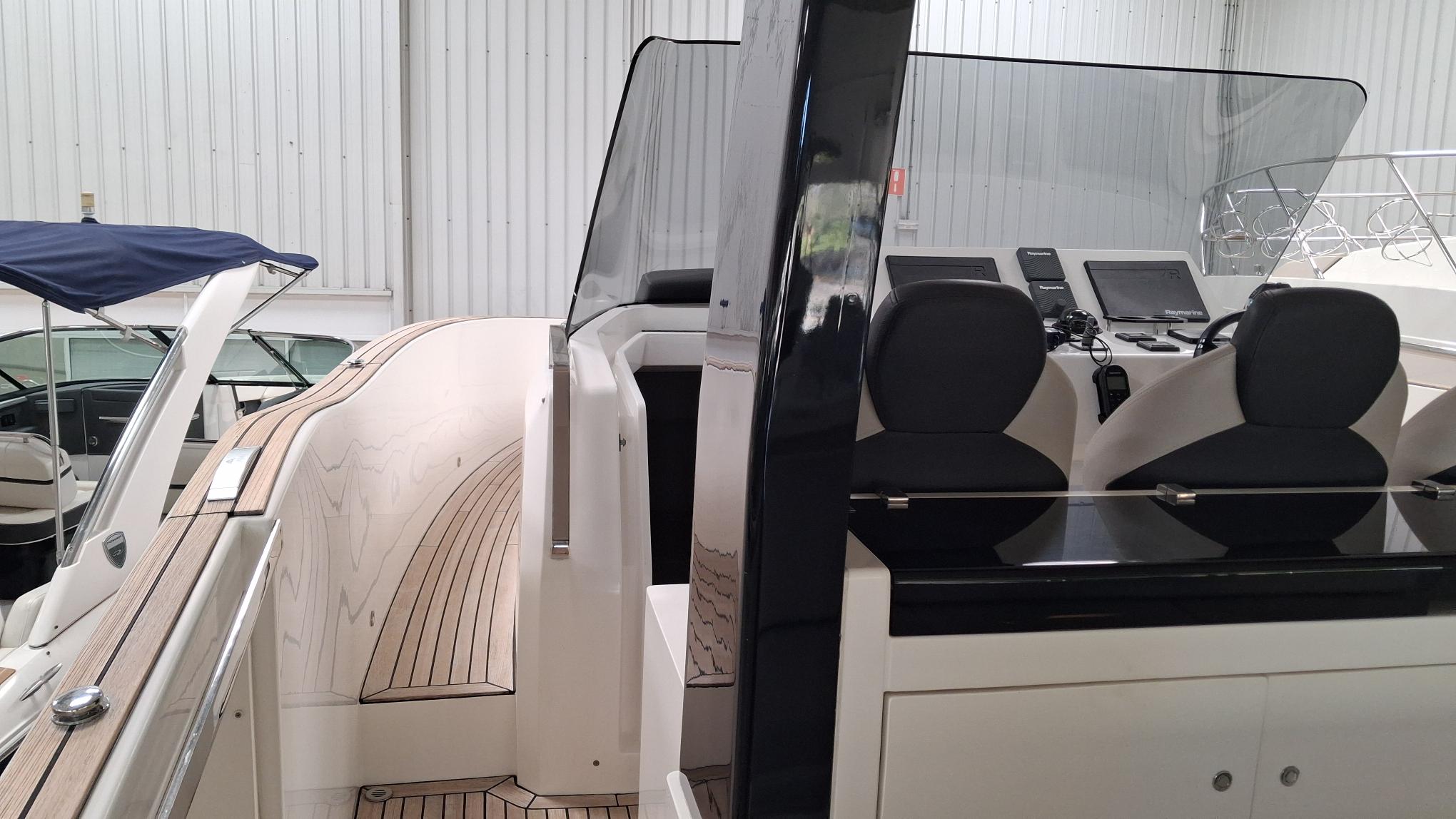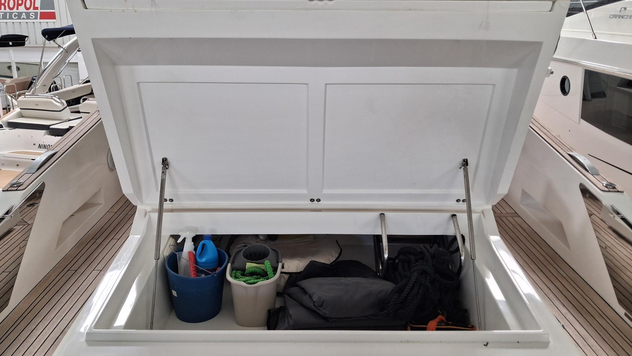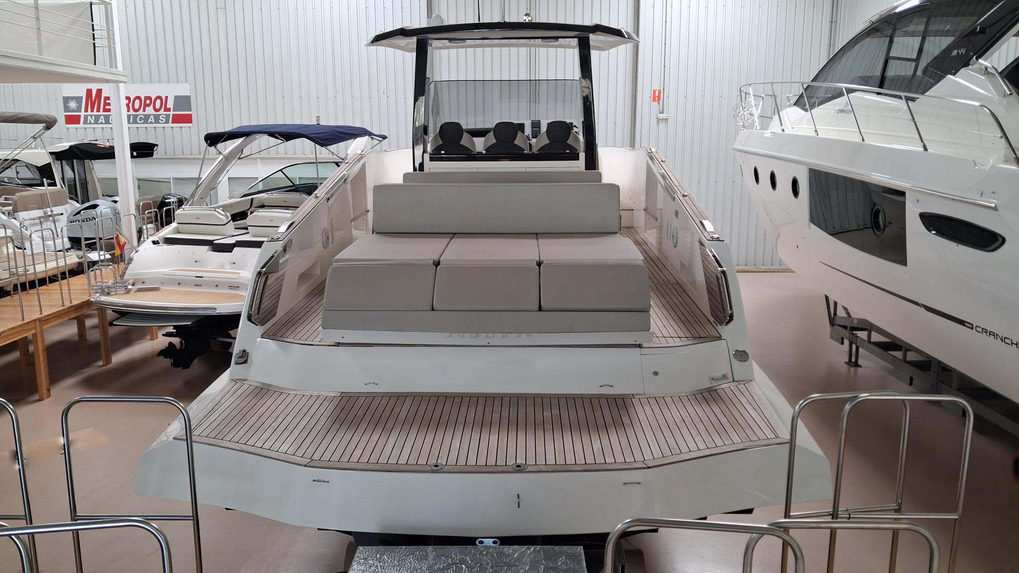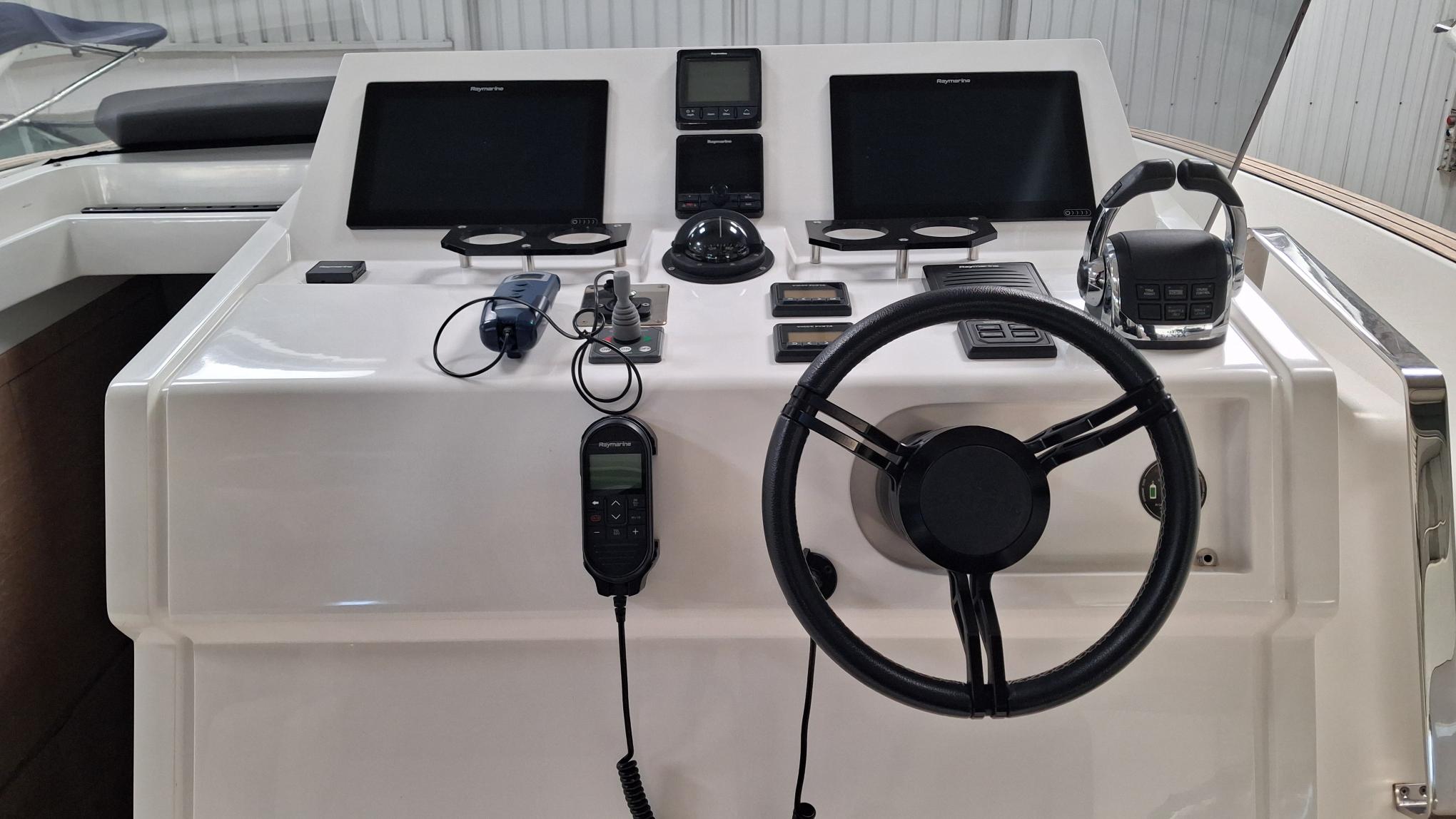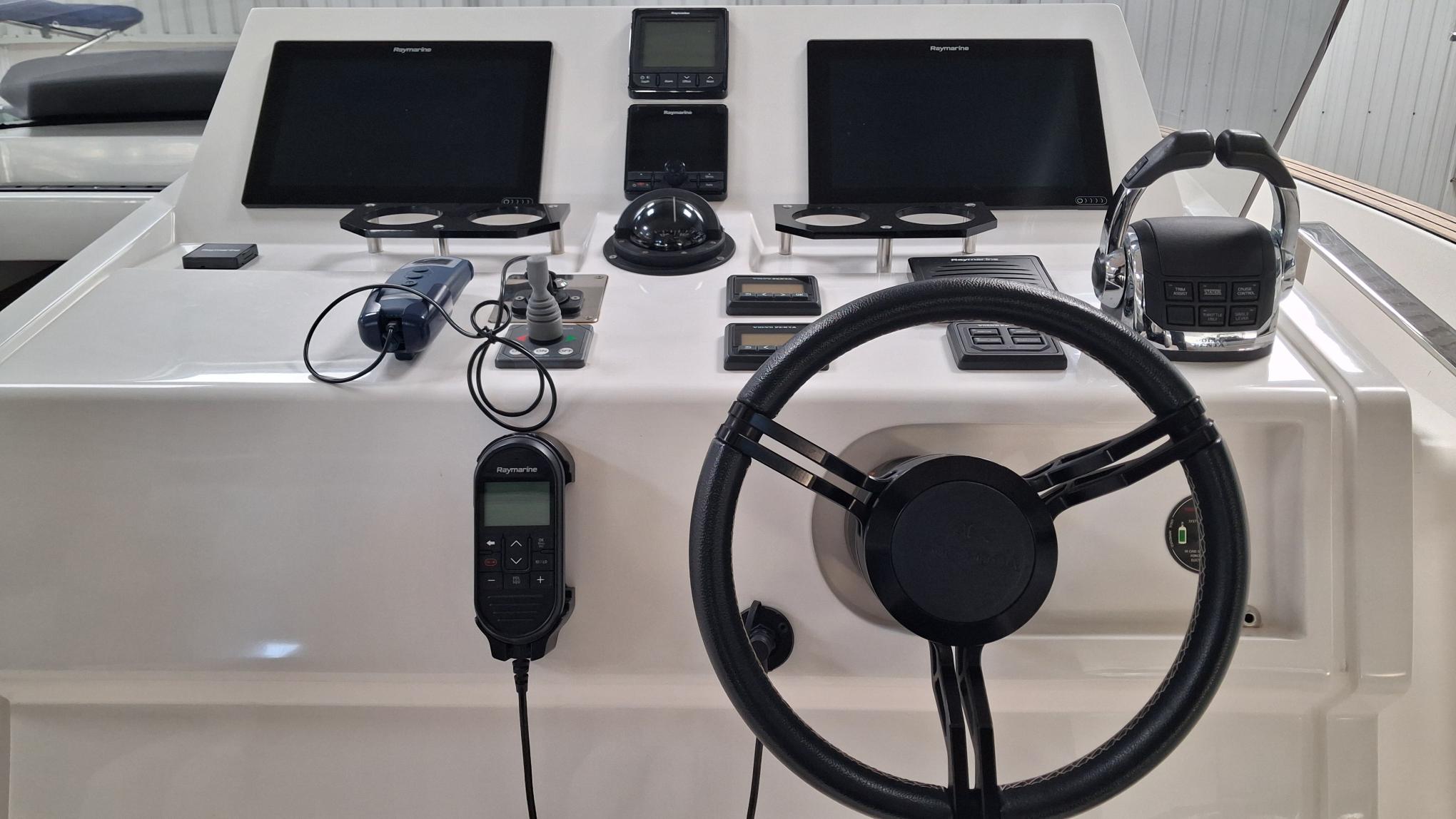 Cabina de convidats amb dos llits - Nevera a la cabina de 130 l - Aire condicionat - Radio Fusion amb altaveus - Funda de seients pilotatge - Funda solàrium i seients popa - Funda solàrium de proa - Llums de cortesia a la coberta - Taula de banyera - Hard top - Tendal haima a popa amb màstils desmuntables - Passarel·la - Hèlix de proa - 2 pantalles Raymarine Multidisplay Asion 12" - VHF - Pilot automàtic - Profundímetre - Comptador de cadena - Càmera de maniobra - Pre-instal·lació per a TV - Antifouling.
