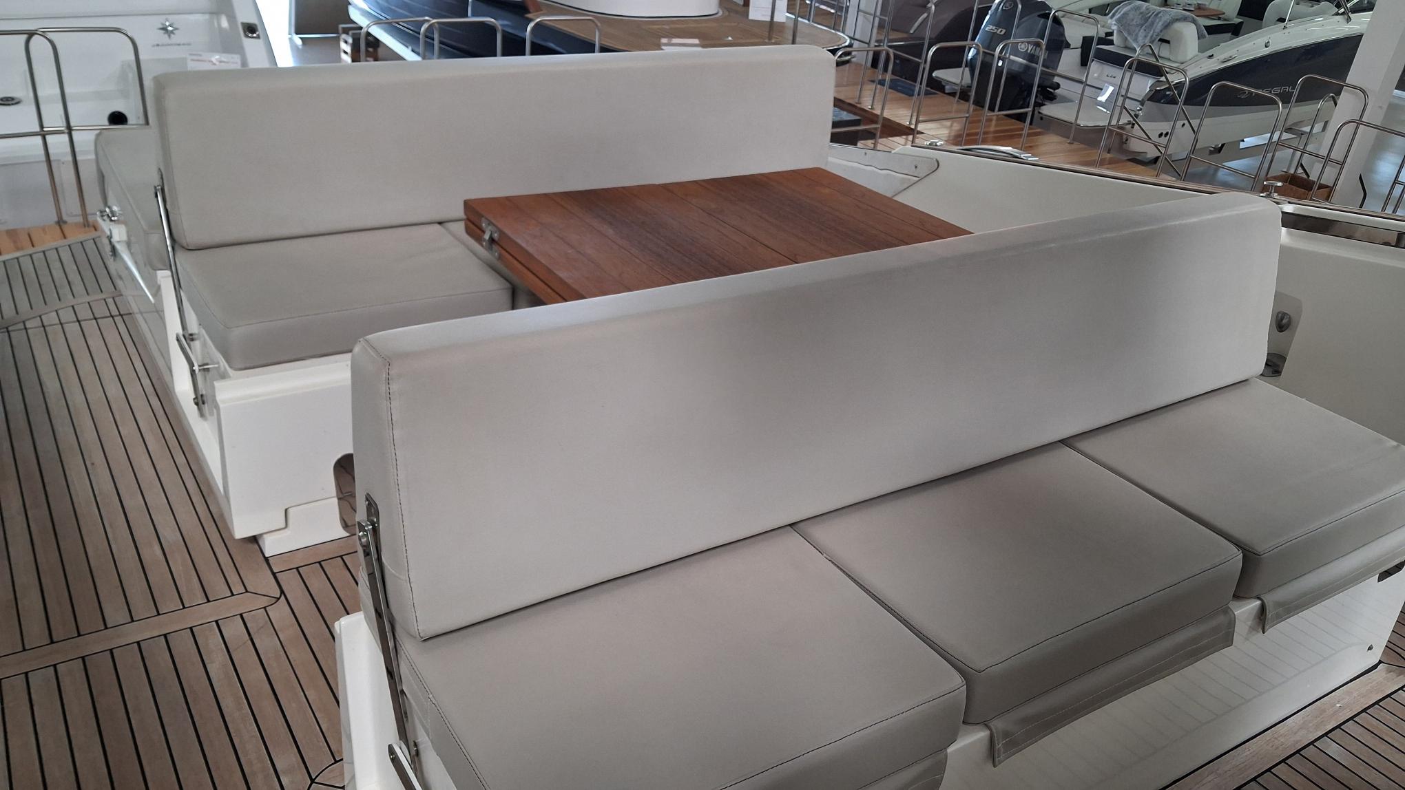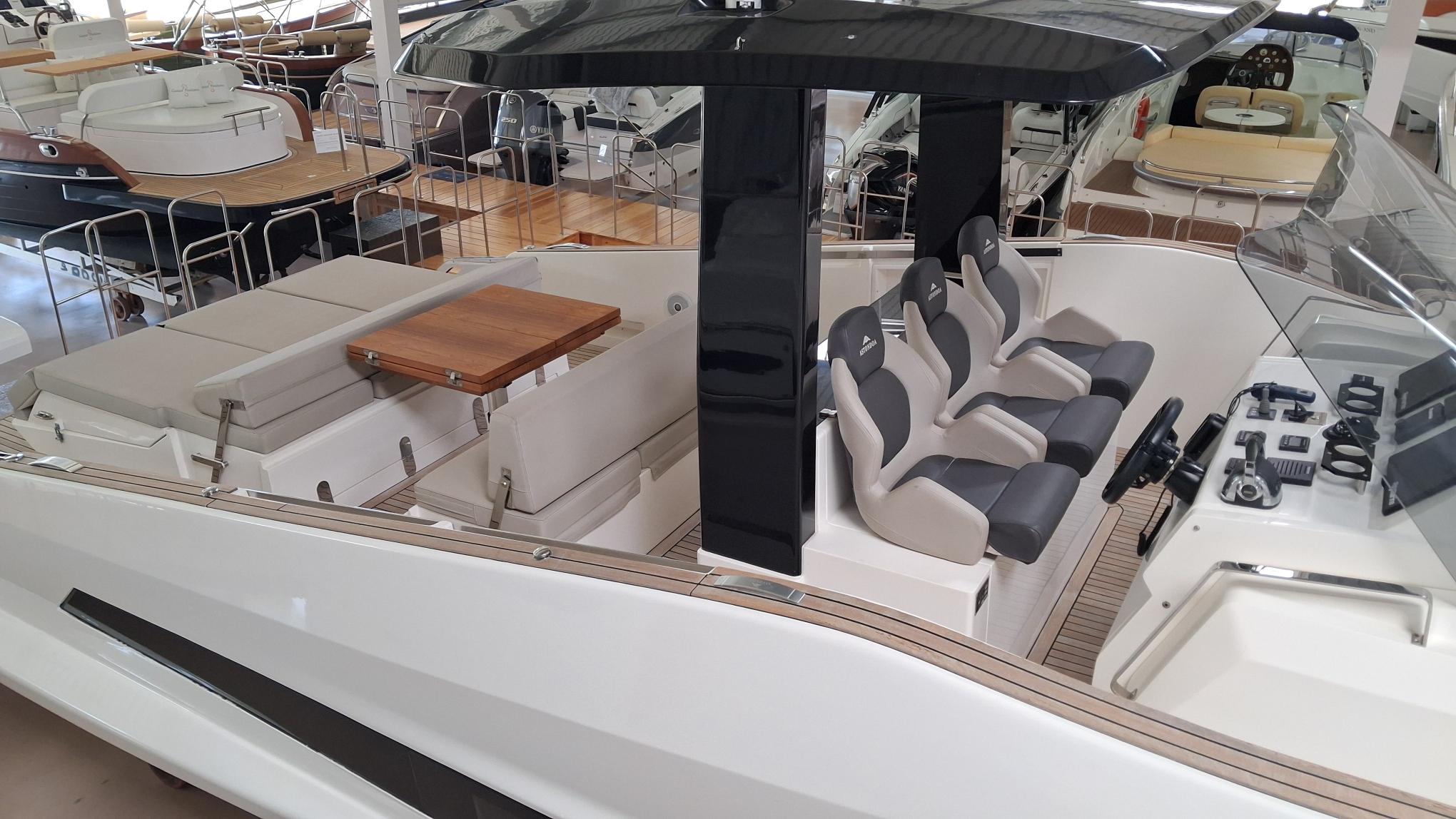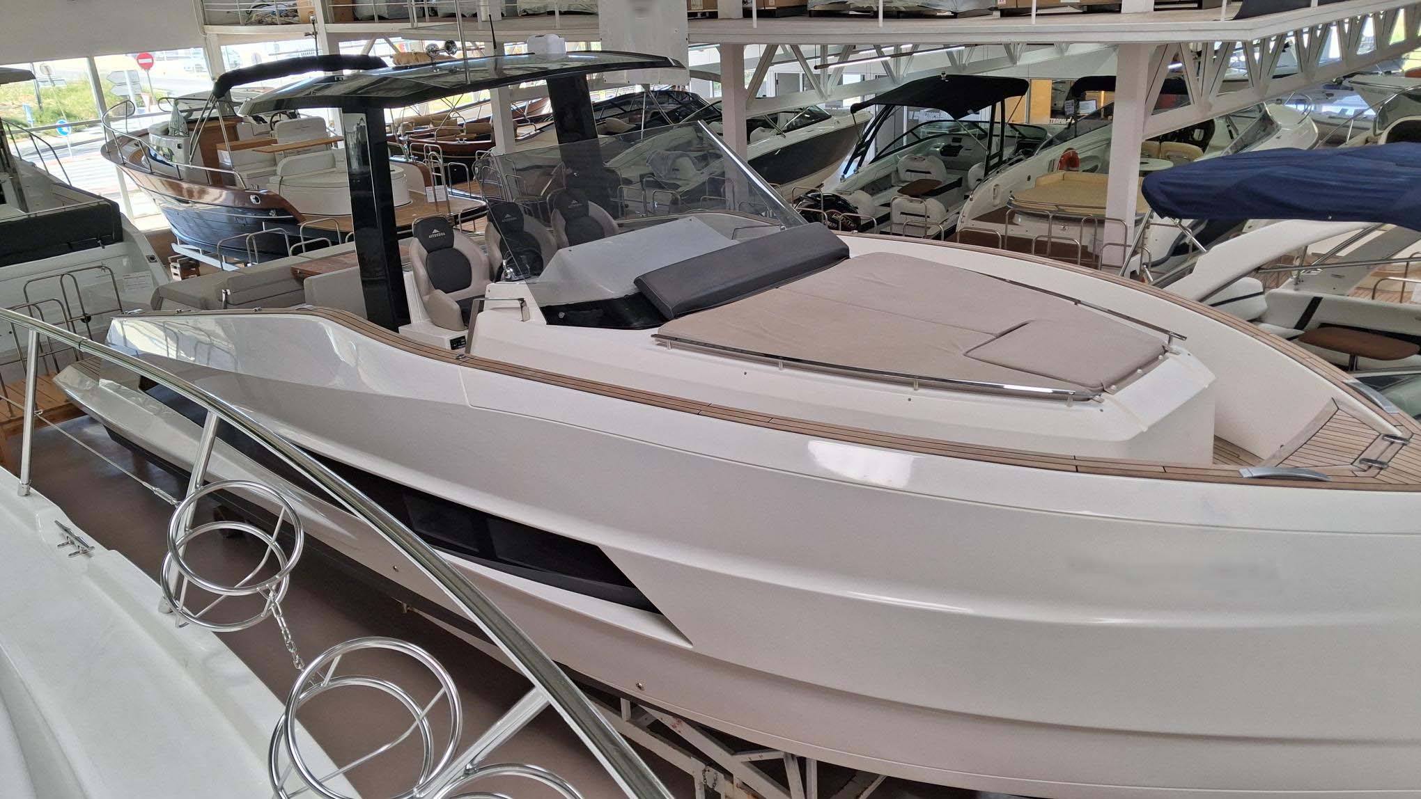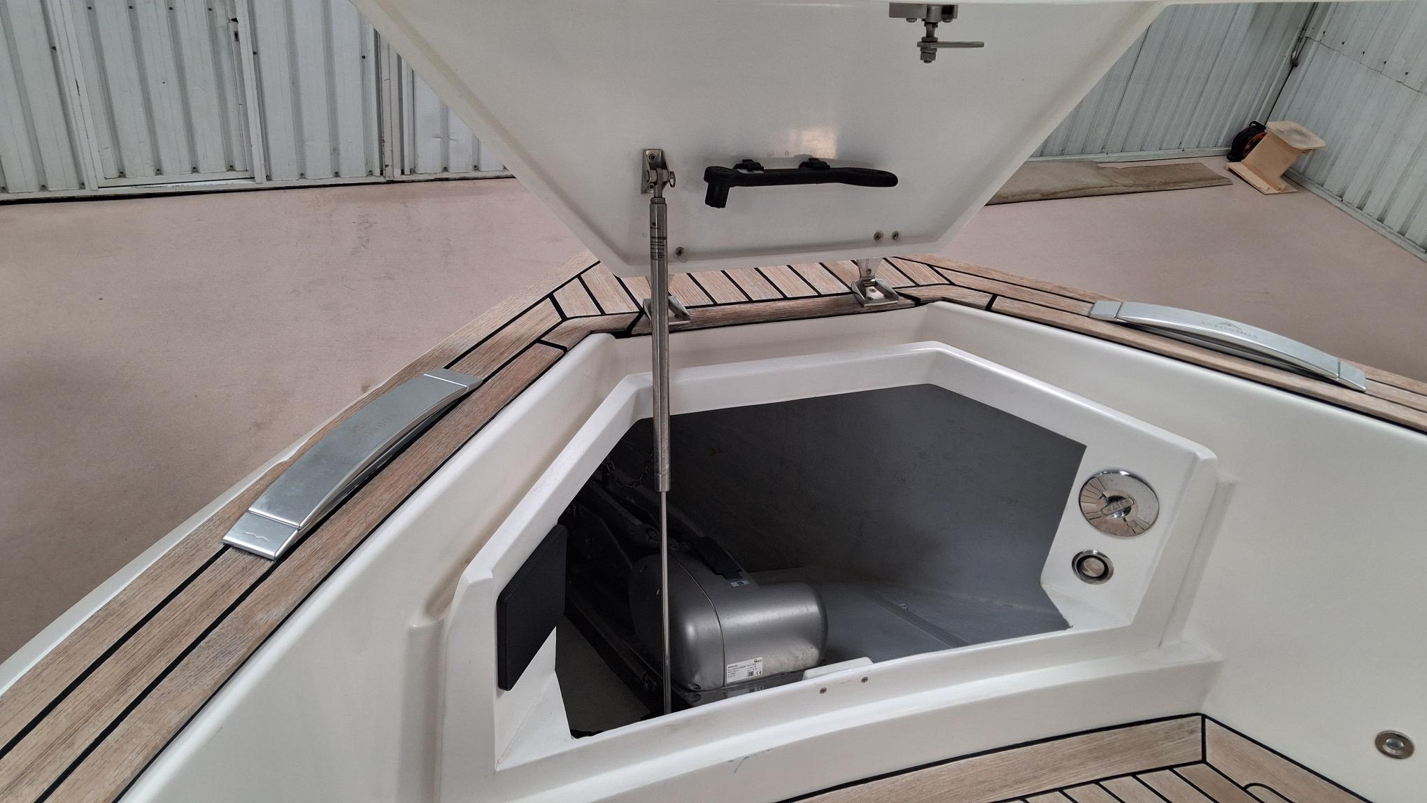 Cabina de convidats amb dos llits - Nevera a la cabina de 130 l - Aire condicionat - Radio Fusion amb altaveus - Funda de seients pilotatge - Funda solàrium i seients popa - Funda solàrium de proa - Llums de cortesia a la coberta - Taula de banyera - Hard top - Tendal haima a popa amb màstils desmuntables - Passarel·la - Hèlix de proa - 2 pantalles Raymarine Multidisplay Asion 12" - VHF - Pilot automàtic - Profundímetre - Comptador de cadena - Càmera de maniobra - Pre-instal·lació per a TV - Antifouling.