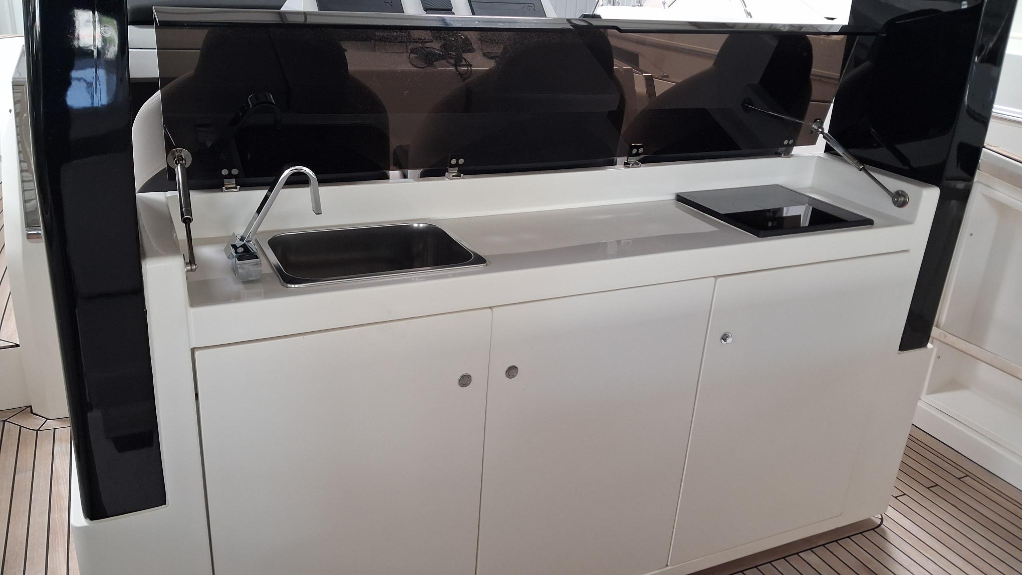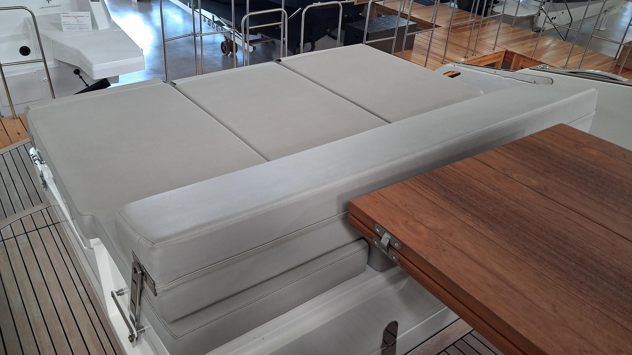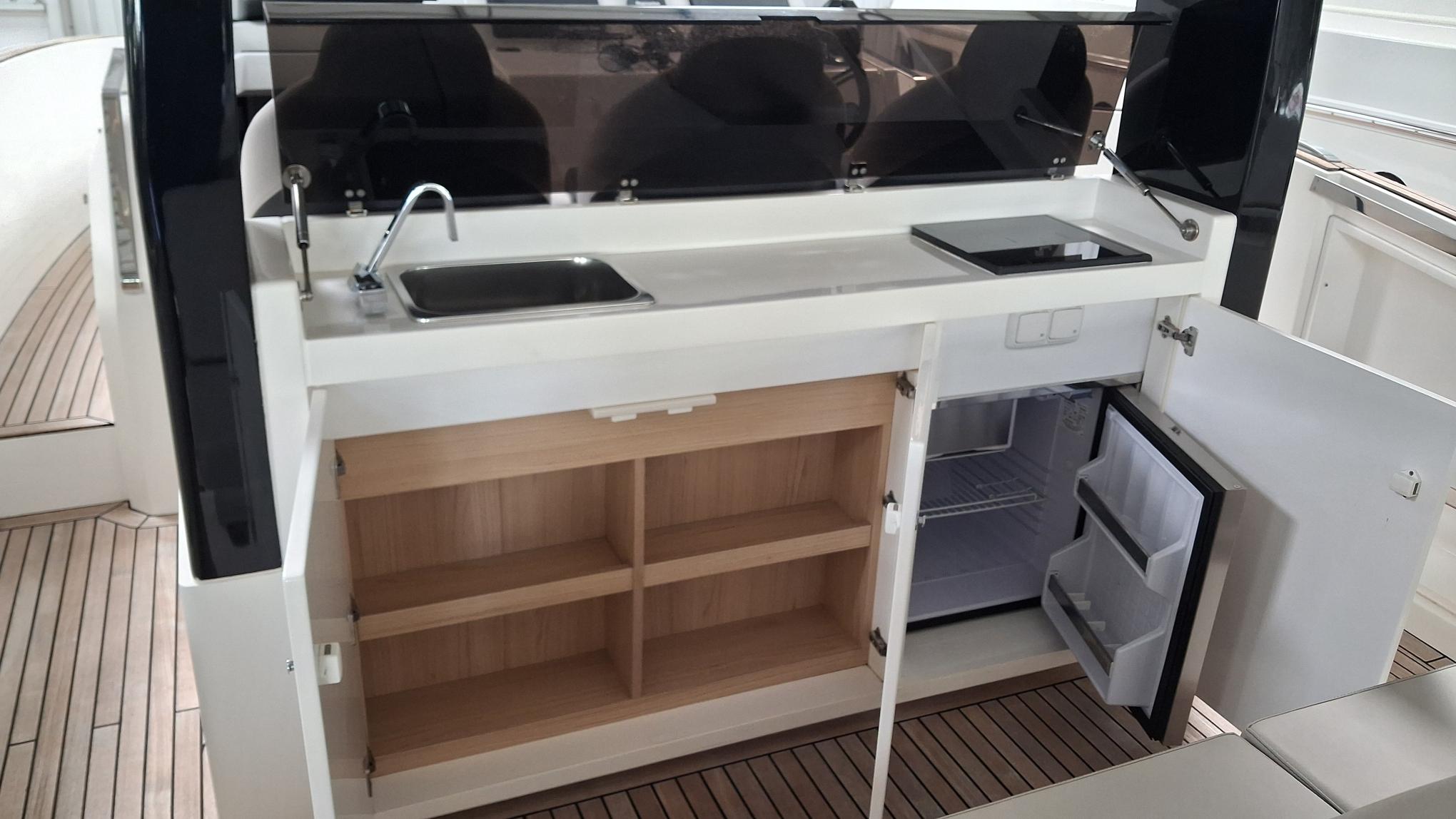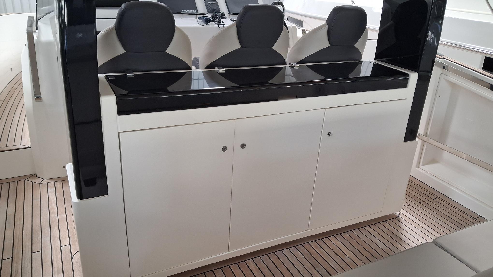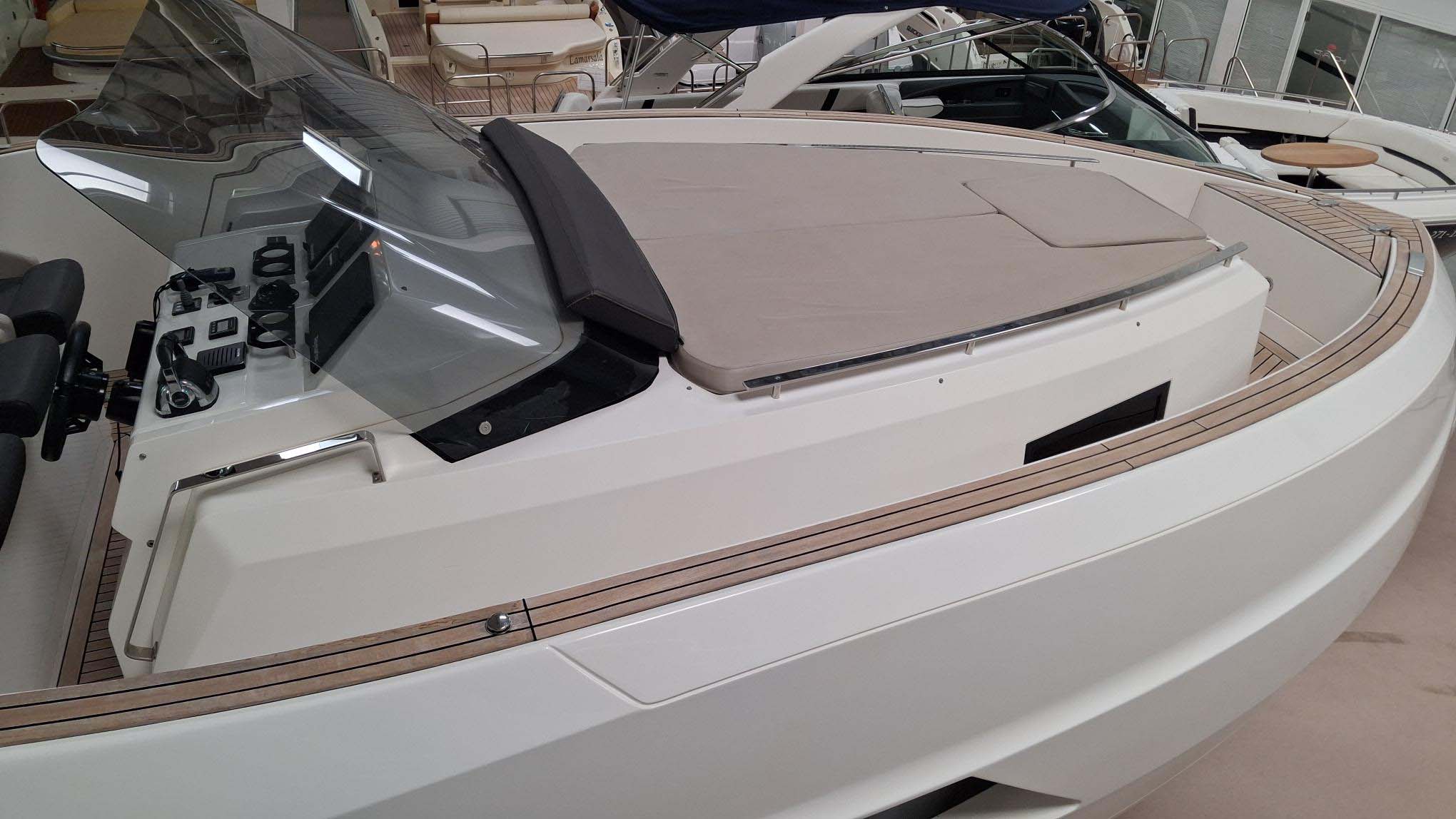 Cabina de convidats amb dos llits - Nevera a la cabina de 130 l - Aire condicionat - Radio Fusion amb altaveus - Funda de seients pilotatge - Funda solàrium i seients popa - Funda solàrium de proa - Llums de cortesia a la coberta - Taula de banyera - Hard top - Tendal haima a popa amb màstils desmuntables - Passarel·la - Hèlix de proa - 2 pantalles Raymarine Multidisplay Asion 12" - VHF - Pilot automàtic - Profundímetre - Comptador de cadena - Càmera de maniobra - Pre-instal·lació per a TV - Antifouling.