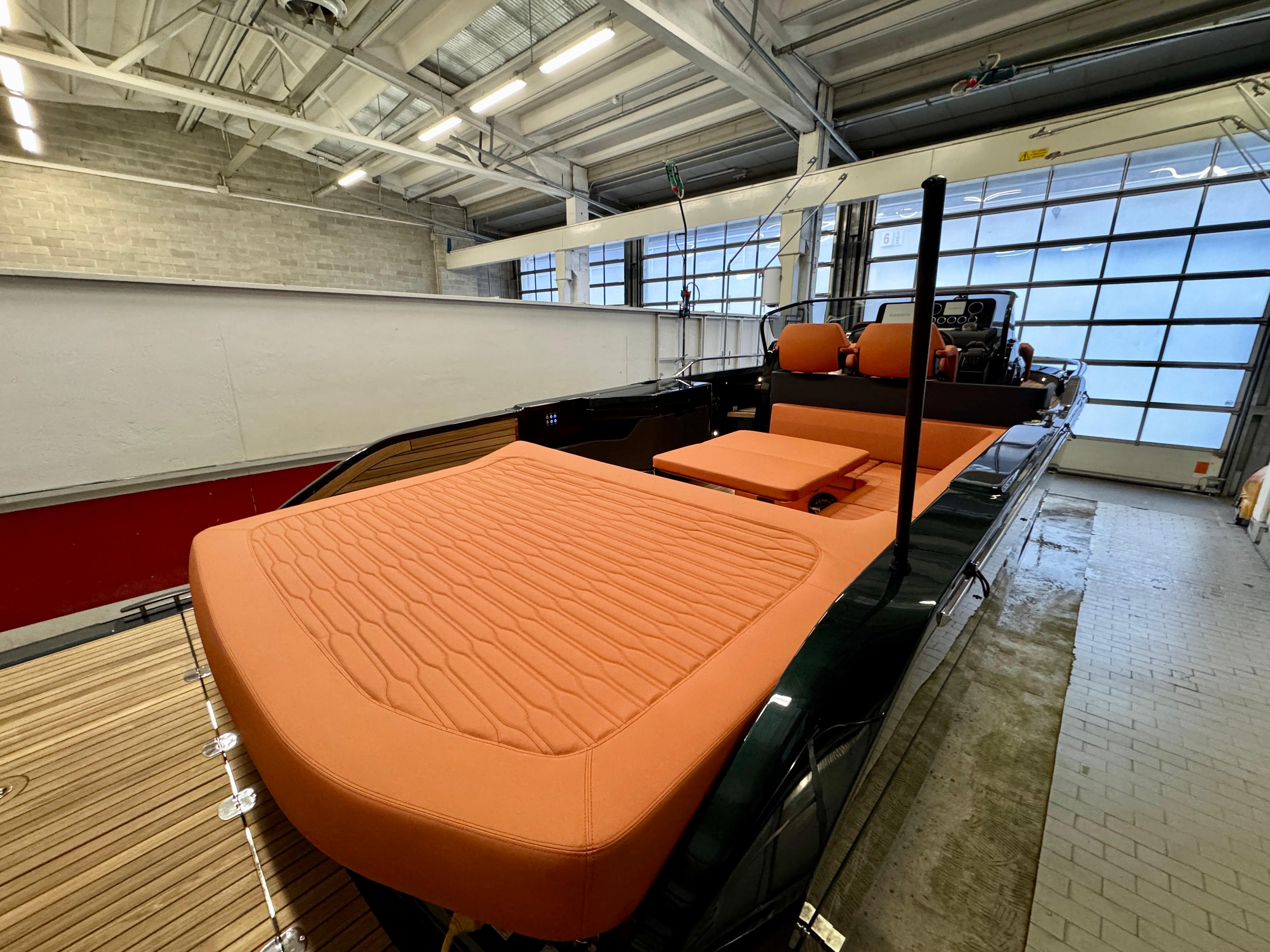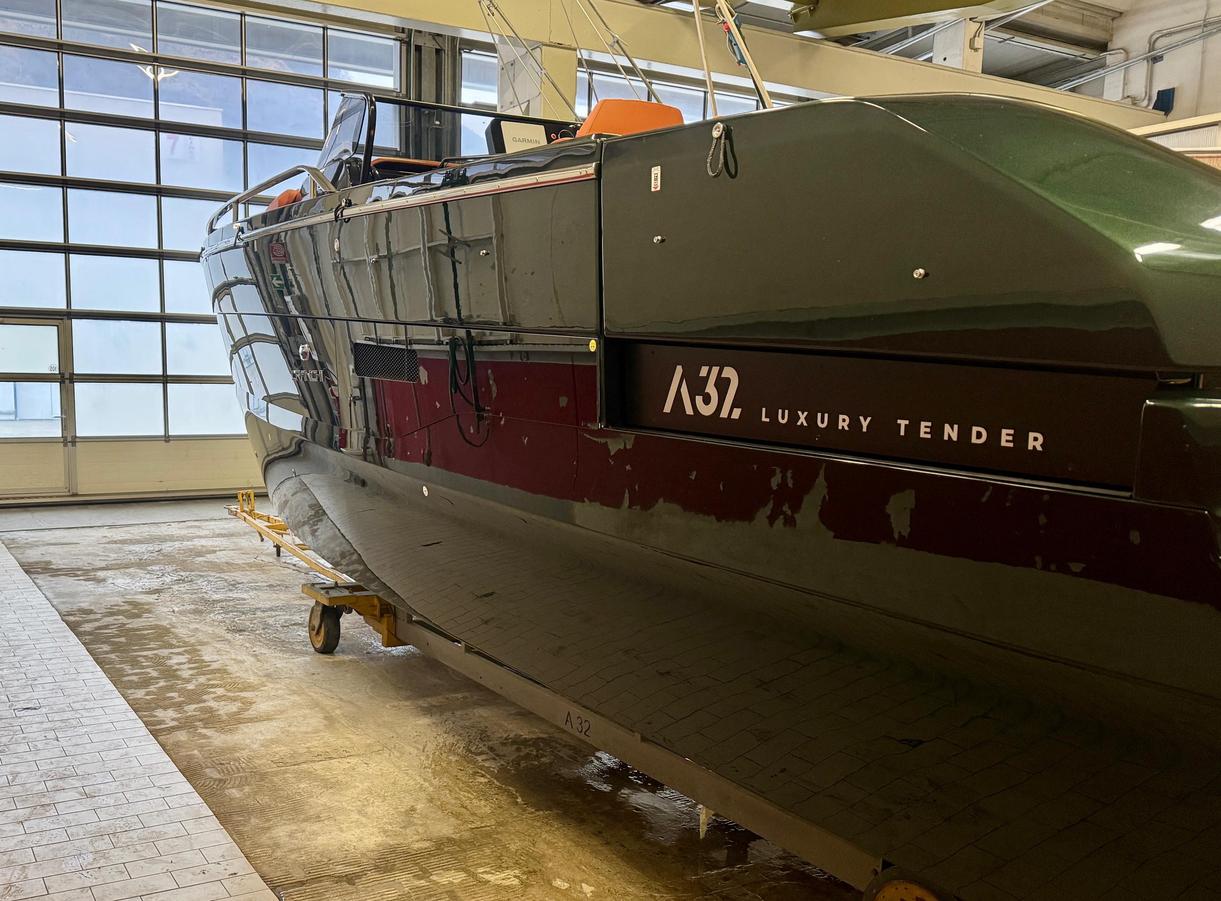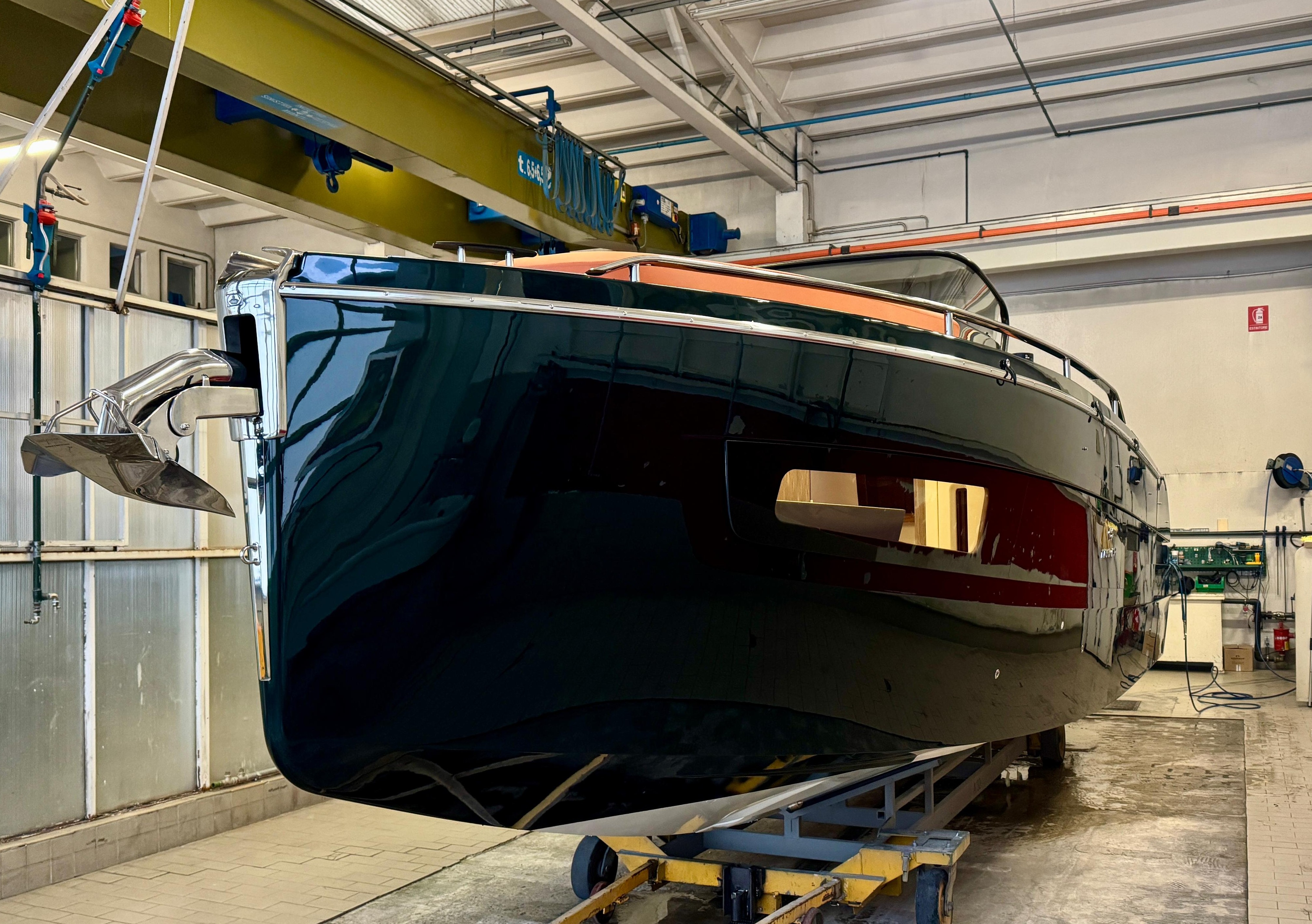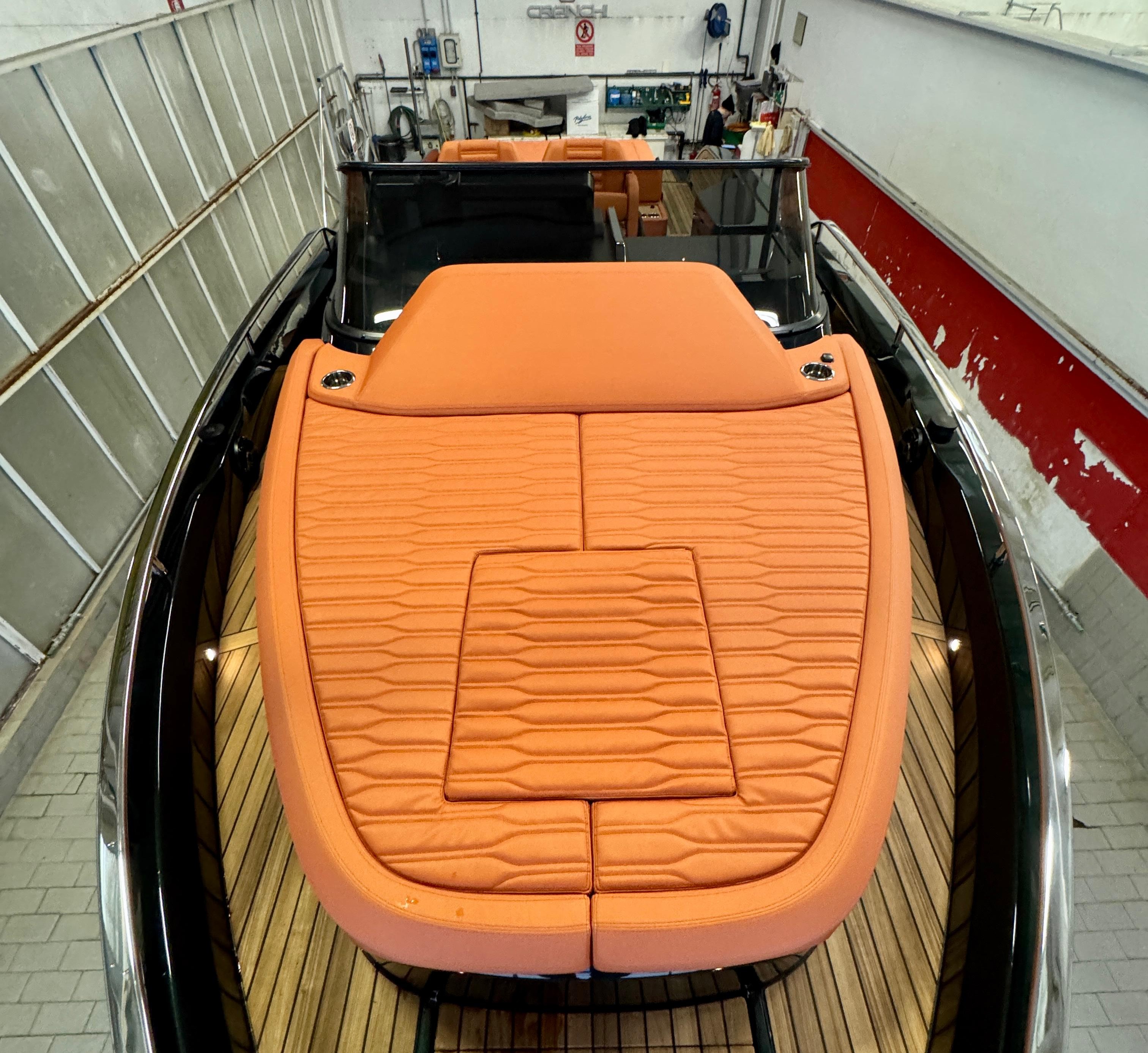 Embarcació nova disponible pròximament. Model A 32 LT de la drassana italiana Cranchi de 10,21 metres d'eslora total. De diseny modern amb proa recta, distribució espaiosa, cabinada i amb solàrium a proa i a popa.