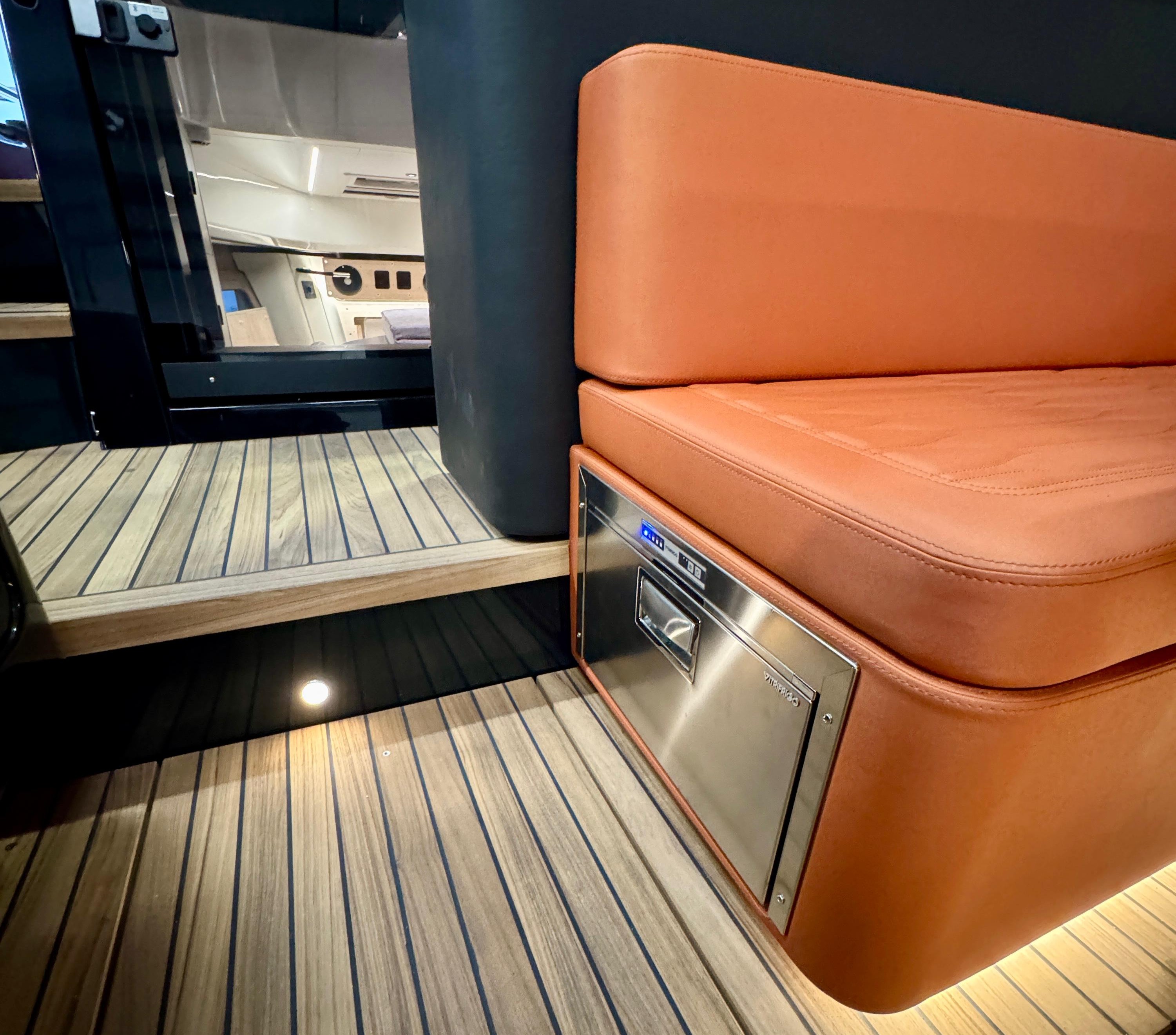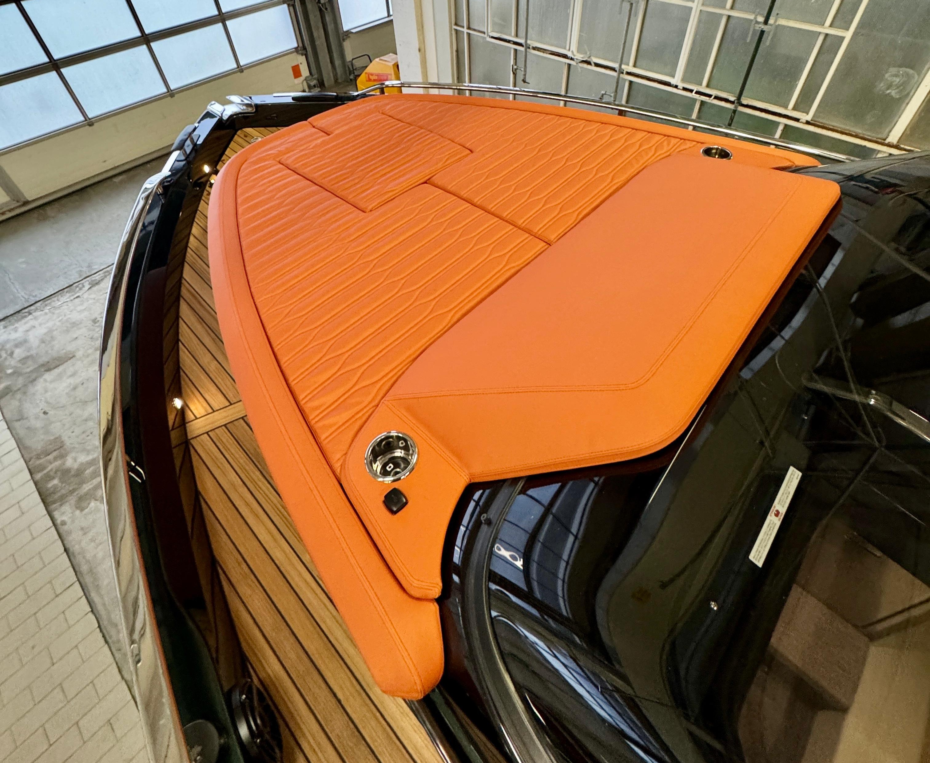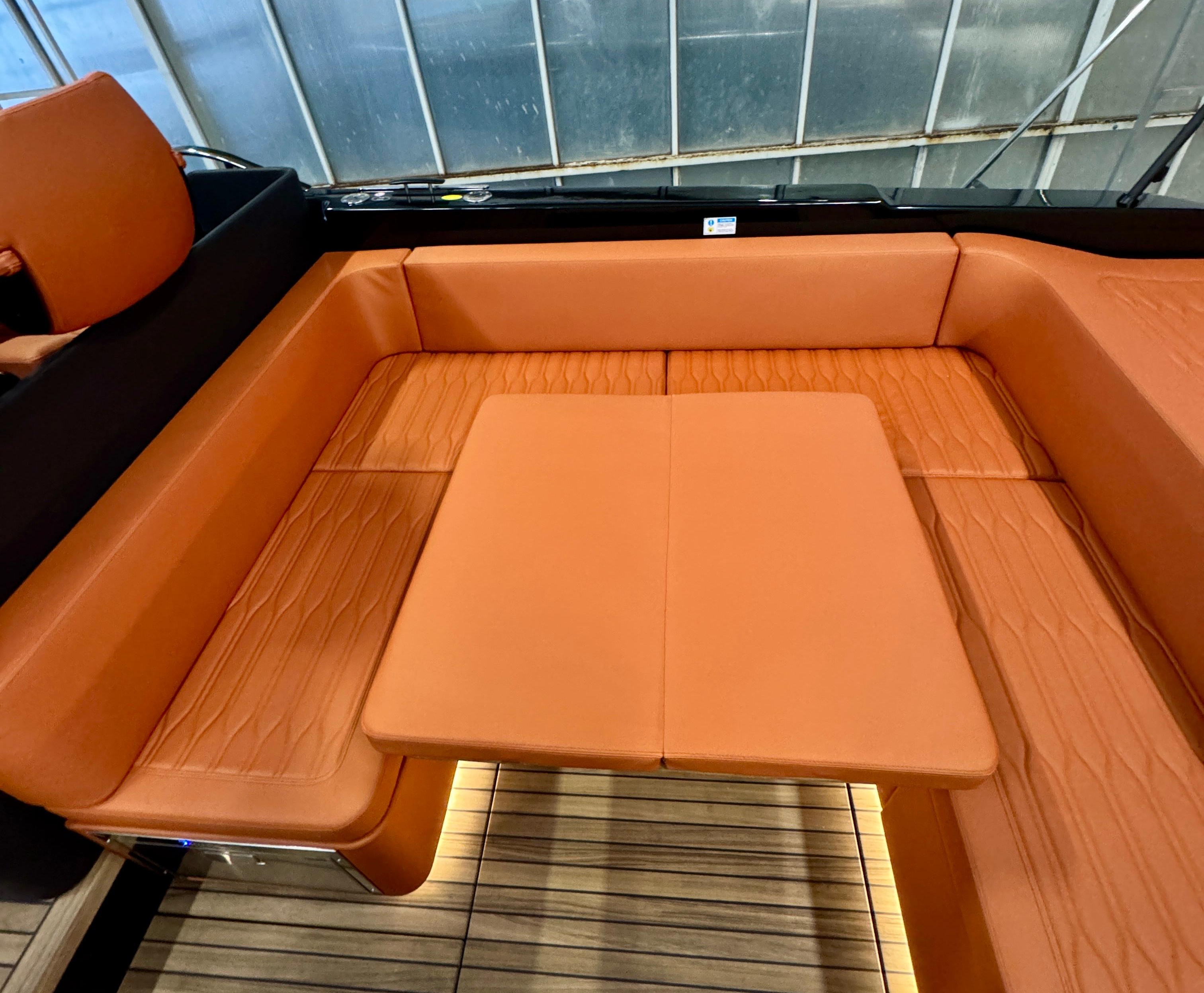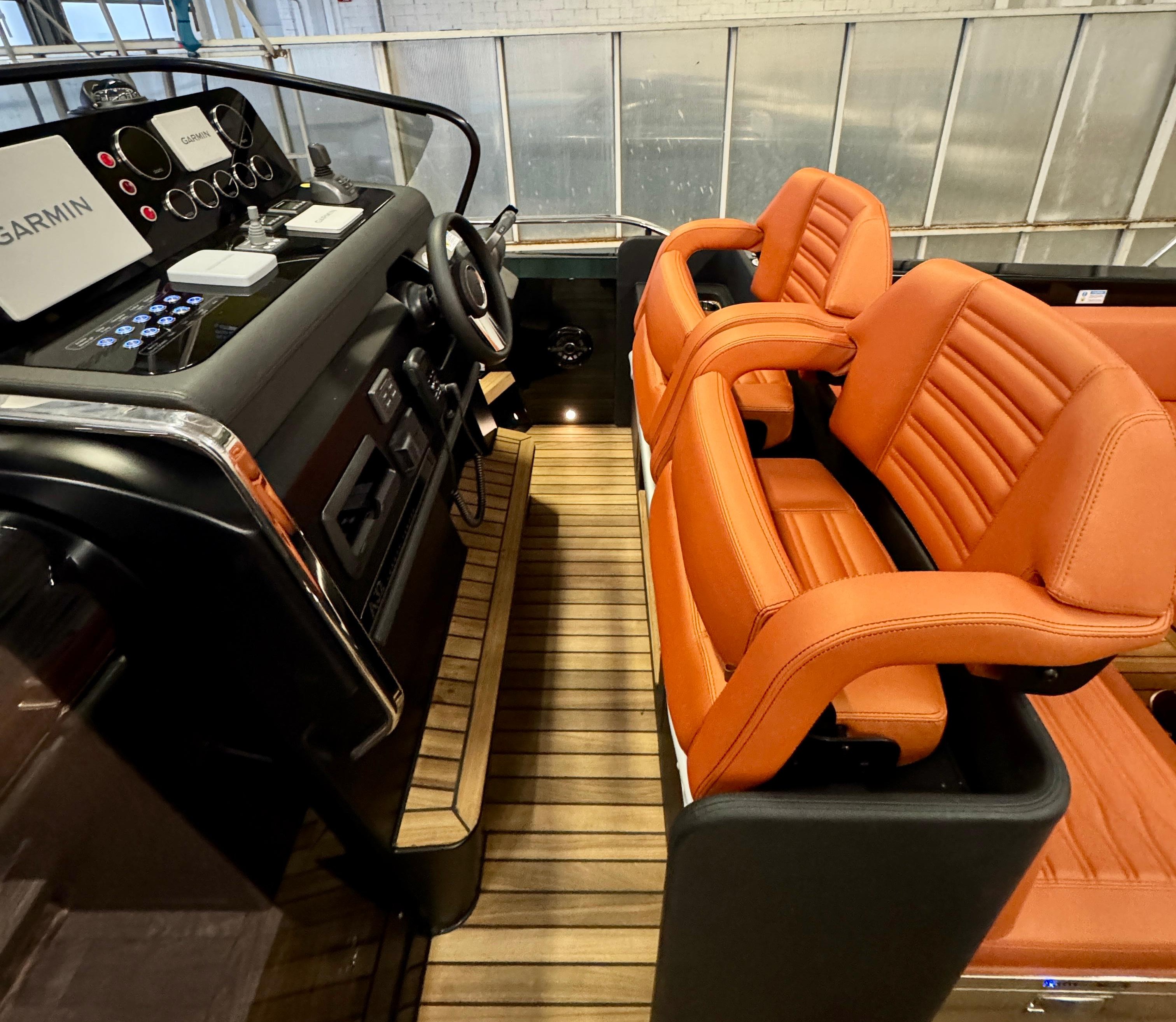 Joystick + Cruise control + Single lever control + Trip computer + Power trim assistance + Joystick docking - Dipòsit d'aigües negres - Antifouling color negre - Antifouling especial PropSpeed per hèlix - Aire condicionat 10.000 BTU 220 V - Capota completa amb capota sol (sense T-Top) - Cobertures per quadre de comandaments i seients pilot i copilot - Matalàs de proa amb cobertura - Hèlix de proa - Nevera a la cabina 90 l - Nevera a la banyera 35 l - GPS/Chartplotter de color 10" - Generador 3 kW - 3 Llums subaquàtiques - 6 Defenses i fundes - Pilot automàtic Garmin - Plataforma de popa: extensió electrohidràulica - Púlpit a proa - Suplement ràdio: JL per sistema d'audio exterior amb 2 altaveus a proa, 4 altaveus a la banyera, amplificador, subwoofer i 2 altaveus a la cabina - Superfície de teka trancanils laterals - Plataforma de popa en teka - Teka a l'entrada de la banyera i al lateral plegable - Banyera en teka a la zona de conducció - Comandament a distància molinet amb compte-metres cadena - Lona de fondeig - Molinet elèctric 800 W, cadena de 50 m i àncora de 16 kg Ultramarine en acer inoxidable - VHF - Còpia certificat CE i declaració de conformitat - Capota (color alternatiu a l'estàndard) - Cobertures defenses (color alternatiu a l'estàndard) - Interiors en fusta Dark Grey 11.11 - Sòl interior en dogues de roure - Tapisseria exterior Silvertex (color alternatiu a l'estàndard) - Casc i coberta lacats - Preparació, botadura, lliurament i prova de mar - Tranport drassana a Costa Brava.