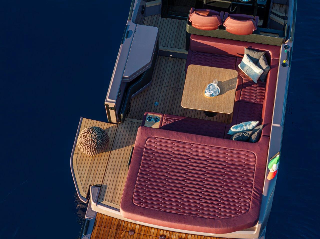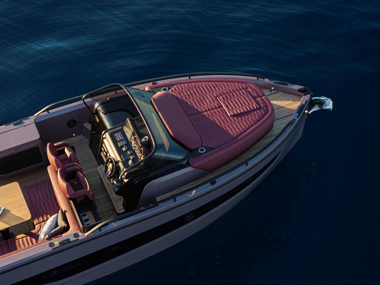 Joystick + Cruise control + Single lever control + Trip computer + Power trim assistance + Joystick docking - Dipòsit d'aigües negres - Antifouling color negre - Cobertures per quadre de comandaments i seients pilot i copilot - Matalàs de proa amb cobertura - Hèlix de proa - Nevera a la cabina 90 l - Nevera a la banyera 35 l - 3 Llums subaquàtiques - 6 Defenses i fundes - Superfície de teka trancanils laterals - Plataforma de popa en teka - Teka a l'entrada de la banyera i al lateral plegable - Banyera en teka a la zona de conducció - Lona de fondeig - Molinet elèctric 800 W, cadena de 50 m i àncora de 16 kg Ultramarine en acer inoxidable - Còpia certificat CE i declaració de conformitat - Cobertures defenses (color alternatiu a l'estàndard) - Interiors en fusta Dark Grey 11.11 - Sòl interior en dogues de roure - Tapisseria exterior Silvertex (color alternatiu a l'estàndard) - Capa protectora brillant per taula de teka banyera - Preparació, botadura, lliurament i prova de mar - Tranport drassana a Costa Brava.