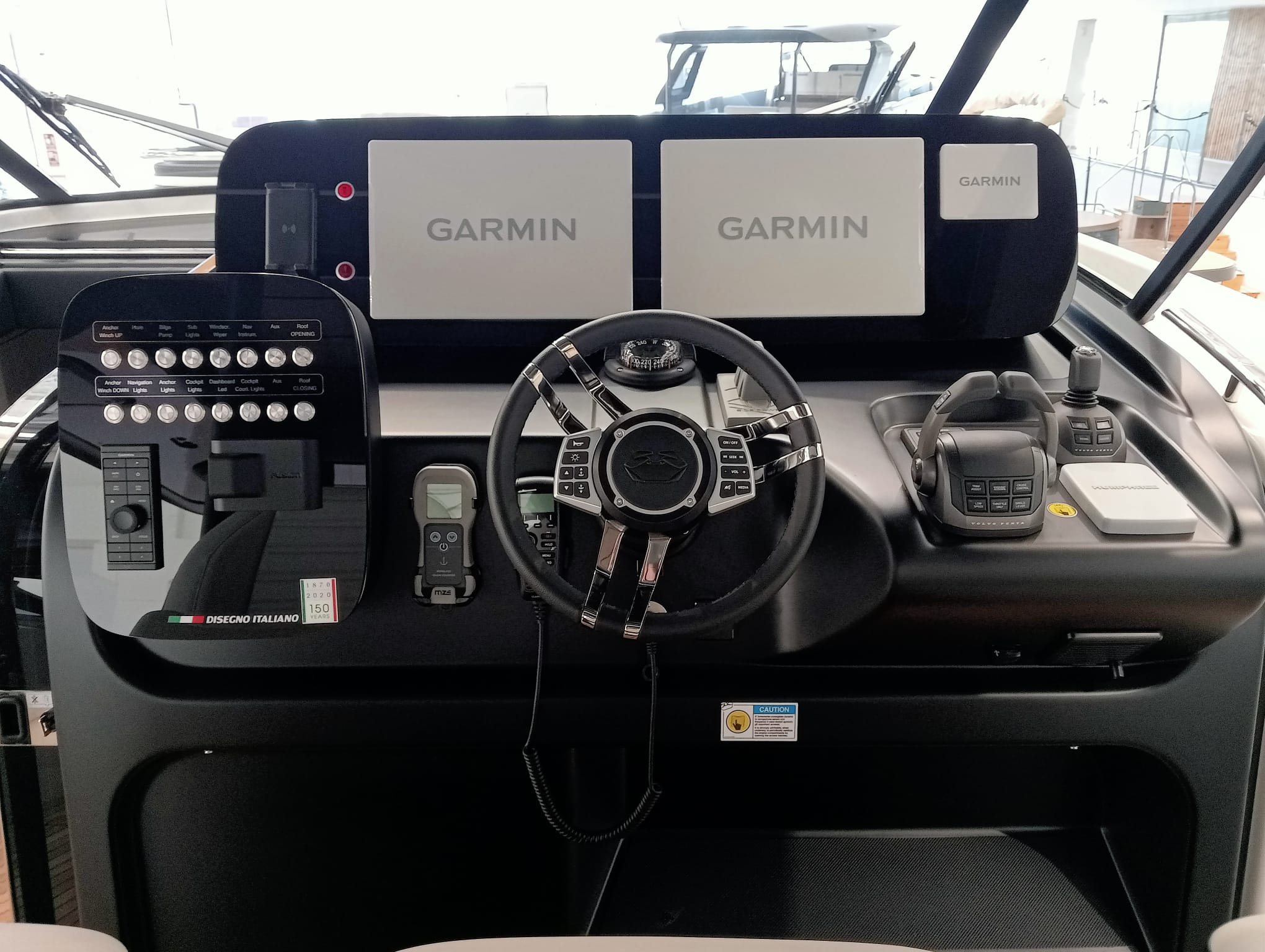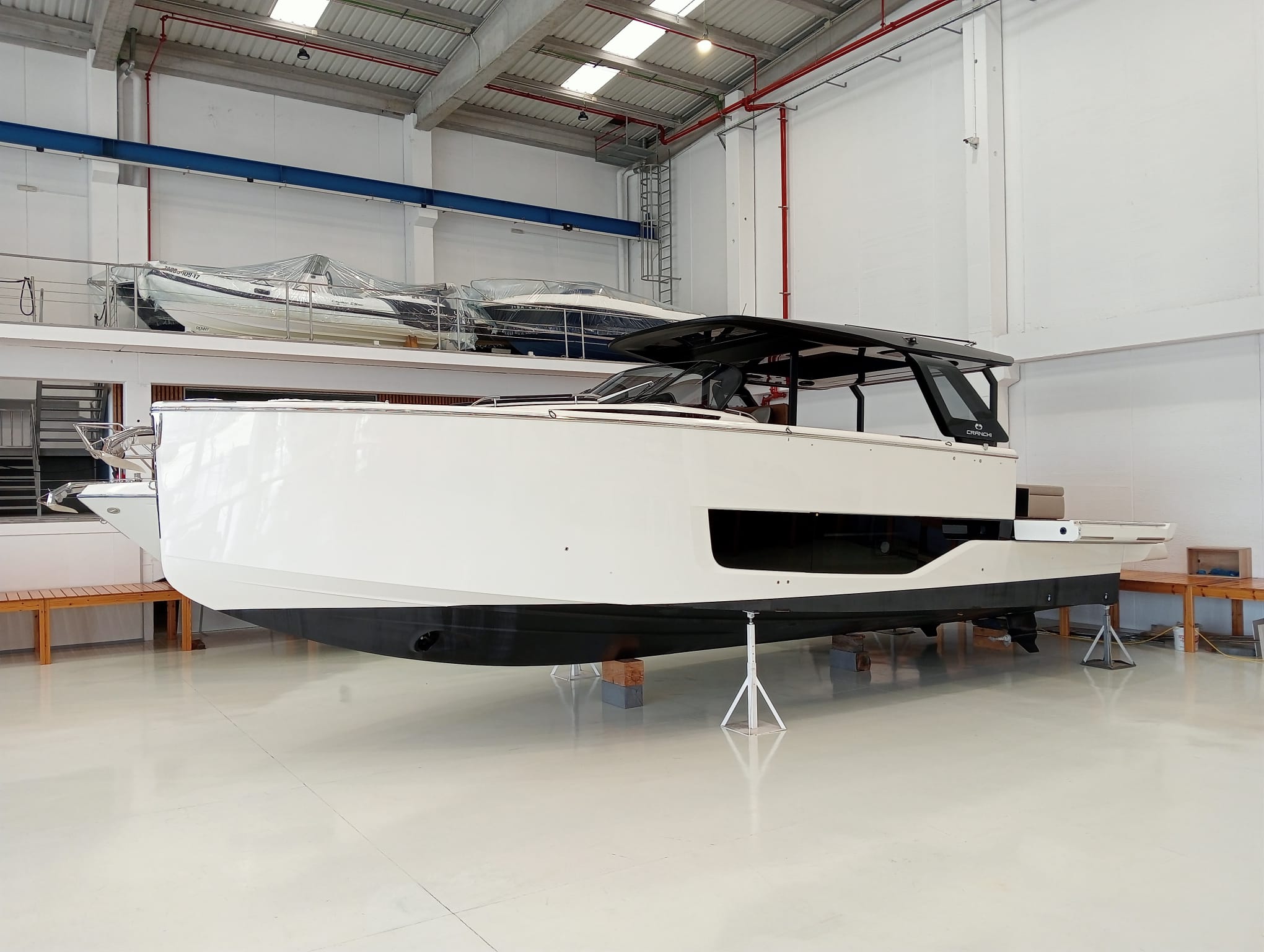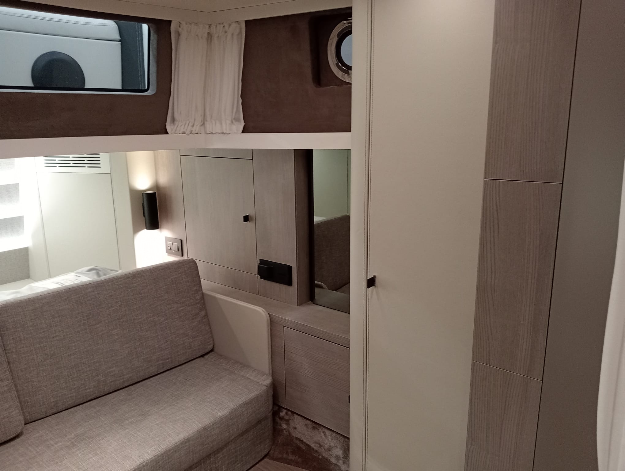 Embarcació en stock. Lliurament immediat. Model A 46 Luxury Tender de la prestigiosa drassana italiana Cranchi de 14,25 metres d'eslora total. Barca amb hard top i gran solàrium de popa. Interiors de disseny modern i gran habitabilitat.