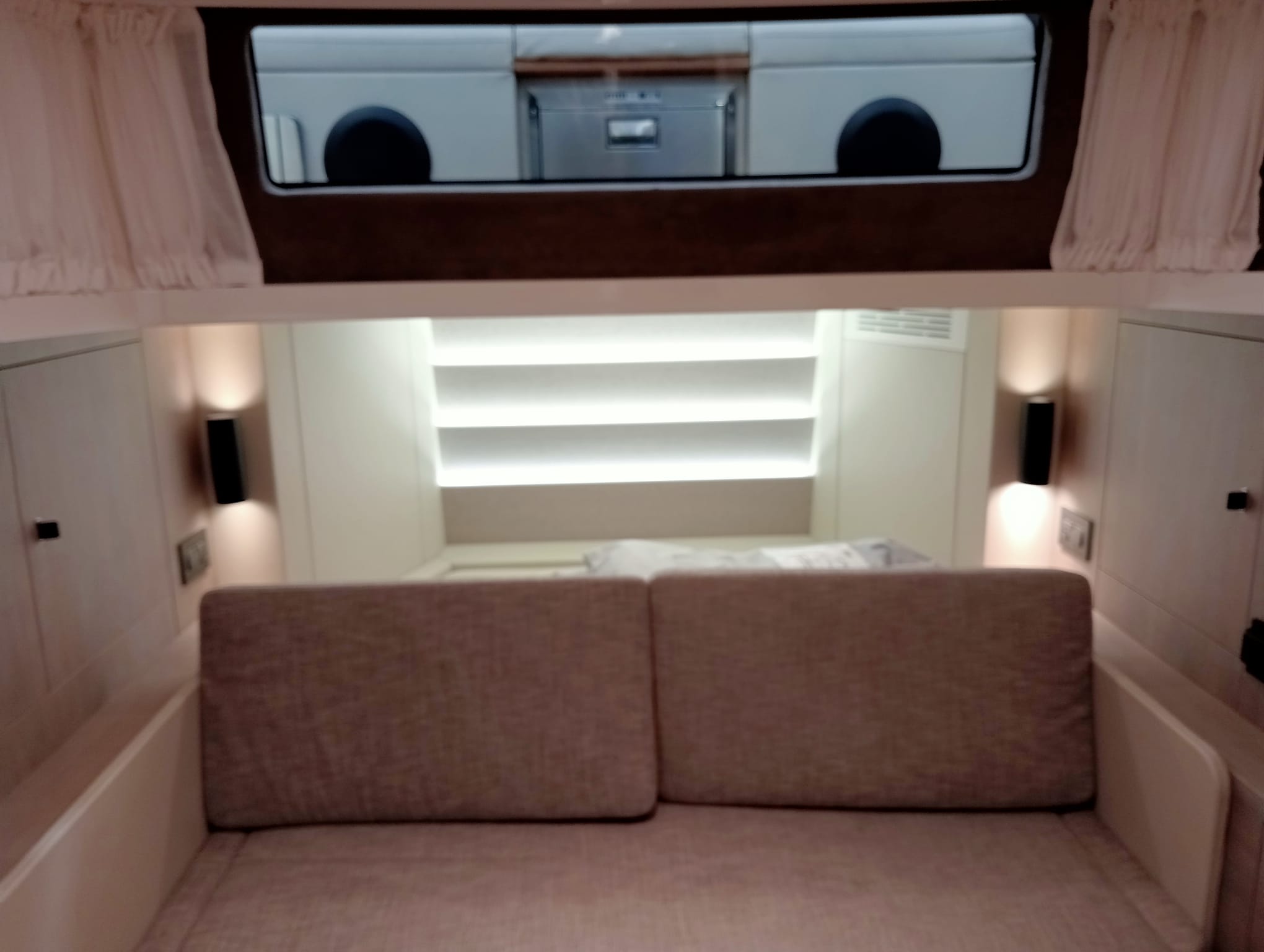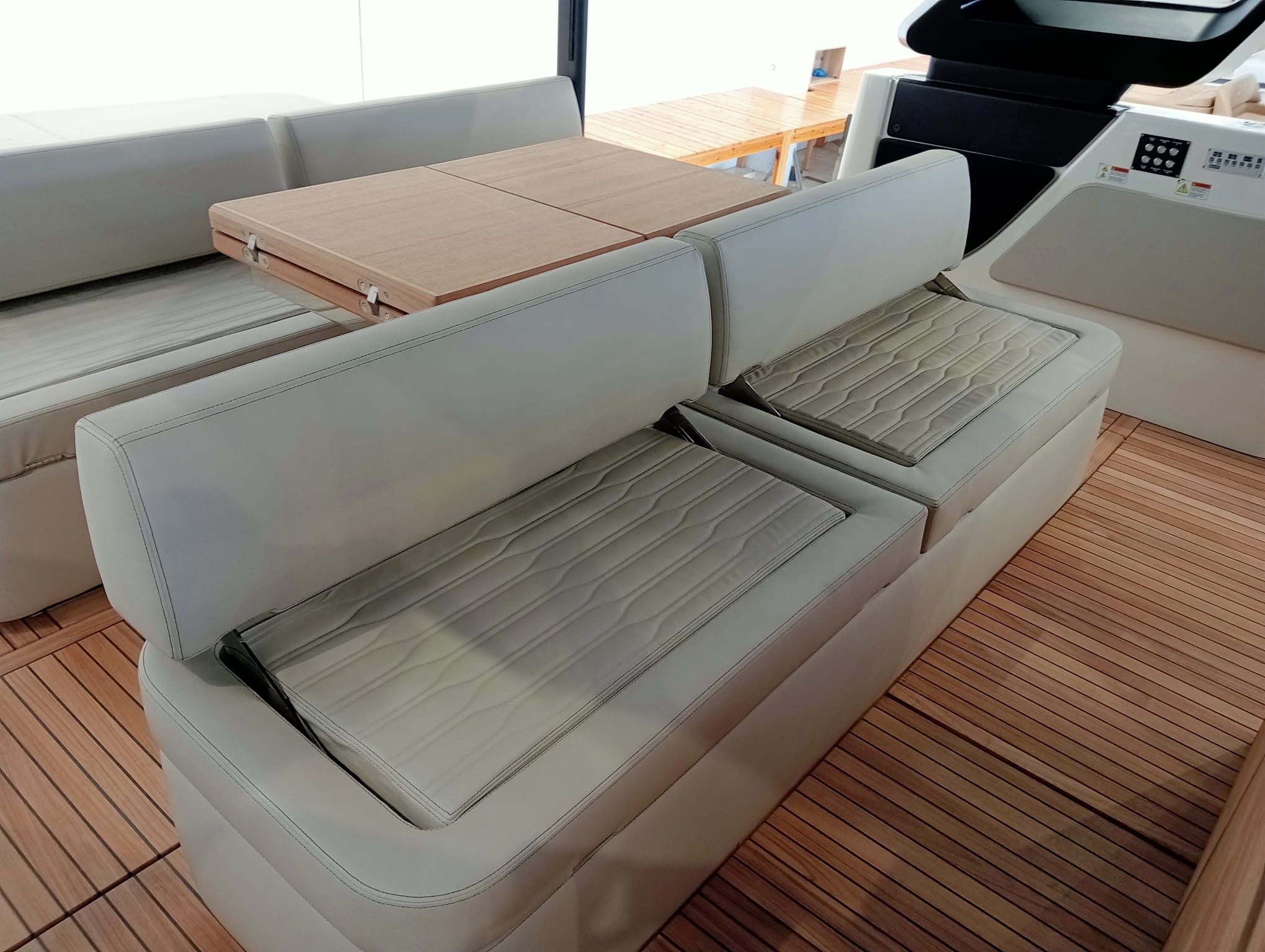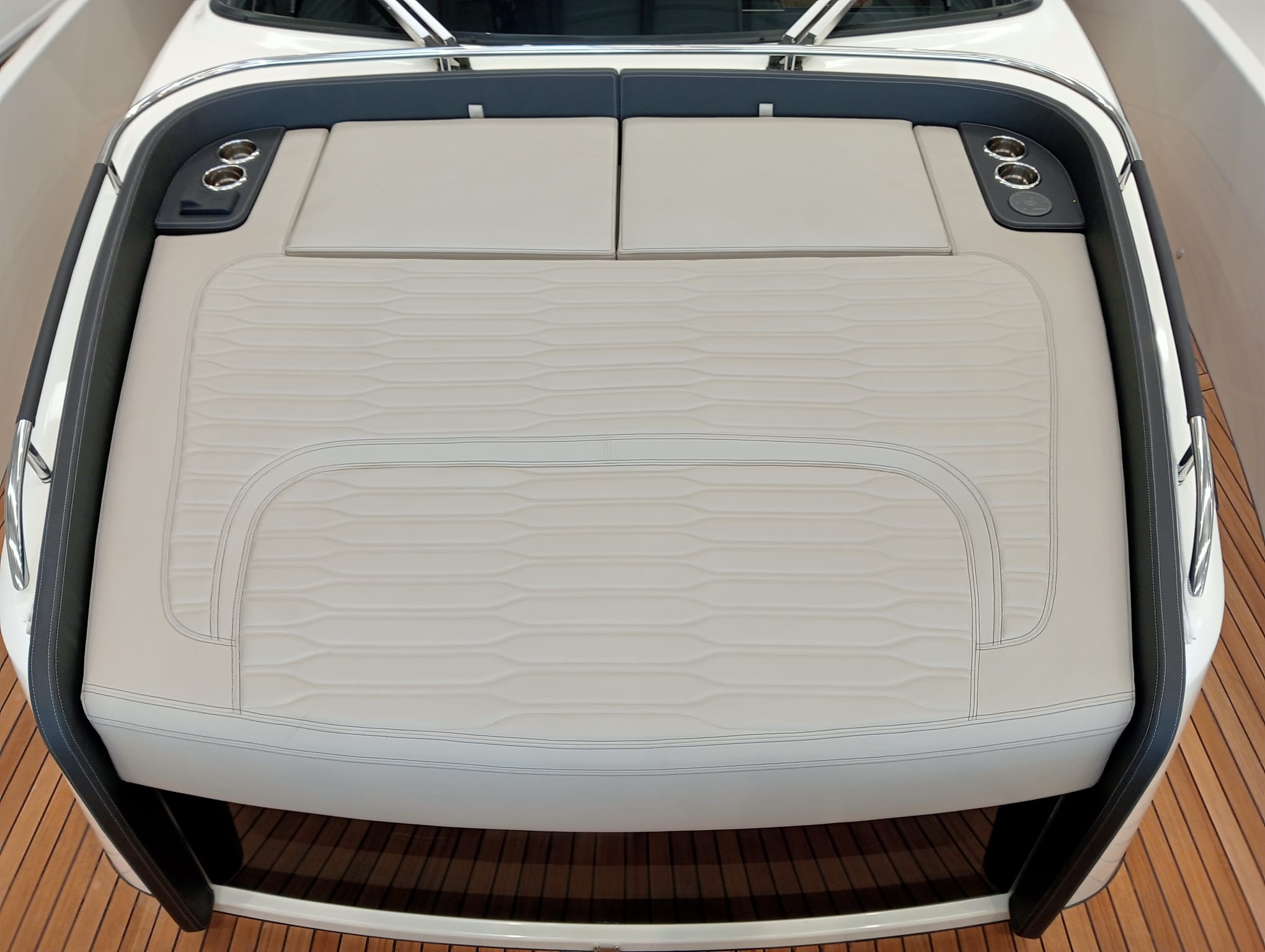 Sistema de micro-aspiració a la sentina - Dipòsit d'aigües negres - Aire condicionat 16.000 BTU a la cabina amb bomba de calor - Fundes (per quadre de comandaments, seient pilot, sofà, taula, mobles i solàrium de popa) - Correctors Automatic List + correctors de viratge Coordinated Turn Control - Sistema domòtic per control : obrir/tancar  sostre, llums, garatge de popa, extintors, nivell d'aigua, alarma d'aigua a la sentina - Hèlix de proa - Nevera a la banyera - Generador 8 kW - Barbacoa elèctrica a la banyera - Màquina de gel - Parets laterals plegables de popa dreta i esquerra - Pantalla de privacitat microperforada negra amb logo blanc A 46 LT - Passarel·la hidràulica - Part central de la plataforma pujada/baixada - Pilot automàtic - Plataforma hidràulica pujada/baixada - 2 Pantalles de plotter 16" - Banyera i parets laterals plegables en teka - Superfície de teka en els trancanils laterals - Cortina elèctrica - T-Top - VHF - Certificat CE - T-Top lacat - Modificació especial cabina de popa: extensió de la part central d'unió dels dos llits - Preparació, botadura i lliurament con prova de mar - Transport drassana a Costa Brava.