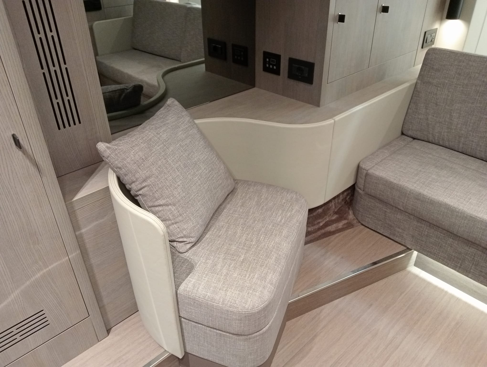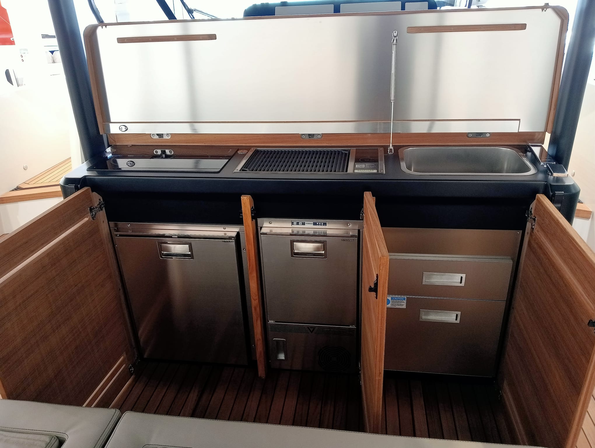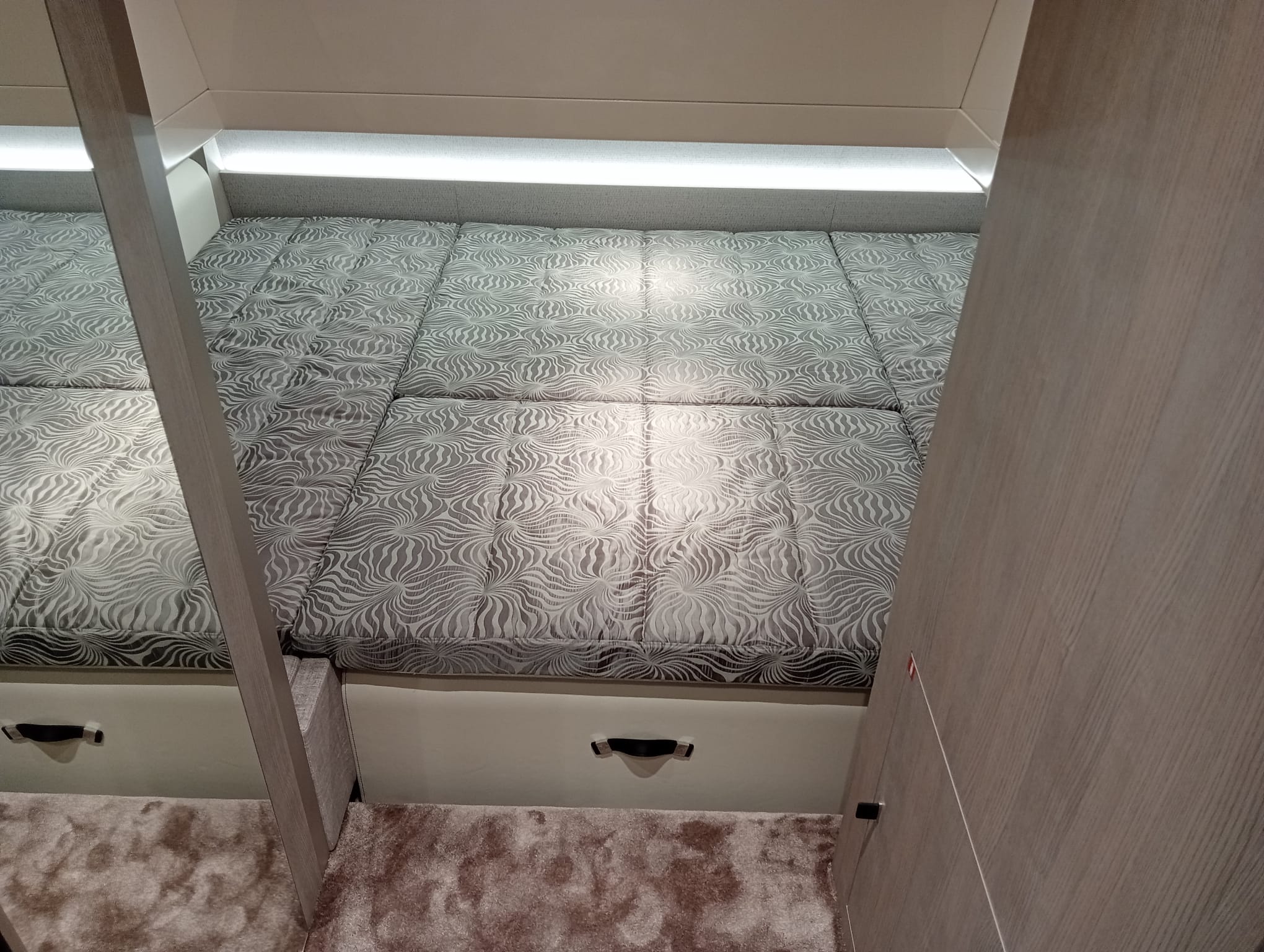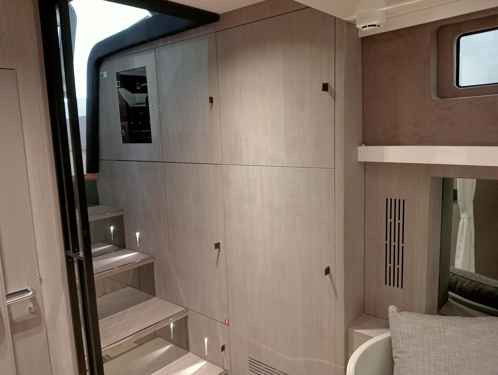 Sistema de micro-aspiració a la sentina - Dipòsit d'aigües negres - Aire condicionat 16.000 BTU a la cabina amb bomba de calor - Fundes (per quadre de comandaments, seient pilot, sofà, taula, mobles i solàrium de popa) - Correctors Automatic List + correctors de viratge Coordinated Turn Control - Sistema domòtic per control : obrir/tancar  sostre, llums, garatge de popa, extintors, nivell d'aigua, alarma d'aigua a la sentina - Hèlix de proa - Nevera a la banyera - Generador 8 kW - Barbacoa elèctrica a la banyera - Màquina de gel - Parets laterals plegables de popa dreta i esquerra - Pantalla de privacitat microperforada negra amb logo blanc A 46 LT - Passarel·la hidràulica - Part central de la plataforma pujada/baixada - Pilot automàtic - Plataforma hidràulica pujada/baixada - 2 Pantalles de plotter 16" - Banyera i parets laterals plegables en teka - Superfície de teka en els trancanils laterals - Cortina elèctrica - T-Top - VHF - Certificat CE - T-Top lacat - Modificació especial cabina de popa: extensió de la part central d'unió dels dos llits - Preparació, botadura i lliurament con prova de mar - Transport drassana a Costa Brava.
