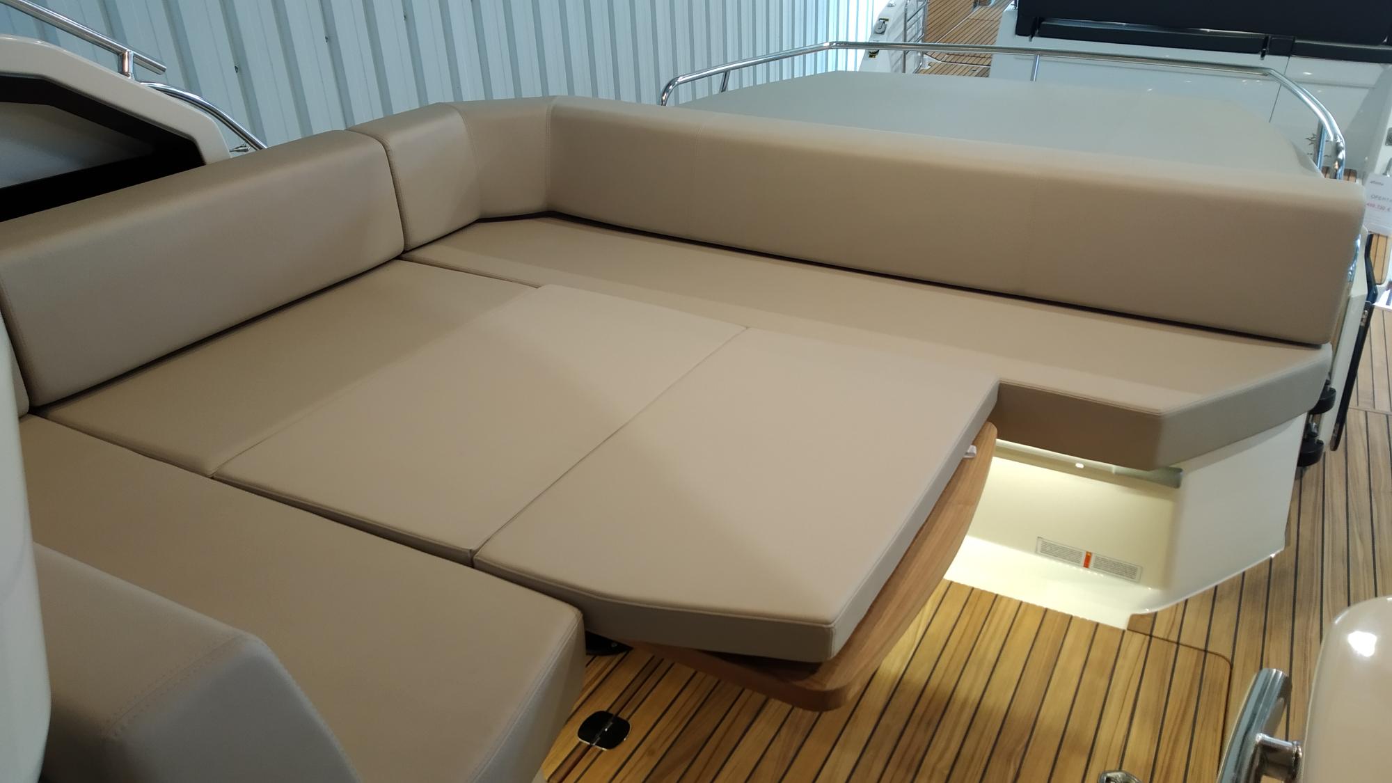 Dipòsit d'aigües negres - Aire condicionat 16.000 BTU a les cabines amb bomba de calor - Aire condicionat 16.000 BTU refrigeració banyera - Capota completa de popa - Hèlix de proa amb extintor automàtic - Frigorífic a la banyera - GPS + chartplotter - Generador 8 kW - Passarel·la hidràulica - Plataforma elevadora (reposapeus) plegable en teka per posició de conducció - Pilot automàtic - Banyera en teka - VHF / DSC - Còpia certificat CE i declaració de conformitat - Hard top de color lacat - Preparació, botadura, entrega i prova de mar - Tranport Itàlia a Costa Brava.