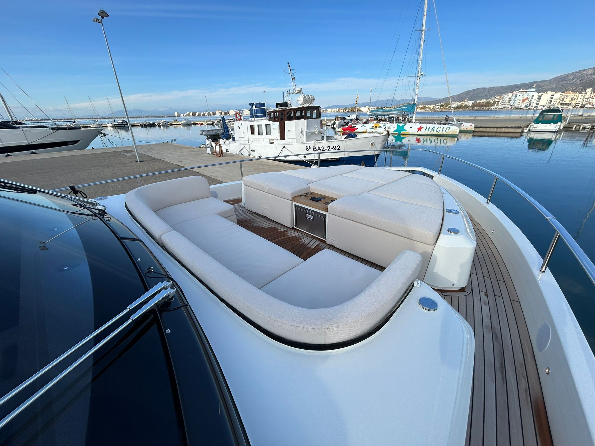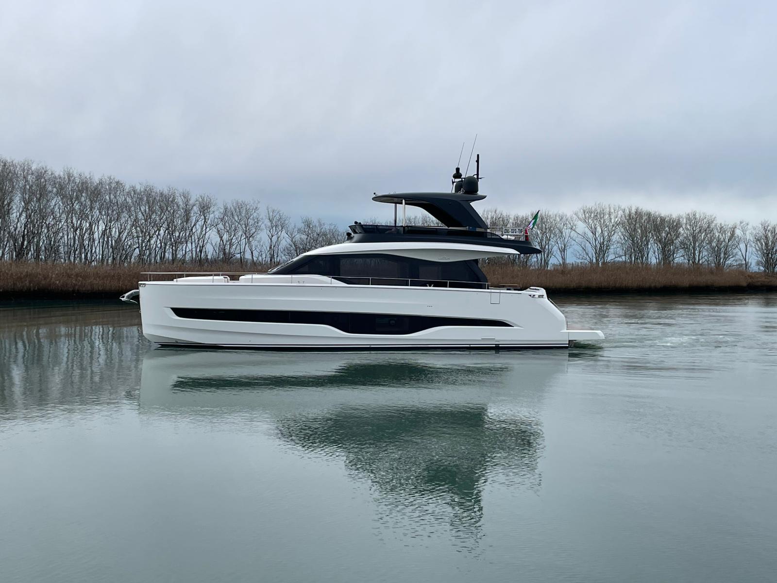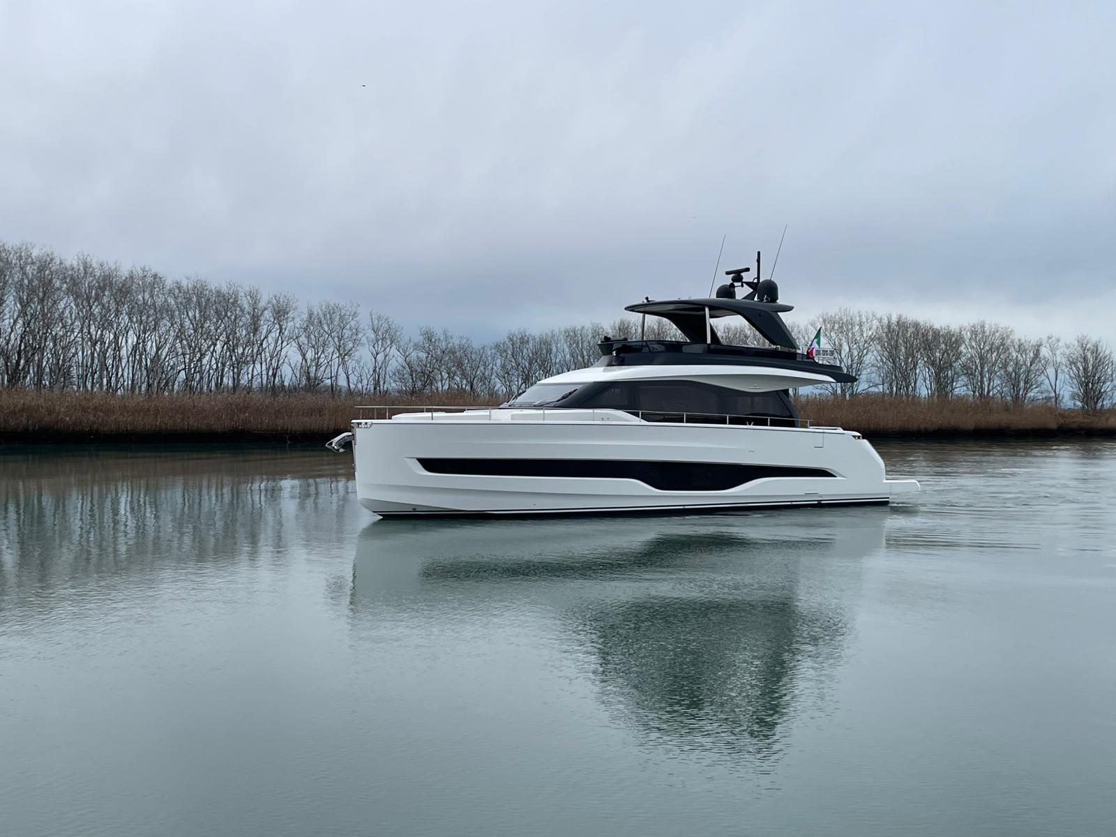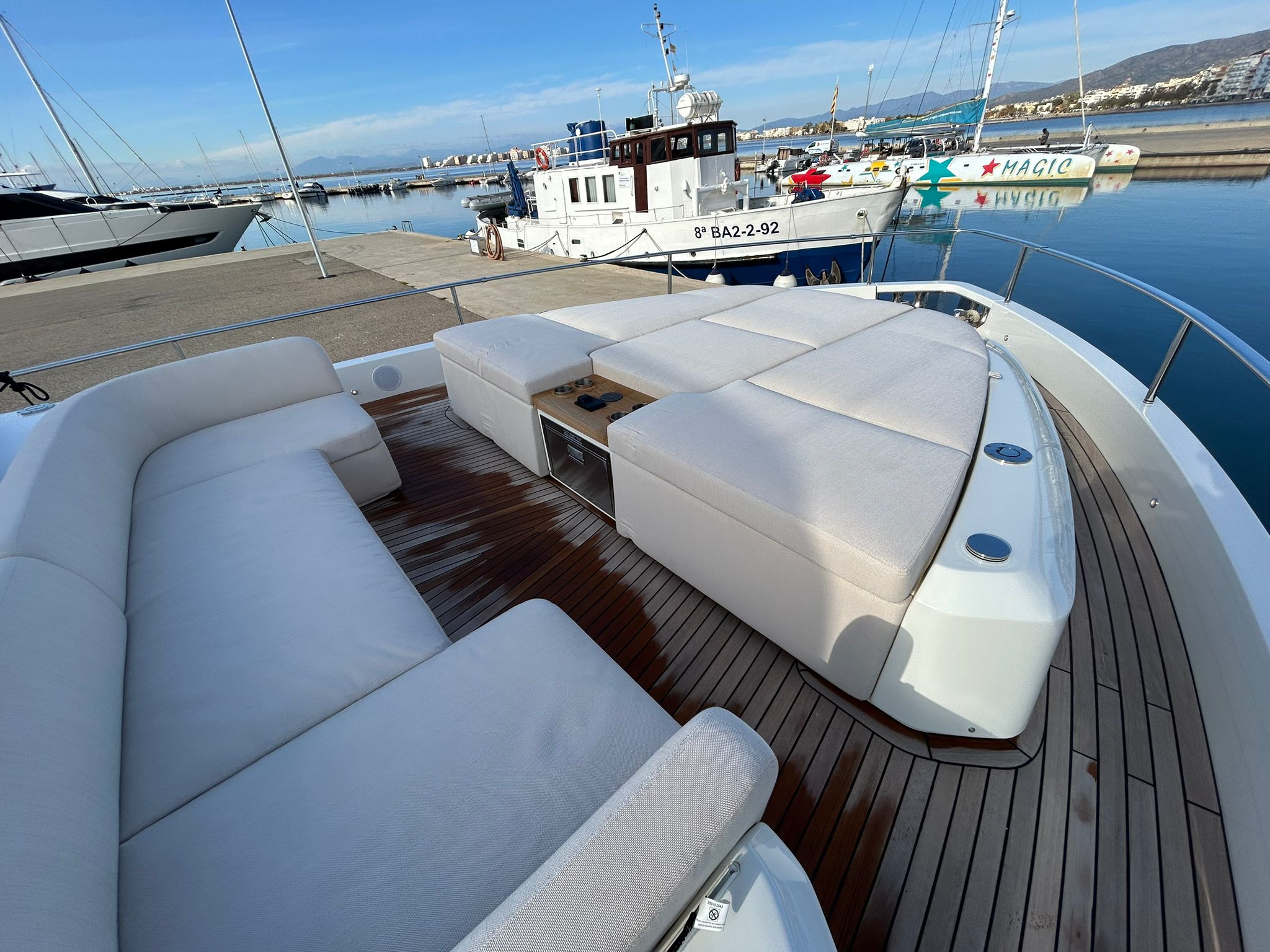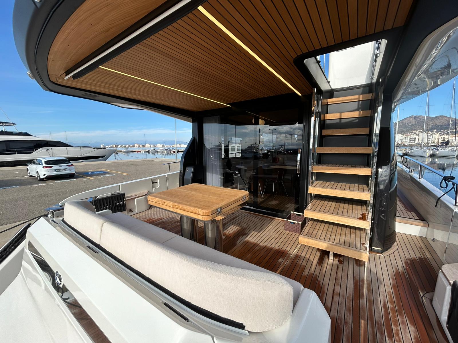 Embarcació en stock. Lliurament immediat. Model Sessantadue 62 de la prestigiosa drassana Cranchi. Eslora total de 20,23 m i casc de color blanc amb T-Top negre. Disposa d'una gran habitabilitat interior, ampli flybridge, garatge i cabina del mariner.