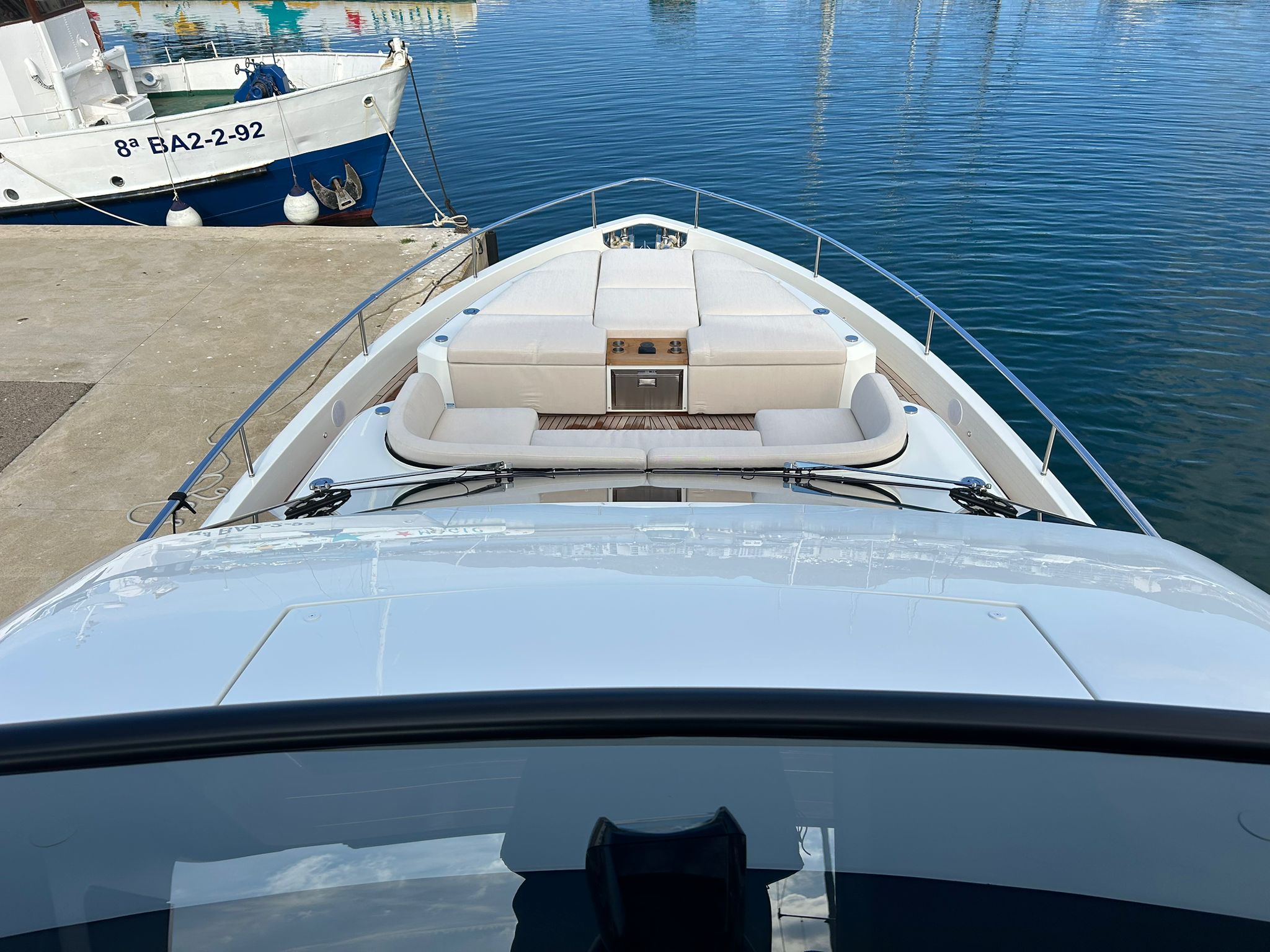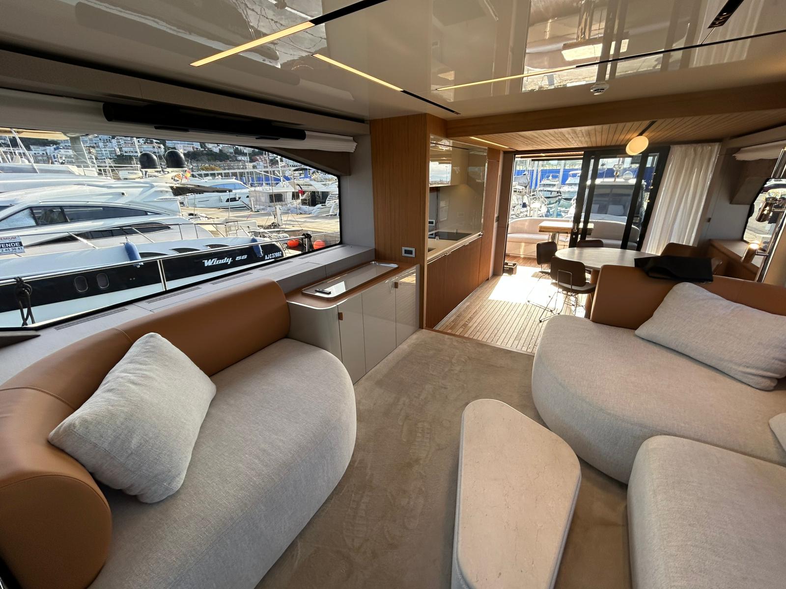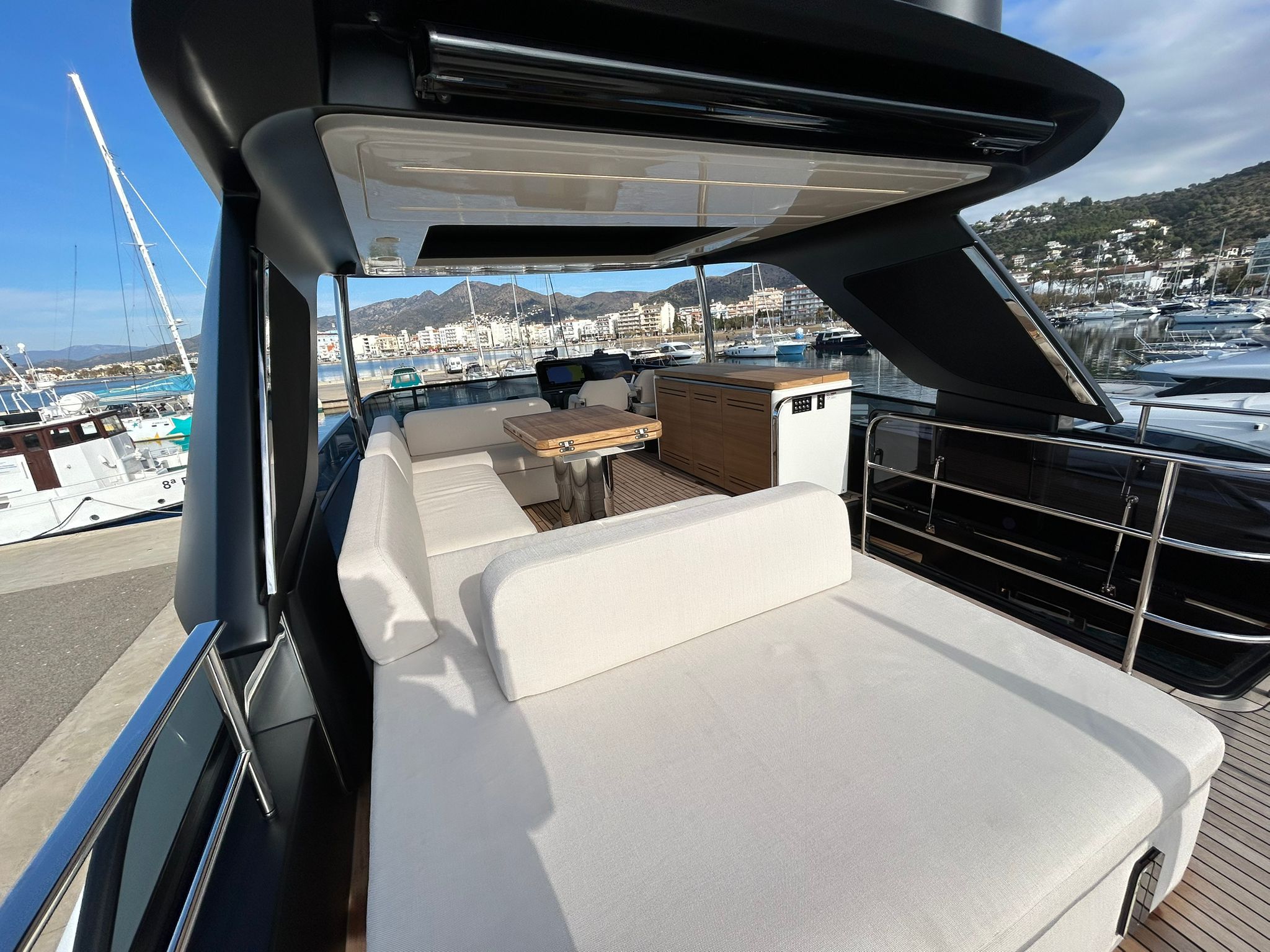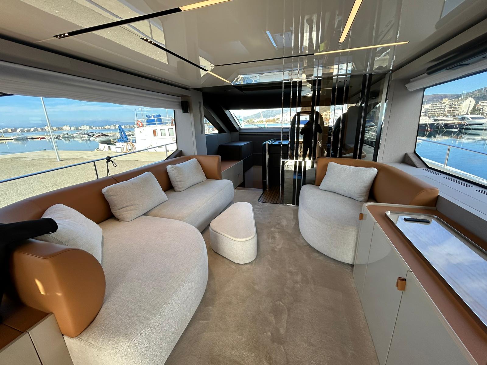 Embarcació en stock. Lliurament immediat. Model Sessantadue 62 de la prestigiosa drassana Cranchi. Eslora total de 20,23 m i casc de color blanc amb T-Top negre. Disposa d'una gran habitabilitat interior, ampli flybridge, garatge i cabina del mariner.