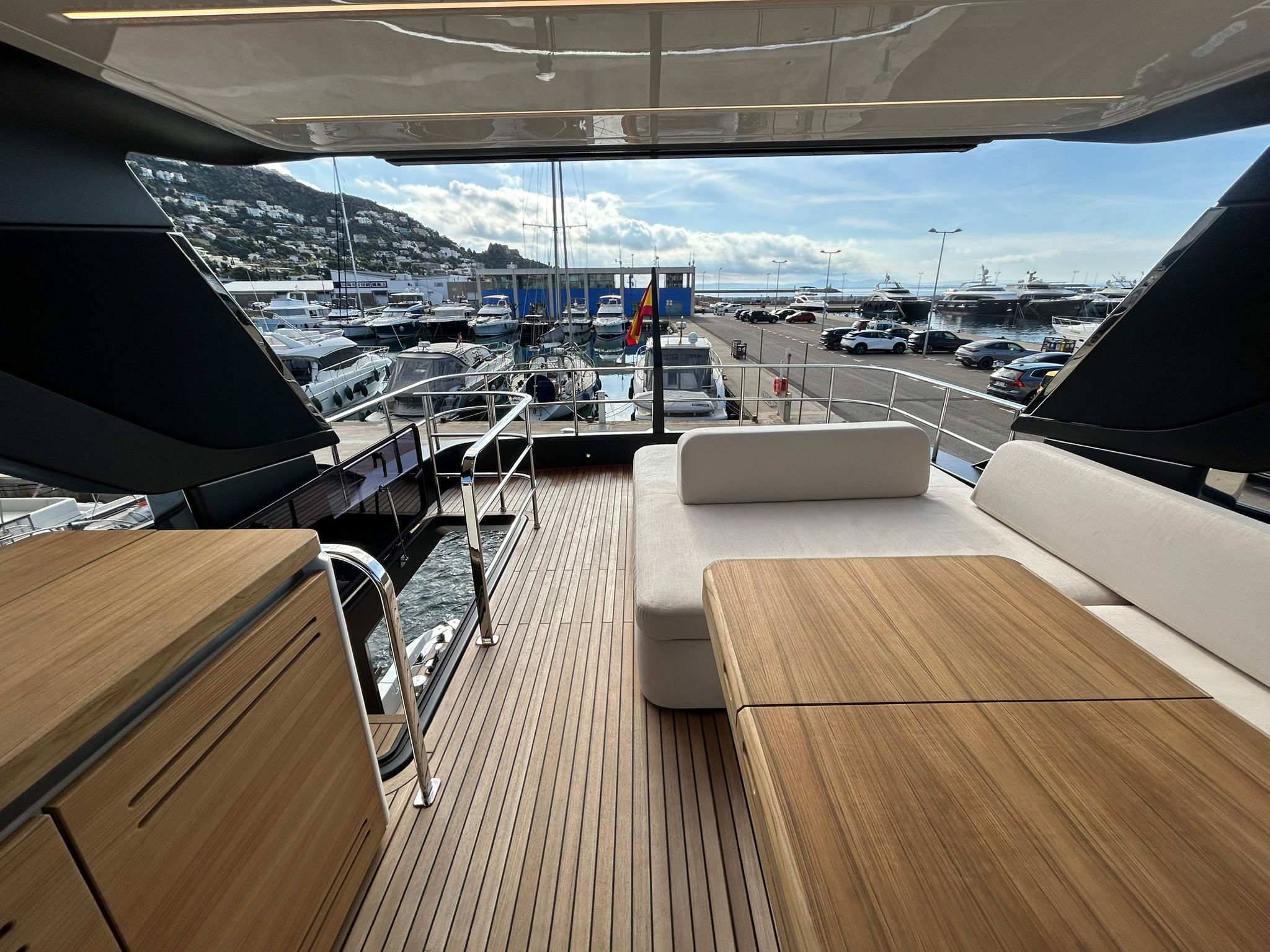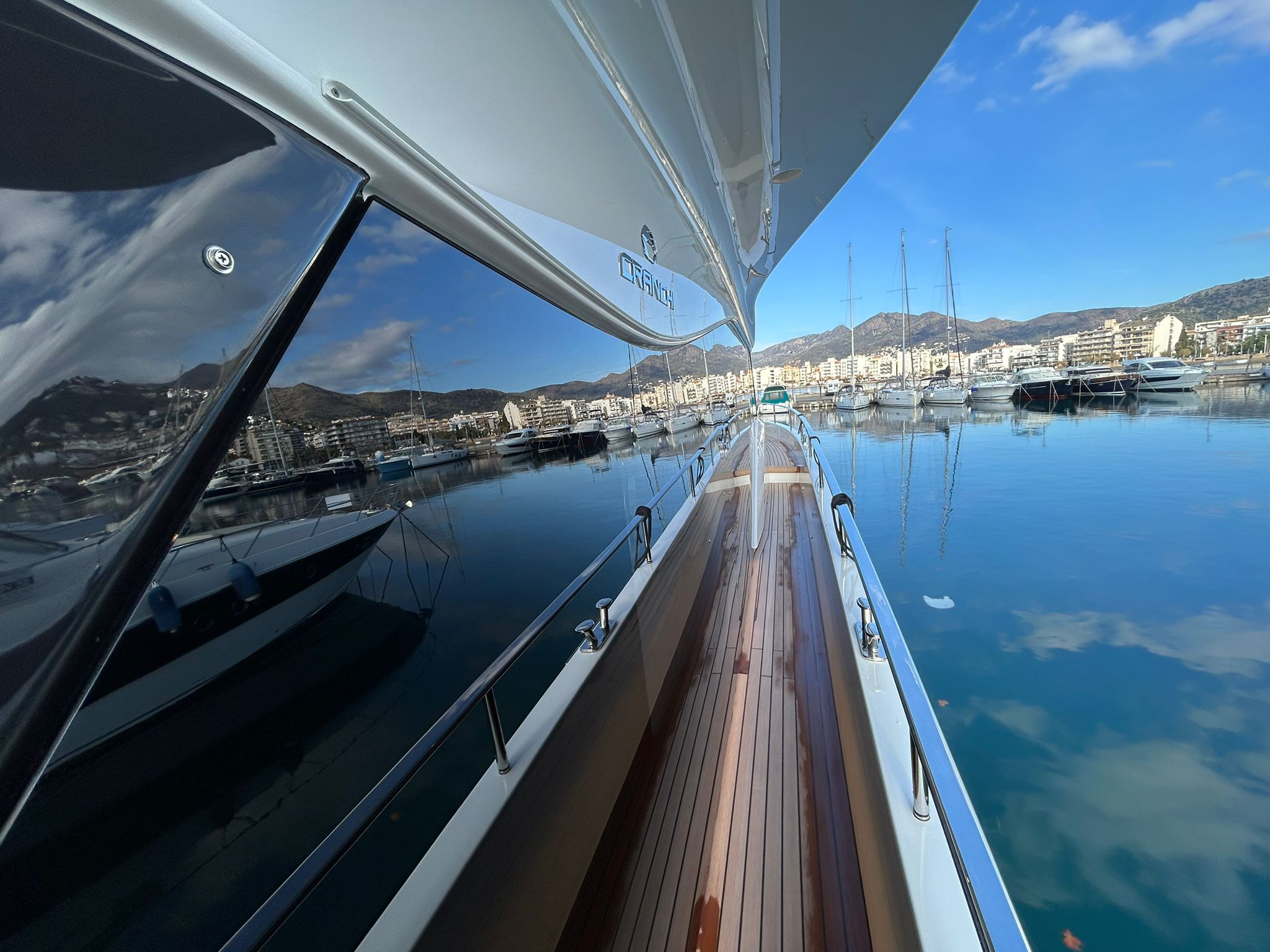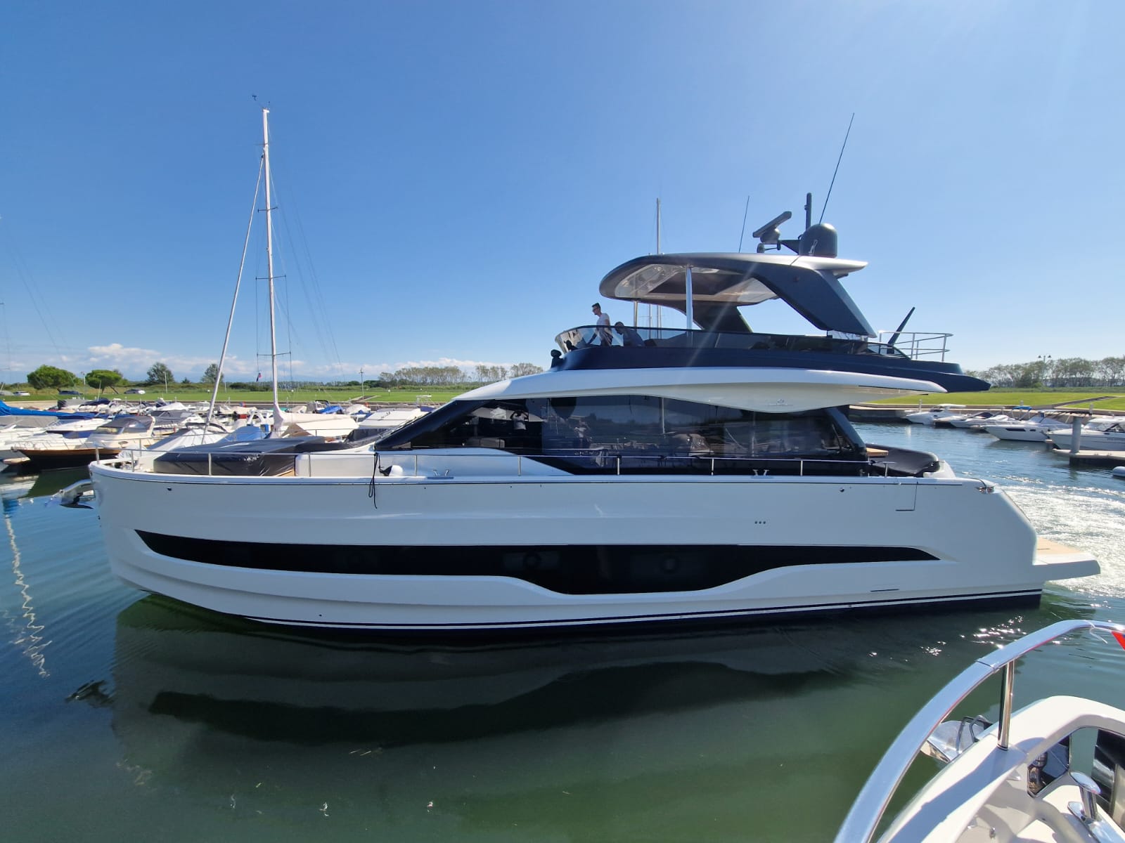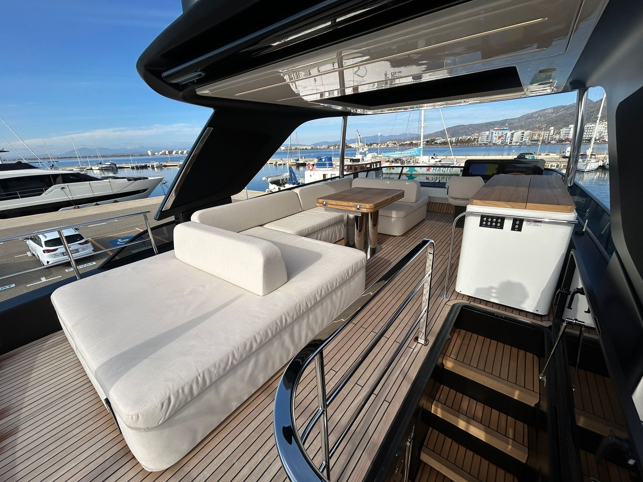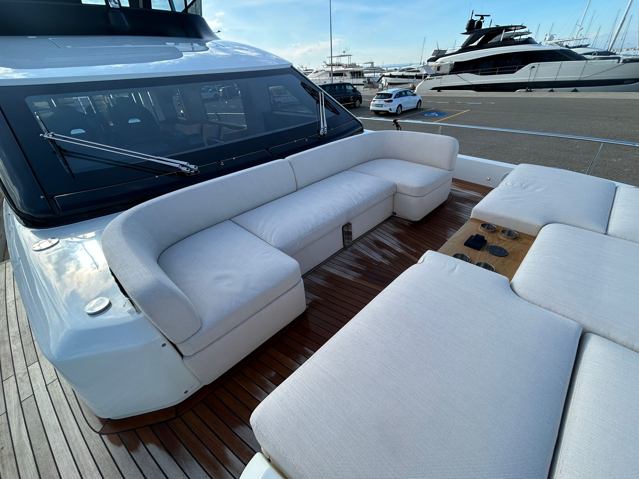 Embarcació en stock. Lliurament immediat. Model Sessantadue 62 de la prestigiosa drassana Cranchi. Eslora total de 20,23 m i casc de color blanc amb T-Top negre. Disposa d'una gran habitabilitat interior, ampli flybridge, garatge i cabina del mariner.