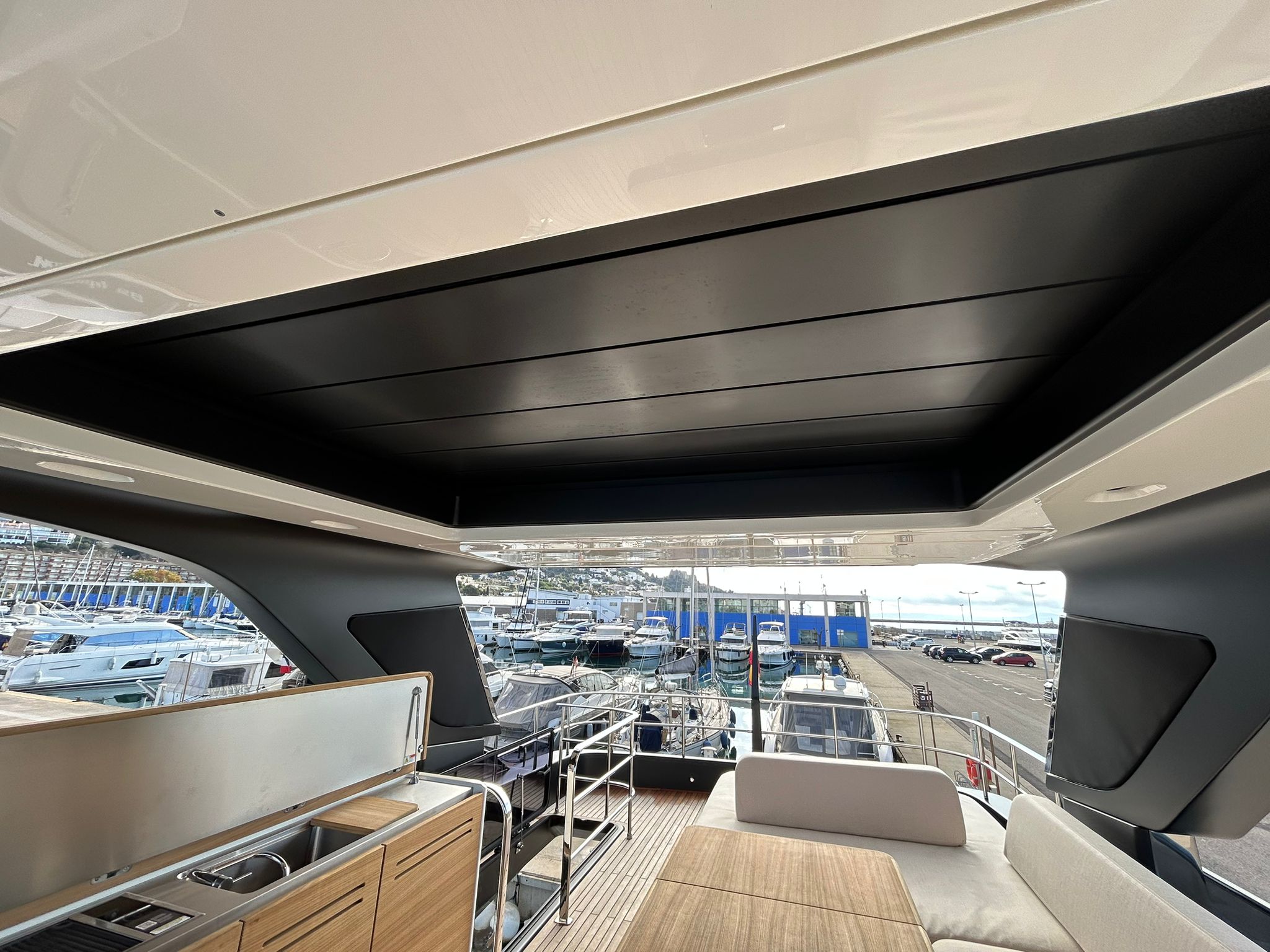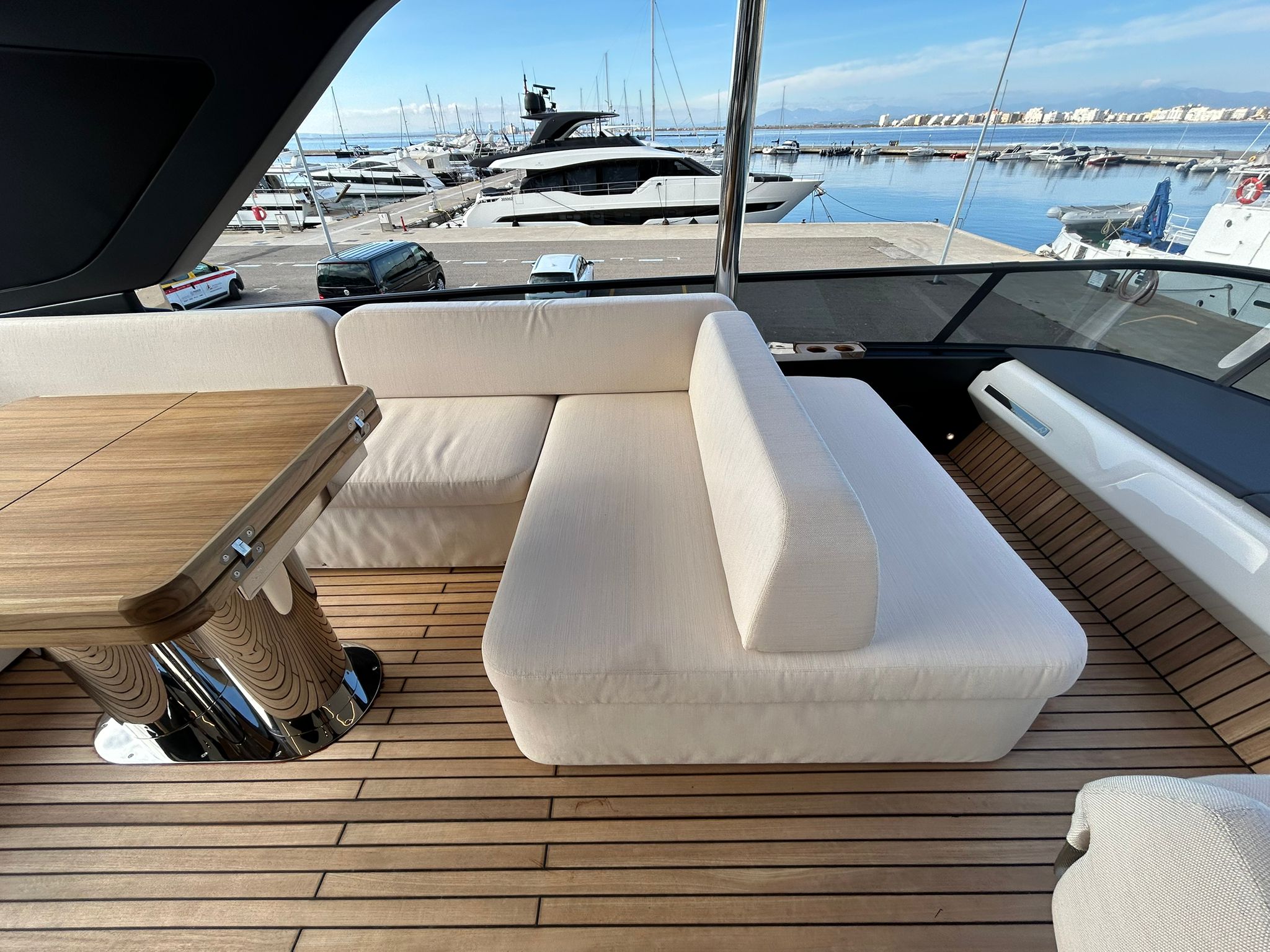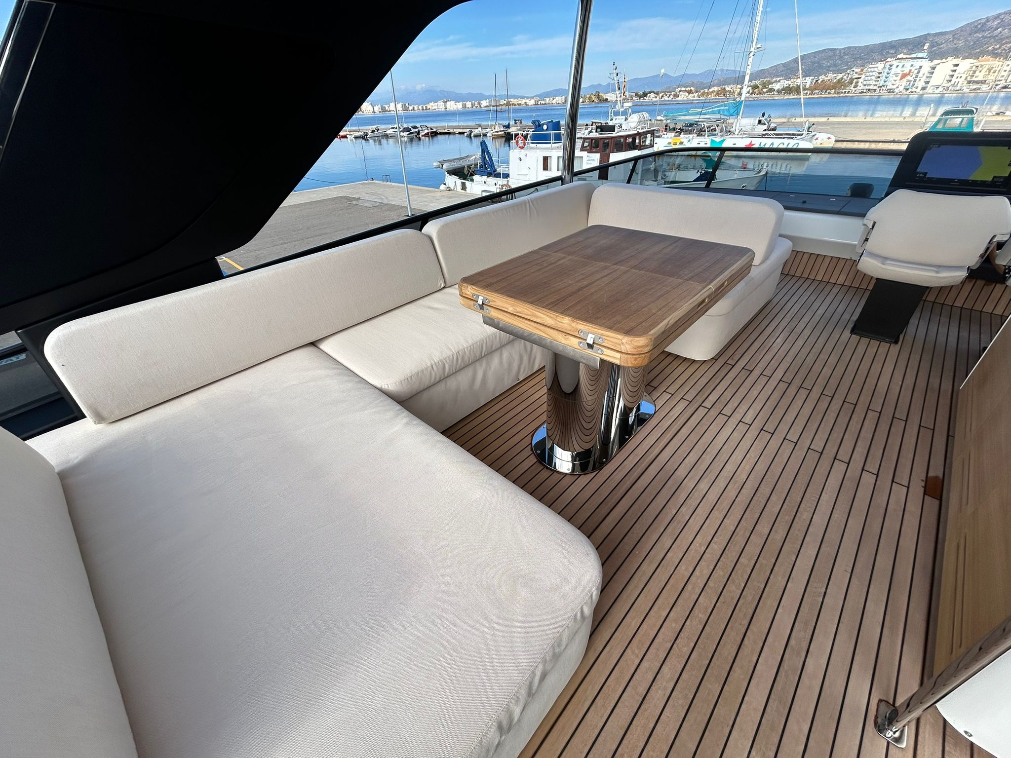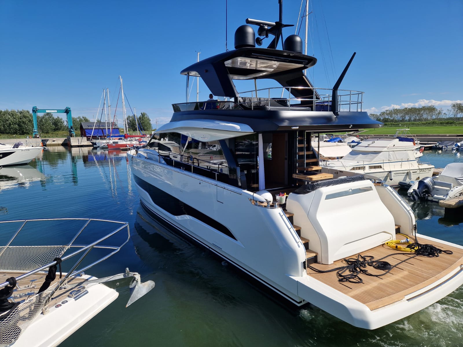 Embarcació en stock. Lliurament immediat. Model Sessantadue 62 de la prestigiosa drassana Cranchi. Eslora total de 20,23 m i casc de color blanc amb T-Top negre. Disposa d'una gran habitabilitat interior, ampli flybridge, garatge i cabina del mariner.