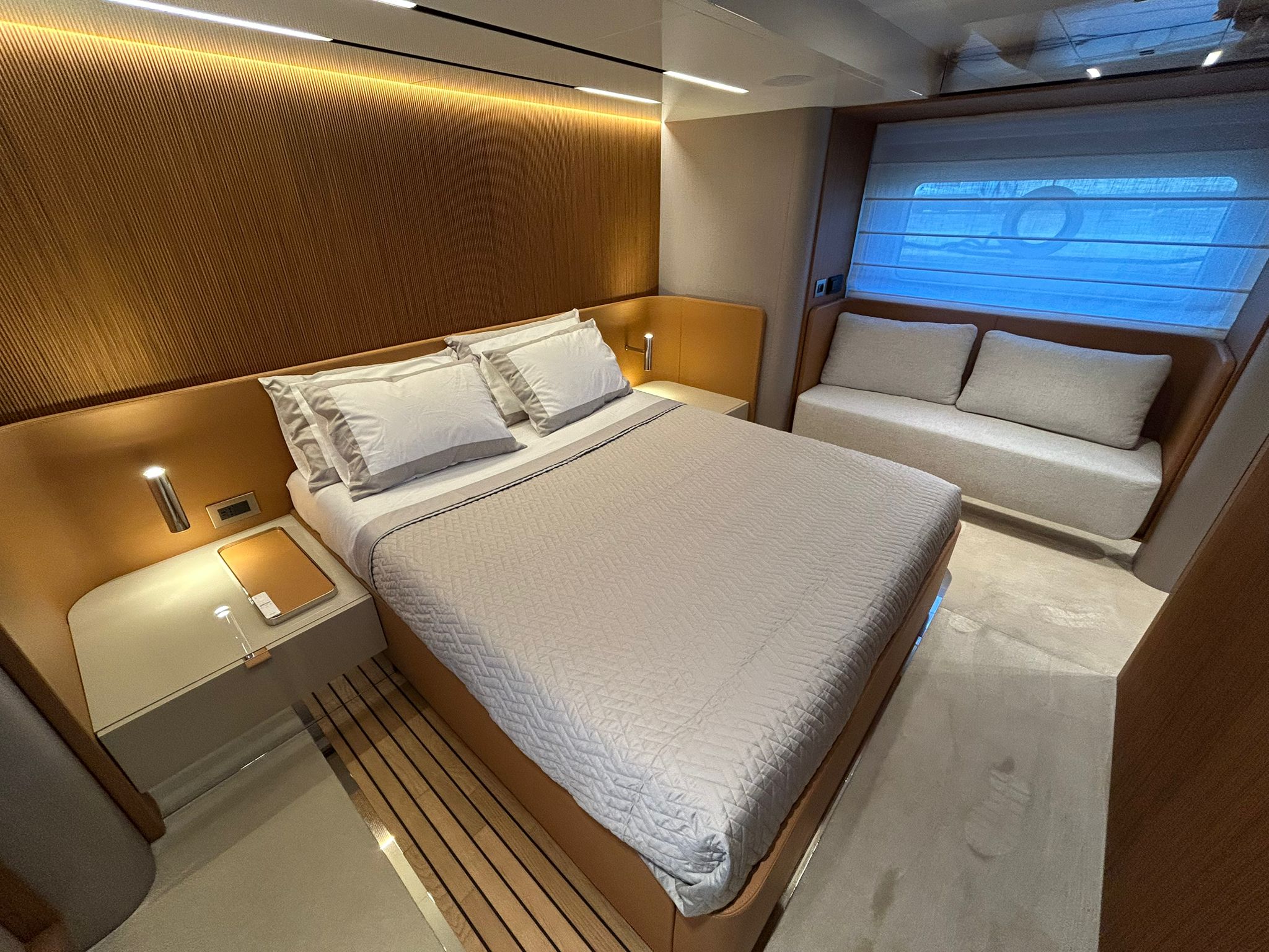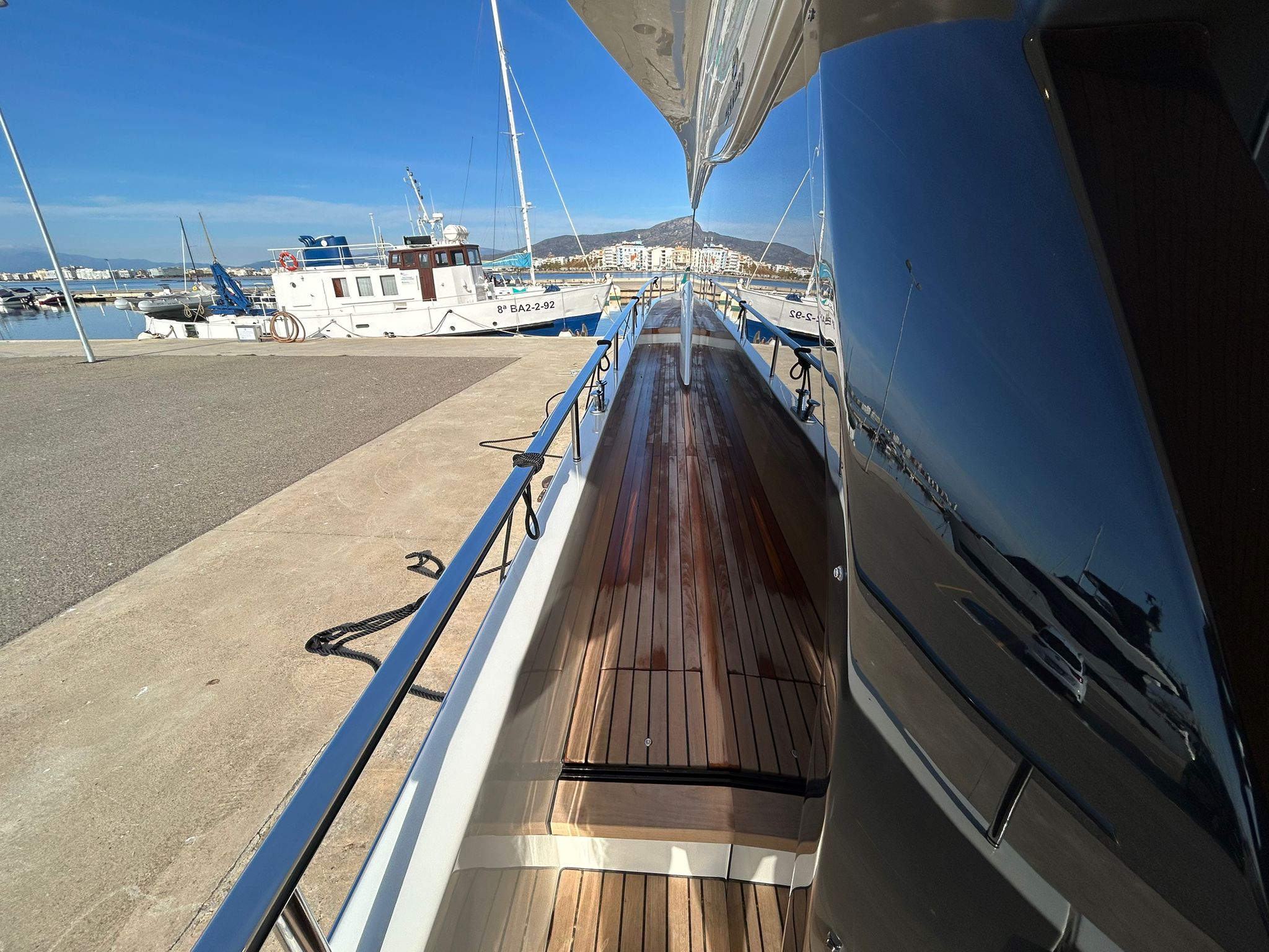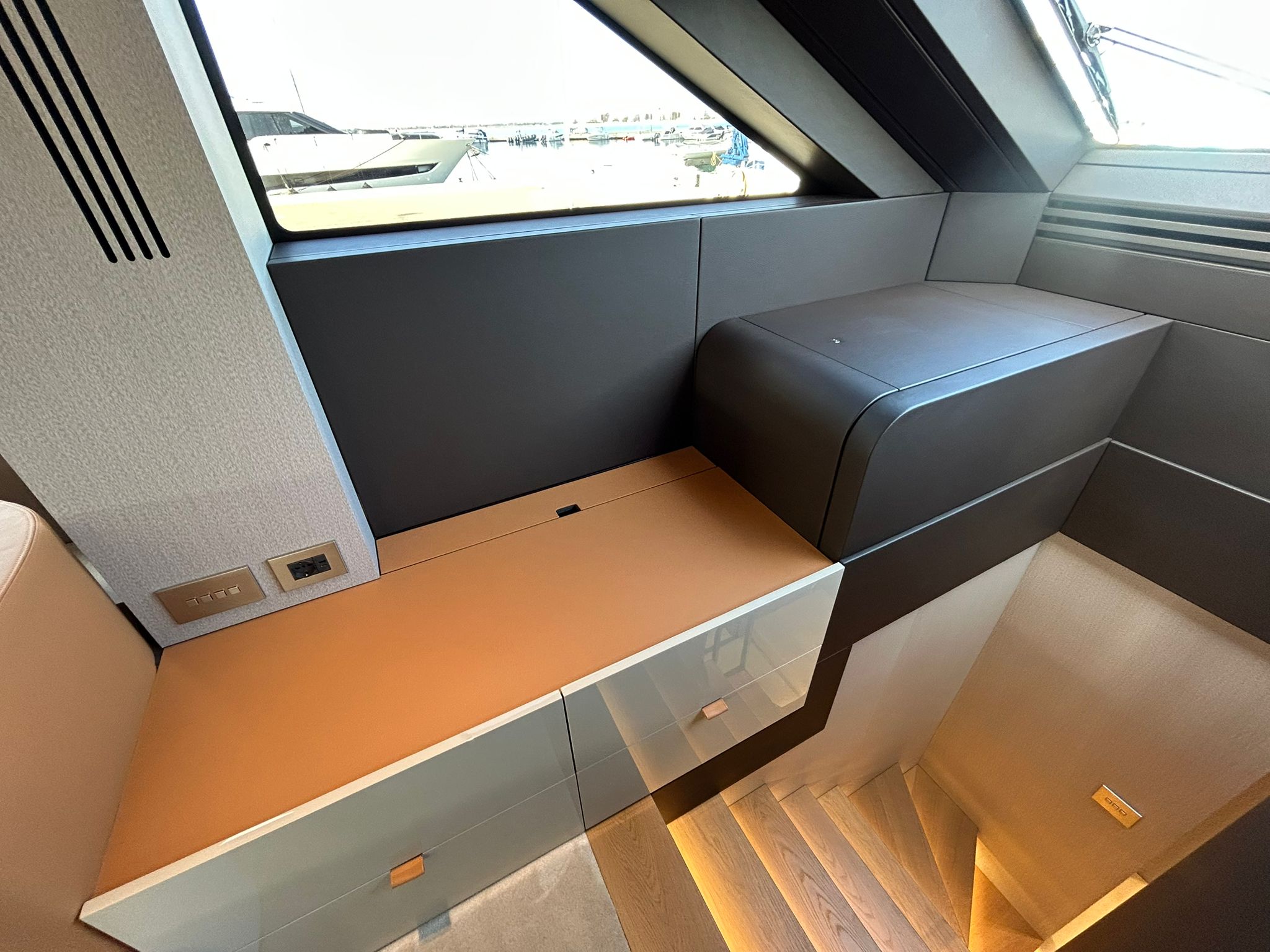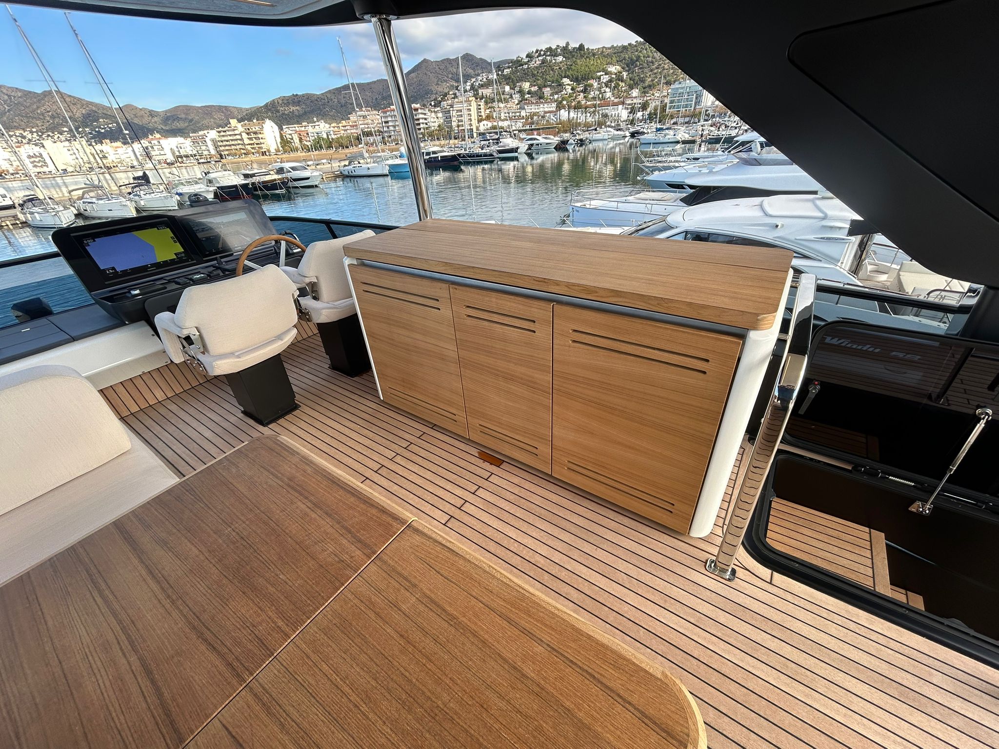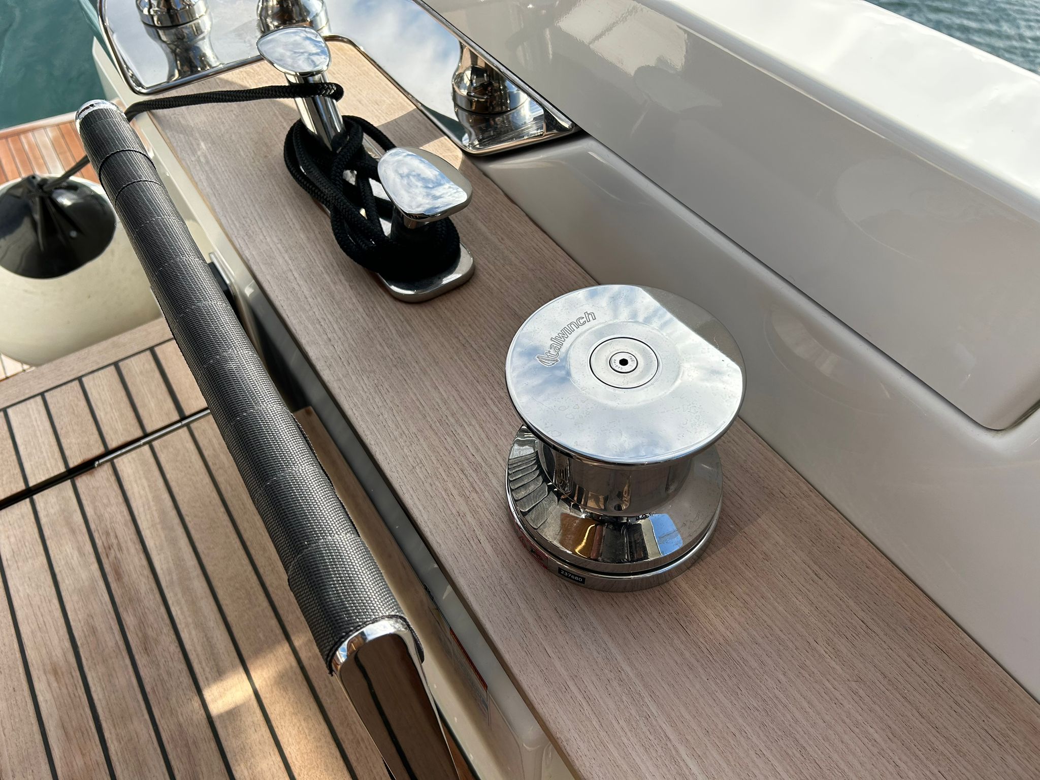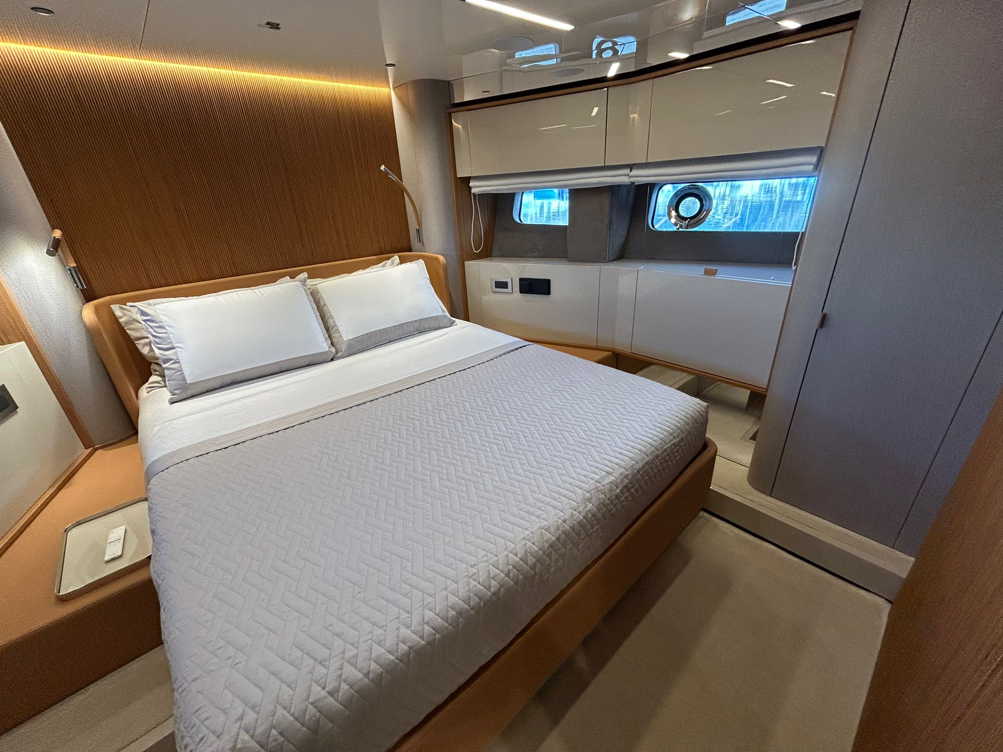 Àncora 60 Kg Ultramarine en acer inoxidable i cadena d'acer inoxidable de 100 m - Enrotlladors elèctrics cable línea de moll de 20 m amb comandament a distància - Zona de platja a popa: dutxa amb ràdio, llums i carregador inalàmbric per smartphone - Lli per 3 camarots i cabina mariner: set de llençols, fundes de coixí, funda de matalàs, cobrellit, tovalloles, etc. - Bidet al bany de la cabina de l'armador - Bimini top de proa amb pals de carboni - Caixaforta electrònica a la cabina de l'armador - 6 caps d'amarratge - Cobertura per dinette a la banyera de popa - Cobertures flybridge - Desalinitzadora 160 l/h amb comandament a la cabina i sistema rentat amb aigua dolça - Hèlix de proa proporcional - Far pirata - Nevera al sofà del matalàs de proa - Suplement generador de 20,5 kW - Tercer lloc de comandament a la banyera - Màquina de gel amb tanc d'aigua separat - Rentadora i assecadora Miele - 7 Llums subaquàtiques (3 a popa i 2 a cada costat) - Obscurants per vidres de proa i laterals - Bimini top de popa vertical - Escotilla elèctrica a la timoneria - Psasarel·la hidràulica telescòpica retràctil - Fin Stabilizations System Humphree - Seient interior copilot - Porta d'accés lateral a popa estribord - Porta d'accés lateral a popa babord - Segona pantalla plotter 22" al flybridge - Segona pantalla plotter 22" a la coberta principal - Set de vaixella, gots i coberts per 6 persones - Estabilitzador giroscòpic Seakeeper 9 - Surround view camera system Garmin - Superfície de teca als trancanils laterals proa/popa - Teca al flybridge - Tendal de popa elèctrico al flybridge - T-Top flybridge amb làmines d'obertura elèctrica - TV LED al saló amb dispositiu elèctric retràctil i sistema Home Theatre - TV 55" LED a la cabina de l'armador y ràdio Bluetooth/USB - TV 43" LED a la cabina VIP i ràdio Bluetooth/USB - Certificat CE i declaració de conformitat - Transport, muntatge amb avarada i control general al Cranchi Marine Test Centre a Venècia - Suplement transport T-Top - Decoració interior "Amalfi": combinació de colors dels mobles, sòls de fusta, teixits i marbres - Pintura de la línea de bellesa al casc de color negre - T-Top lacat negre - 2 Cúpules buides per antena satèl·lit TV6/60 cm.