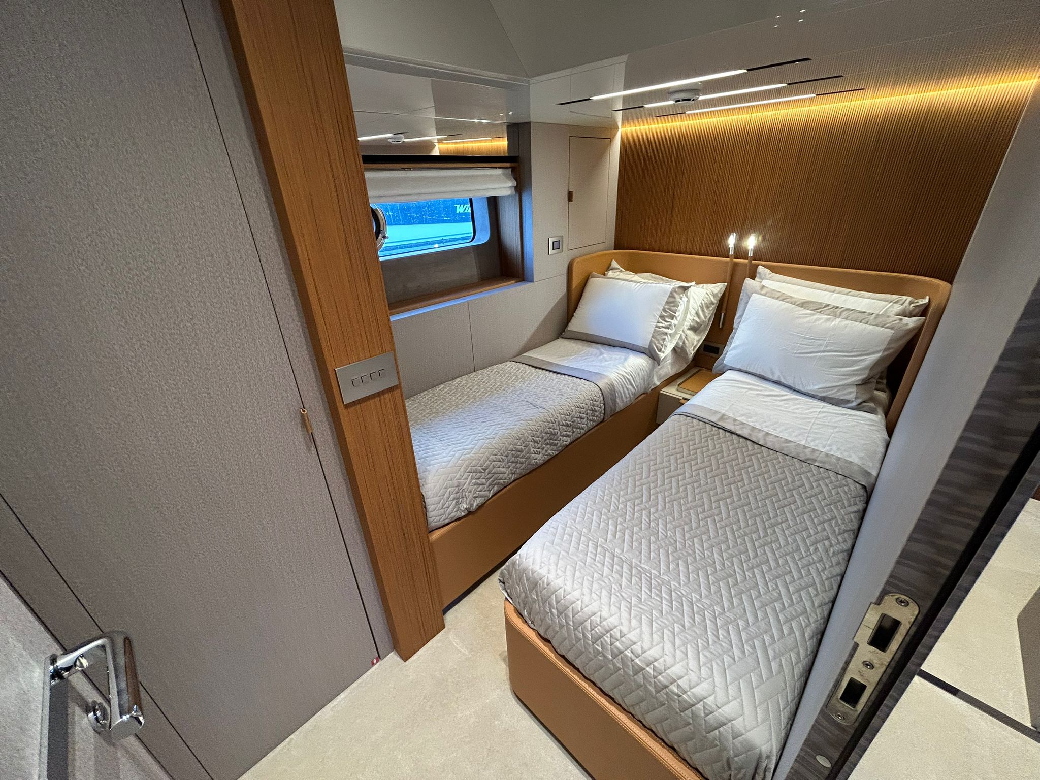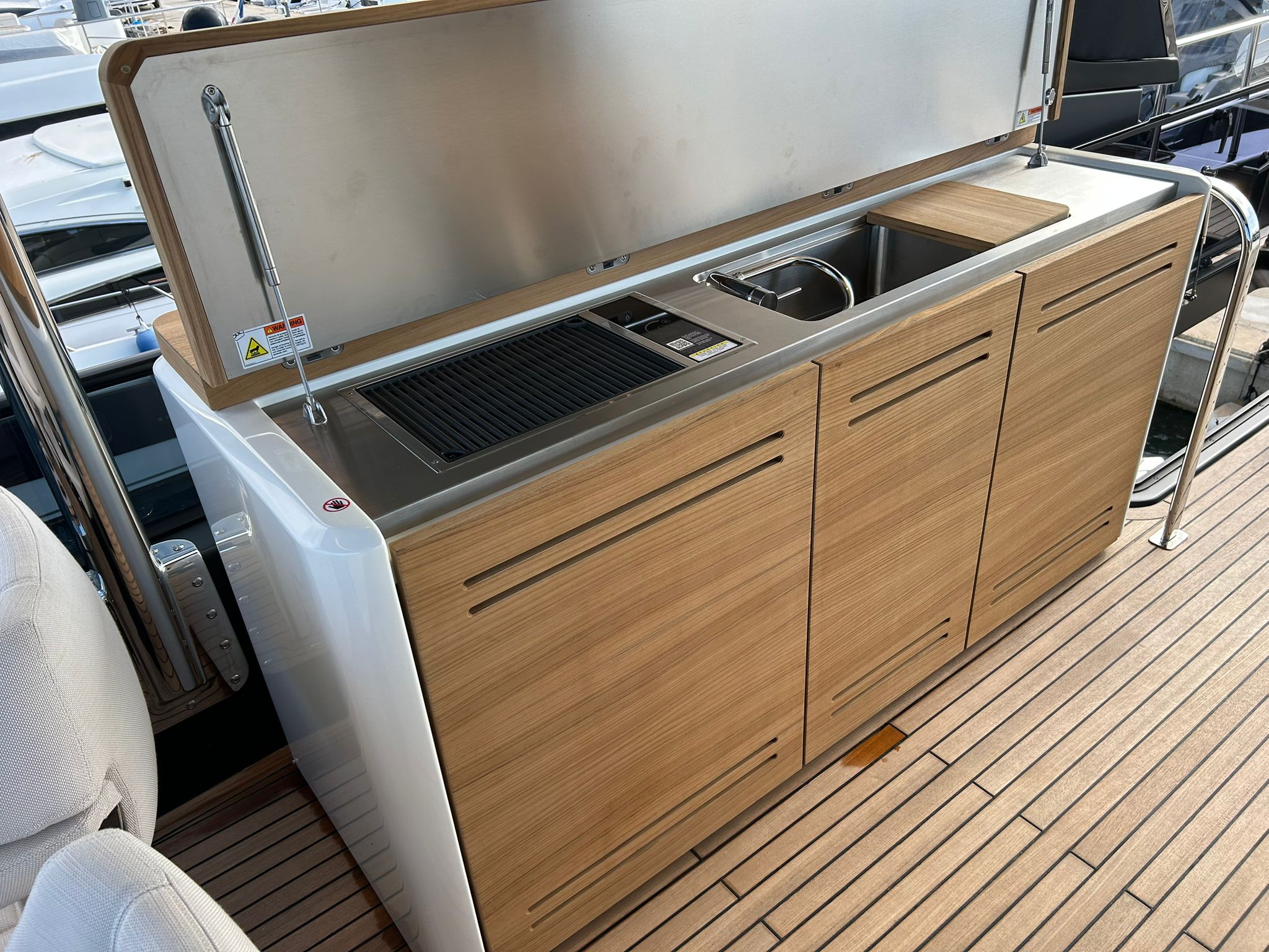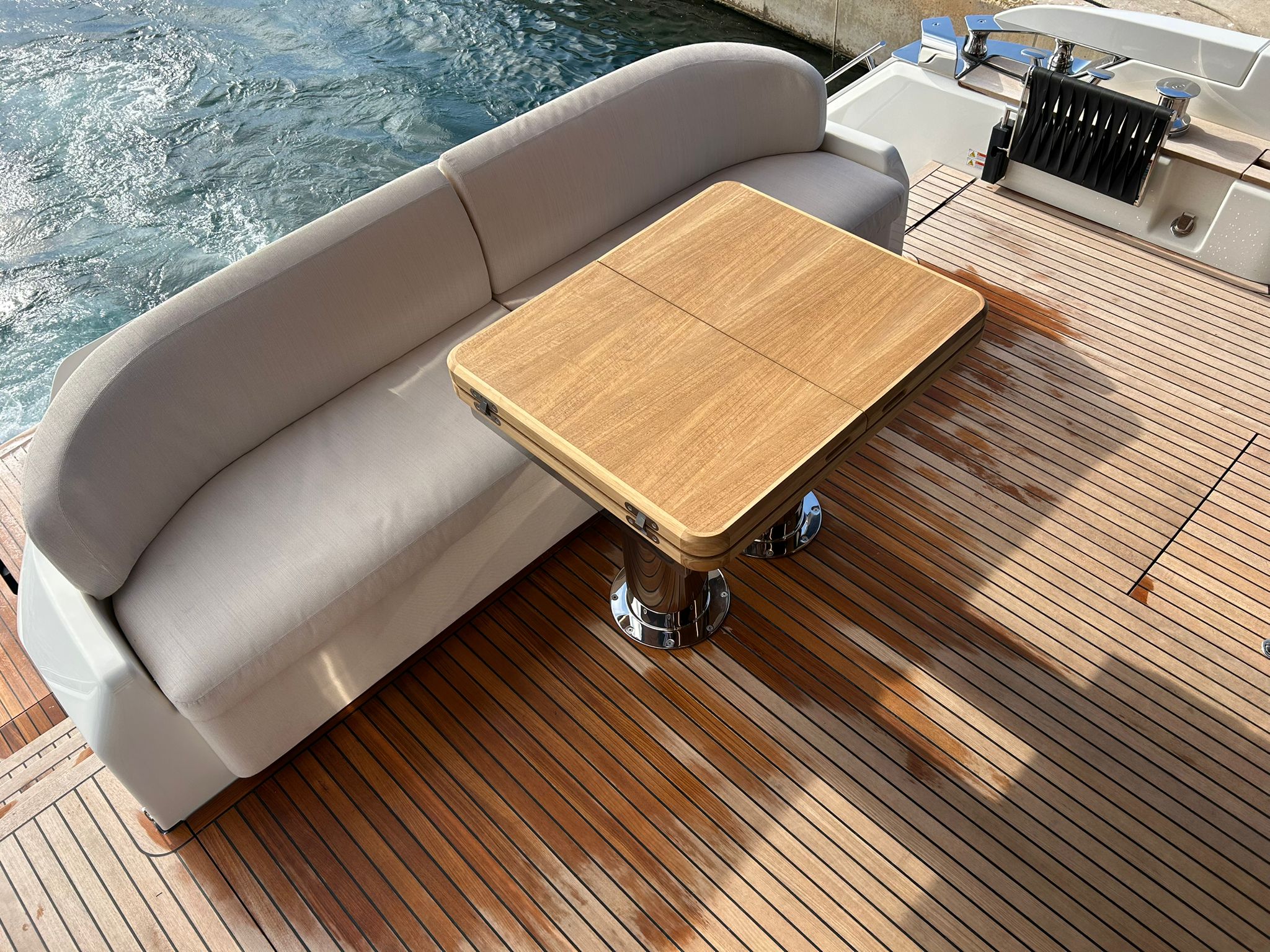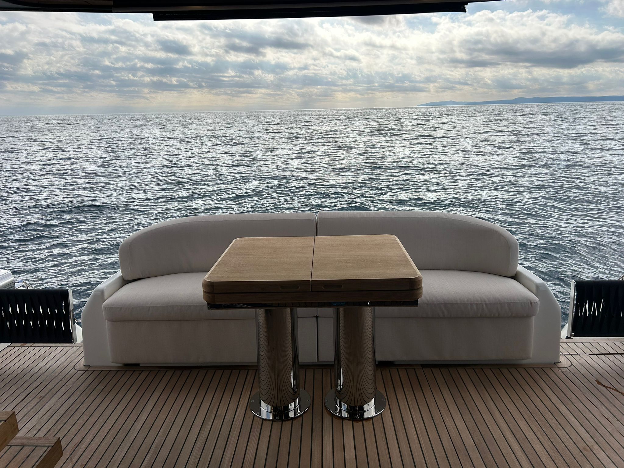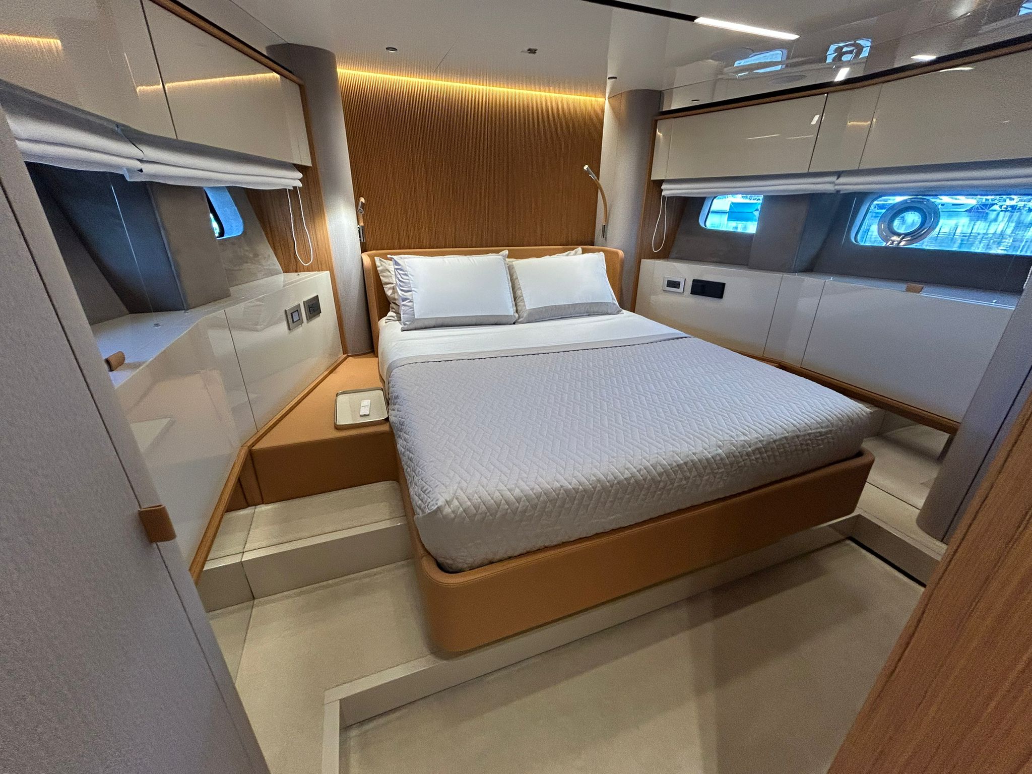 Àncora 60 Kg Ultramarine en acer inoxidable i cadena d'acer inoxidable de 100 m - Enrotlladors elèctrics cable línea de moll de 20 m amb comandament a distància - Zona de platja a popa: dutxa amb ràdio, llums i carregador inalàmbric per smartphone - Lli per 3 camarots i cabina mariner: set de llençols, fundes de coixí, funda de matalàs, cobrellit, tovalloles, etc. - Bidet al bany de la cabina de l'armador - Bimini top de proa amb pals de carboni - Caixaforta electrònica a la cabina de l'armador - 6 caps d'amarratge - Cobertura per dinette a la banyera de popa - Cobertures flybridge - Desalinitzadora 160 l/h amb comandament a la cabina i sistema rentat amb aigua dolça - Hèlix de proa proporcional - Far pirata - Nevera al sofà del matalàs de proa - Suplement generador de 20,5 kW - Tercer lloc de comandament a la banyera - Màquina de gel amb tanc d'aigua separat - Rentadora i assecadora Miele - 7 Llums subaquàtiques (3 a popa i 2 a cada costat) - Obscurants per vidres de proa i laterals - Bimini top de popa vertical - Escotilla elèctrica a la timoneria - Psasarel·la hidràulica telescòpica retràctil - Fin Stabilizations System Humphree - Seient interior copilot - Porta d'accés lateral a popa estribord - Porta d'accés lateral a popa babord - Segona pantalla plotter 22" al flybridge - Segona pantalla plotter 22" a la coberta principal - Set de vaixella, gots i coberts per 6 persones - Estabilitzador giroscòpic Seakeeper 9 - Surround view camera system Garmin - Superfície de teca als trancanils laterals proa/popa - Teca al flybridge - Tendal de popa elèctrico al flybridge - T-Top flybridge amb làmines d'obertura elèctrica - TV LED al saló amb dispositiu elèctric retràctil i sistema Home Theatre - TV 55" LED a la cabina de l'armador y ràdio Bluetooth/USB - TV 43" LED a la cabina VIP i ràdio Bluetooth/USB - Certificat CE i declaració de conformitat - Transport, muntatge amb avarada i control general al Cranchi Marine Test Centre a Venècia - Suplement transport T-Top - Decoració interior "Amalfi": combinació de colors dels mobles, sòls de fusta, teixits i marbres - Pintura de la línea de bellesa al casc de color negre - T-Top lacat negre - 2 Cúpules buides per antena satèl·lit TV6/60 cm.