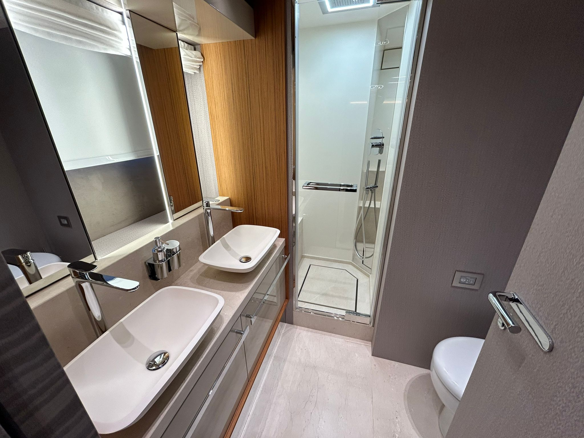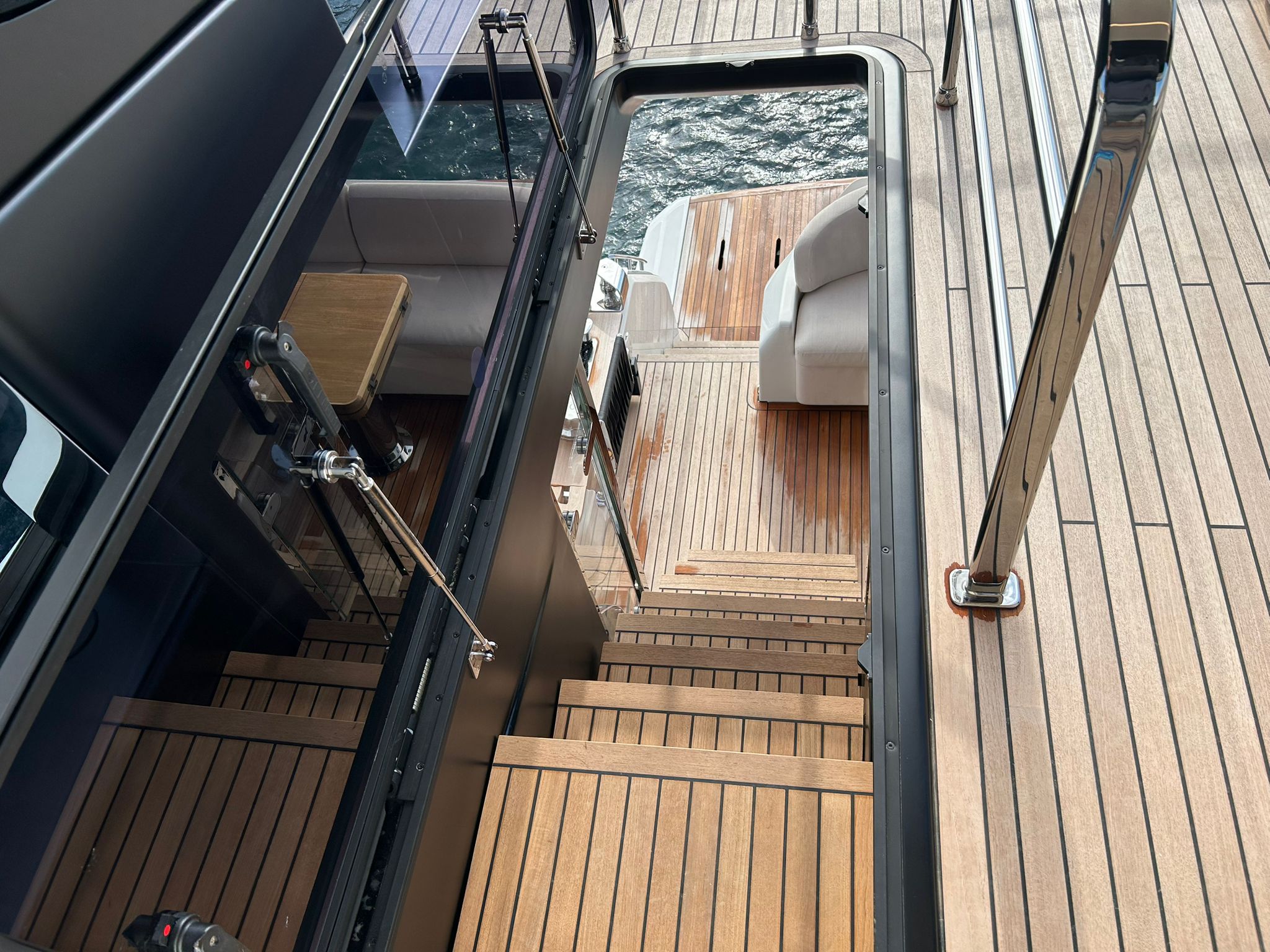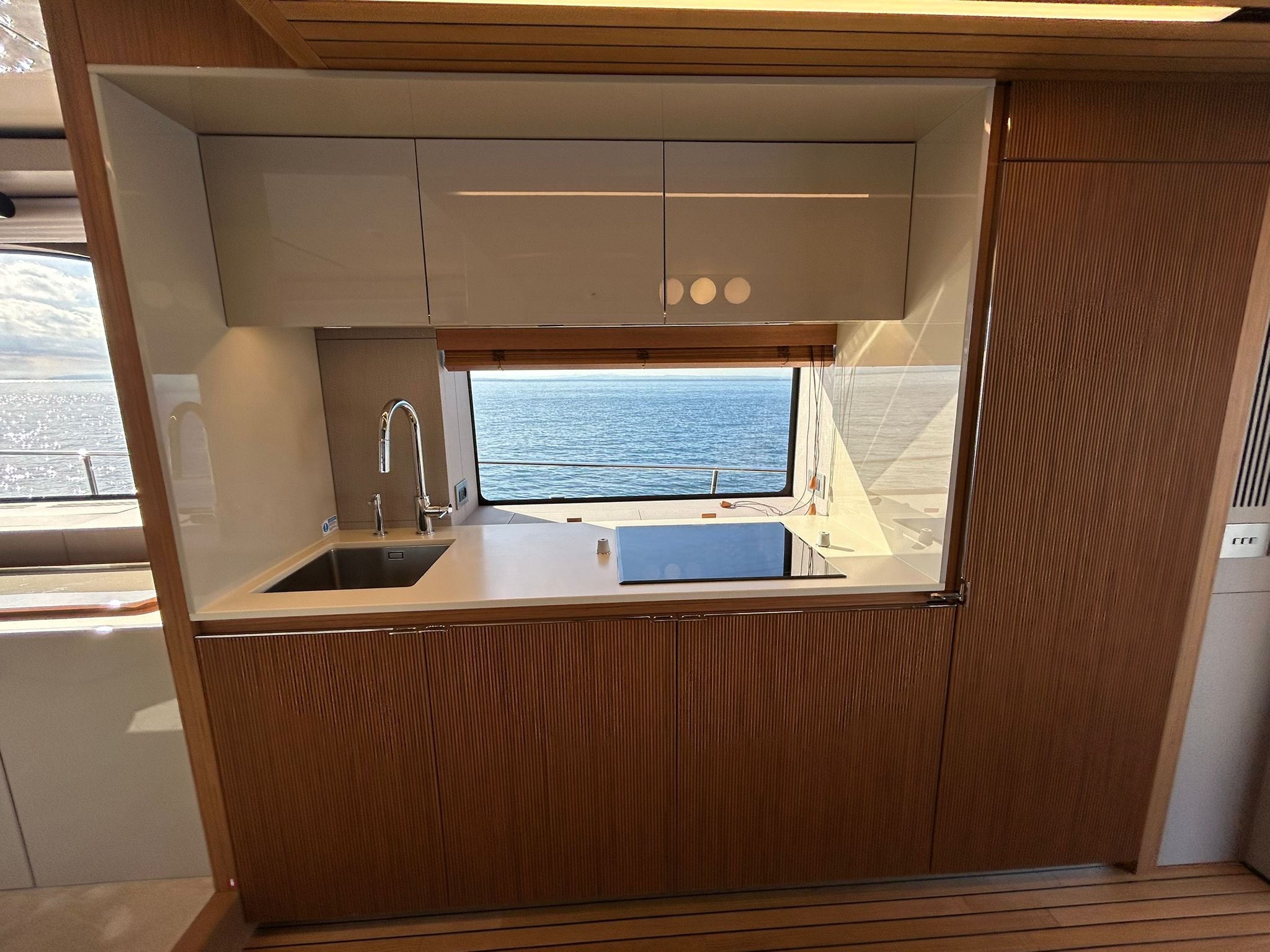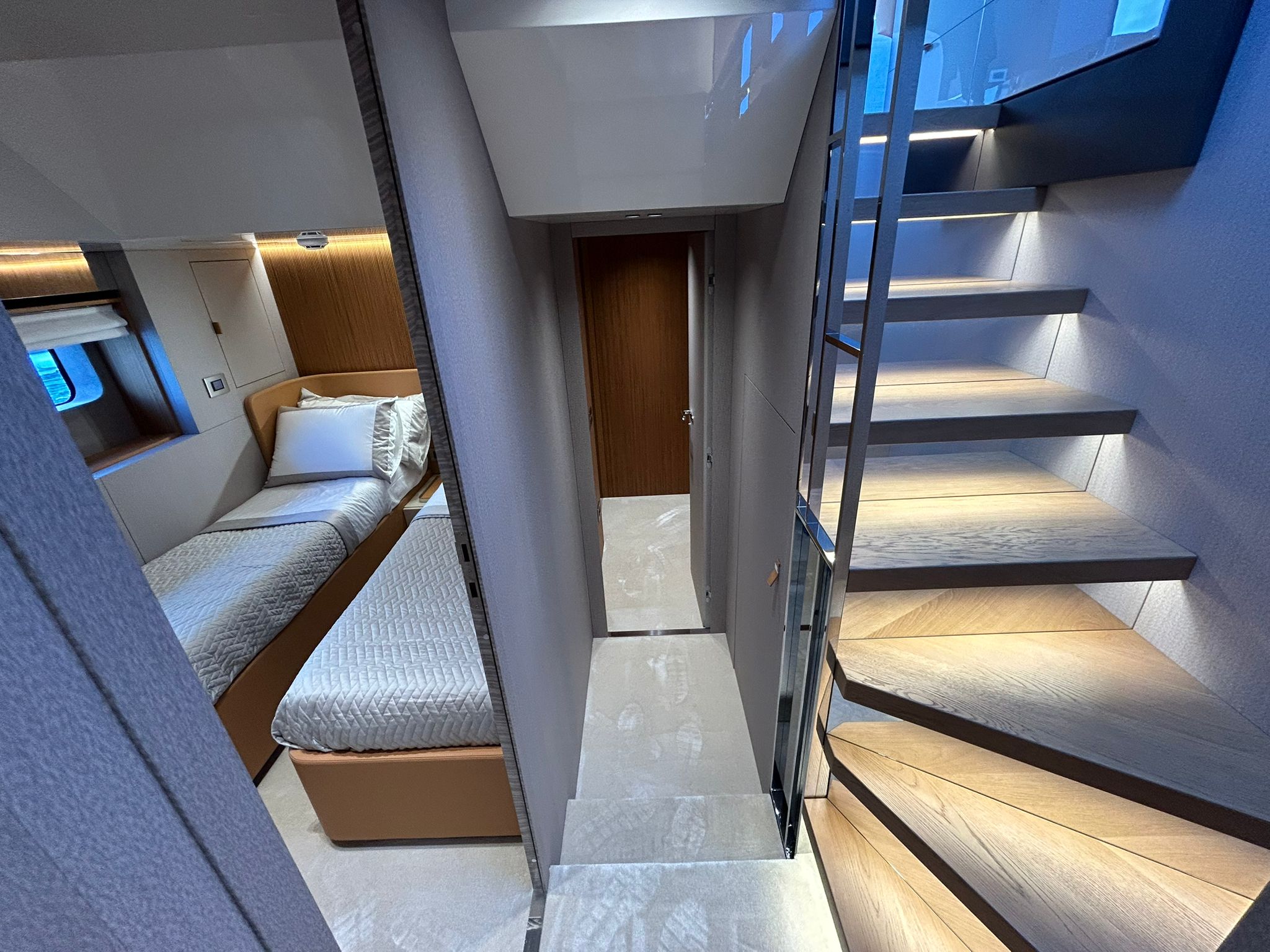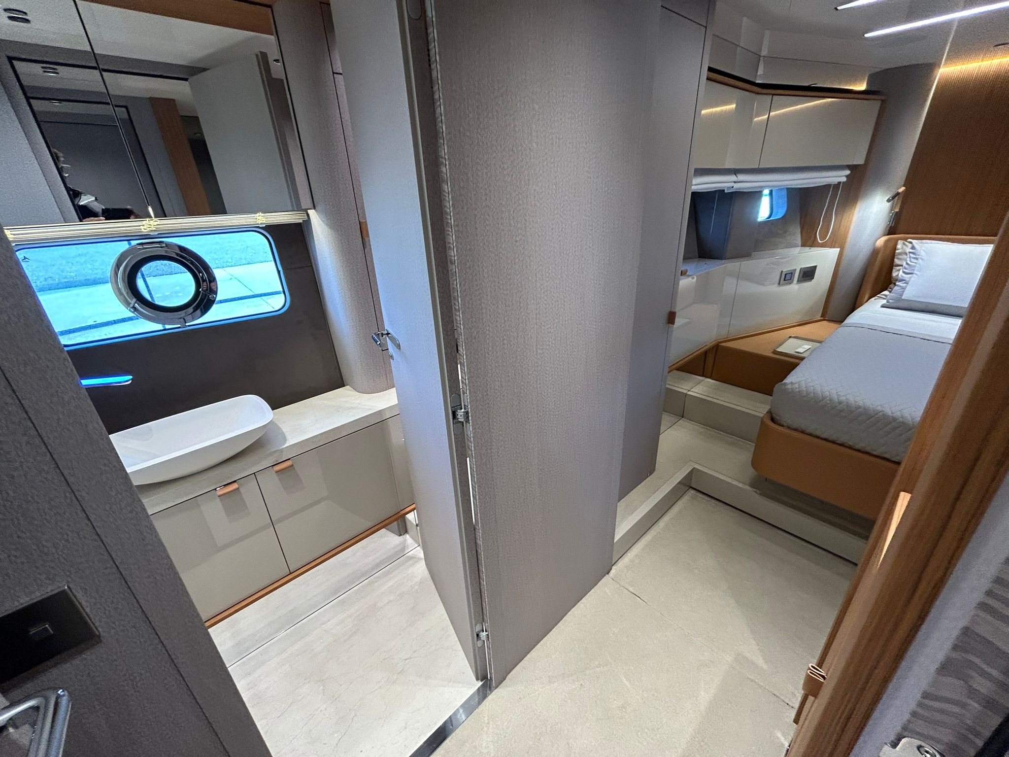 Àncora 60 Kg Ultramarine en acer inoxidable i cadena d'acer inoxidable de 100 m - Enrotlladors elèctrics cable línea de moll de 20 m amb comandament a distància - Zona de platja a popa: dutxa amb ràdio, llums i carregador inalàmbric per smartphone - Lli per 3 camarots i cabina mariner: set de llençols, fundes de coixí, funda de matalàs, cobrellit, tovalloles, etc. - Bidet al bany de la cabina de l'armador - Bimini top de proa amb pals de carboni - Caixaforta electrònica a la cabina de l'armador - 6 caps d'amarratge - Cobertura per dinette a la banyera de popa - Cobertures flybridge - Desalinitzadora 160 l/h amb comandament a la cabina i sistema rentat amb aigua dolça - Hèlix de proa proporcional - Far pirata - Nevera al sofà del matalàs de proa - Suplement generador de 20,5 kW - Tercer lloc de comandament a la banyera - Màquina de gel amb tanc d'aigua separat - Rentadora i assecadora Miele - 7 Llums subaquàtiques (3 a popa i 2 a cada costat) - Obscurants per vidres de proa i laterals - Bimini top de popa vertical - Escotilla elèctrica a la timoneria - Psasarel·la hidràulica telescòpica retràctil - Fin Stabilizations System Humphree - Seient interior copilot - Porta d'accés lateral a popa estribord - Porta d'accés lateral a popa babord - Segona pantalla plotter 22" al flybridge - Segona pantalla plotter 22" a la coberta principal - Set de vaixella, gots i coberts per 6 persones - Estabilitzador giroscòpic Seakeeper 9 - Surround view camera system Garmin - Superfície de teca als trancanils laterals proa/popa - Teca al flybridge - Tendal de popa elèctrico al flybridge - T-Top flybridge amb làmines d'obertura elèctrica - TV LED al saló amb dispositiu elèctric retràctil i sistema Home Theatre - TV 55" LED a la cabina de l'armador y ràdio Bluetooth/USB - TV 43" LED a la cabina VIP i ràdio Bluetooth/USB - Certificat CE i declaració de conformitat - Transport, muntatge amb avarada i control general al Cranchi Marine Test Centre a Venècia - Suplement transport T-Top - Decoració interior "Amalfi": combinació de colors dels mobles, sòls de fusta, teixits i marbres - Pintura de la línea de bellesa al casc de color negre - T-Top lacat negre - 2 Cúpules buides per antena satèl·lit TV6/60 cm.