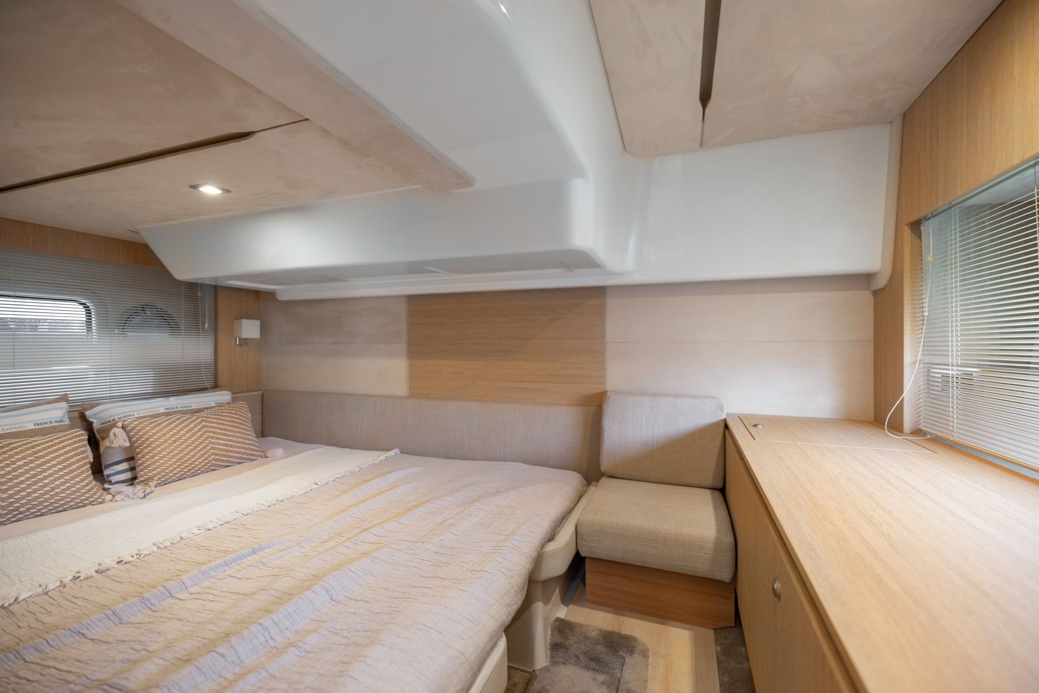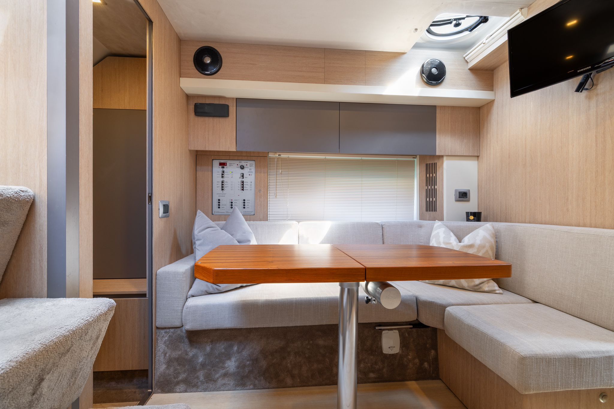 Bimini - Passare'la - Ducha d'aigua calenta - 2 neveres - Taula - Carregador de bateríes 220 v. - Tv - Wc marí - Dutxa amb manpara - Cuberta de teca - Equip d'àudio - 2 camarots - Joystick - Gps/Plotter/Sonda - Pilot automàtic - Indicador de direcció del timó - Molinet d'àncora elèctric - Antifouling.