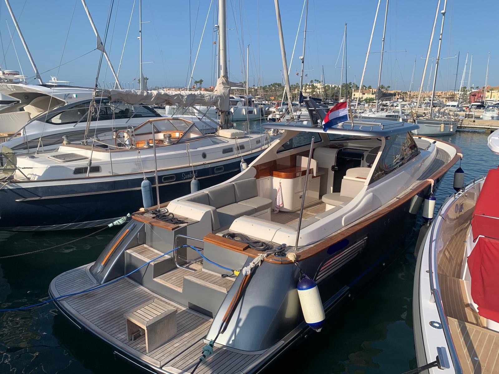 Plataforma de bany amb escala - Ducha a popa - Solàrium de proa - Teka - Nevera a la banyera - Carregador de bateries - Presa de port 220V. - Equip d'àdio - Gps/Plotter/Sonda - VHF - Comandaments electrònics - Joystick - Aire condicionat - Generador - Flaps - Cuina inducció - Wc elèctric - Molinet elèctric - Antifouling.