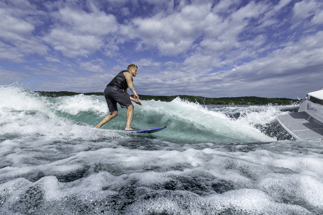 Un rendimiento de lujo y un baile atlético cargado de adrenalina sólo con apretar el acelerador. Una mezcla única de confort y agilidad que satisface las necesidades de toda la familia. Descubra el Regal LS2 Surf 2.0, con el innovador sistema Surf  de Regal y el Foward Drive de Volvo se pueden crear olas aptas para surfear sin parar.