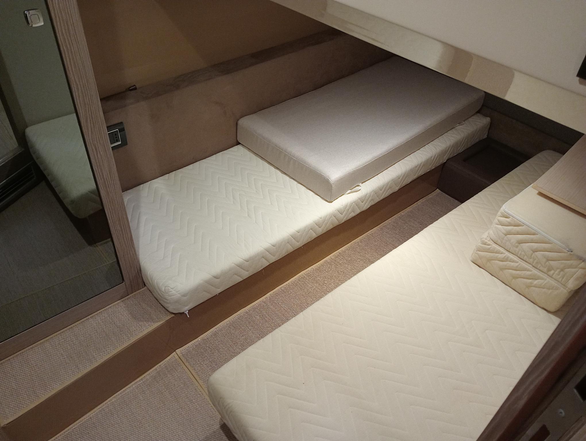Generador - Aire condicionat - Pilot automàtic - GPS Plotter Raymarine 12" - Molinet elèctric - Compte metres cadena - Equip audio interior i exterior - Joystick IPS - Hèlix de proa - Flaps Benetti - Plataforma hidràulica - Bimini elèctric en banyera - Solàrium a proa i popa - Cuina complerta en plataforma de bany - Hard-Top elèctric - Presa d'aigua dolça - Grill  a la plataforma de bany - Microones - Nevera - Congelador - Campana extractora - WC elèctrics amb dipòsits d'aigües negres - Nevera adicional al saló - Sistema de posicionament DPS de Volvo.