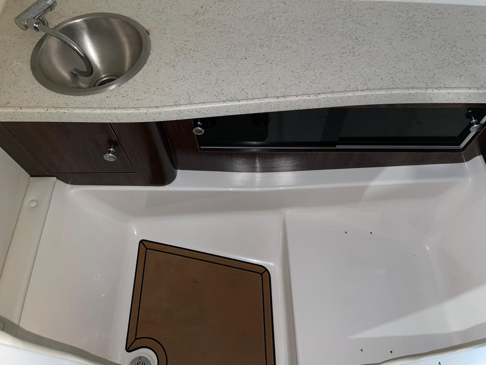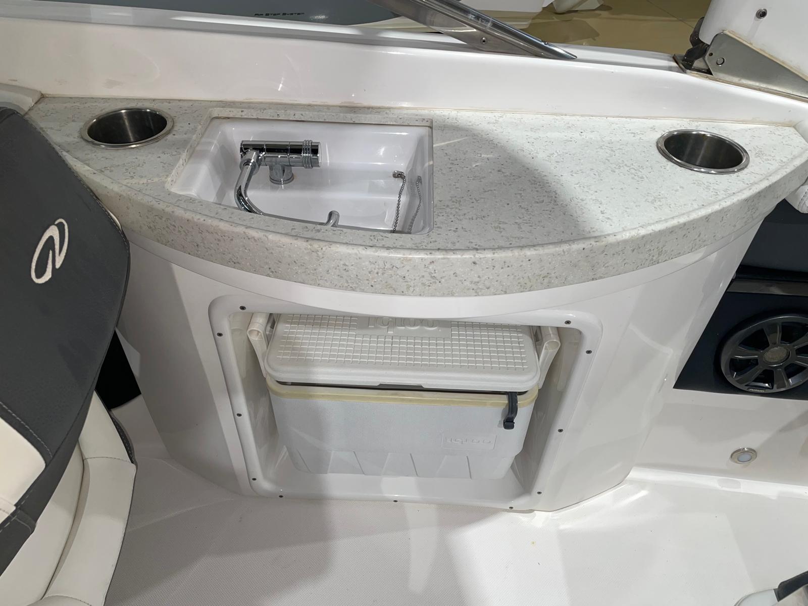 Plataforma de baño con escalera - Ducha en popa - Seadeck - Solárium de popa - Nevera portátil - Mesa en la bañera - Equipo de audio - Gps/Sonda - VHF - Fregadero - Molinete de ancla eléctrico - Antifouling.