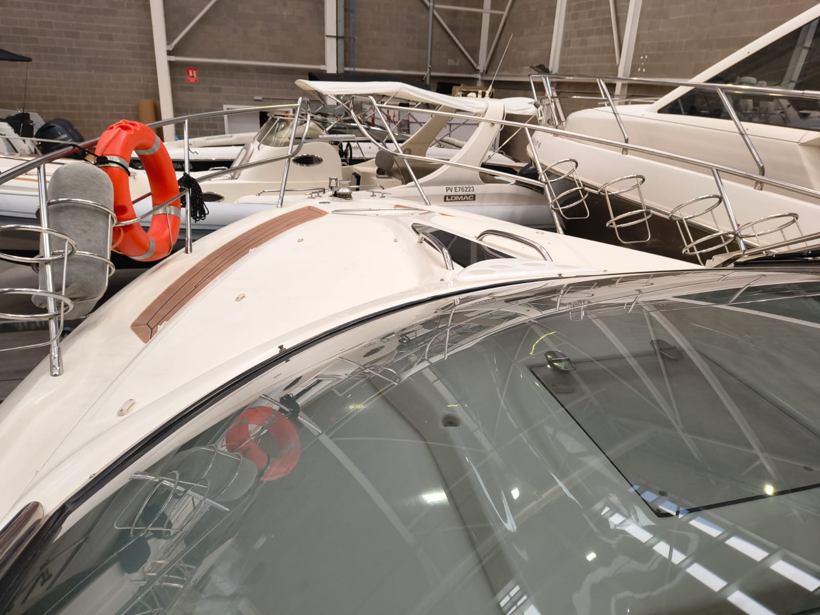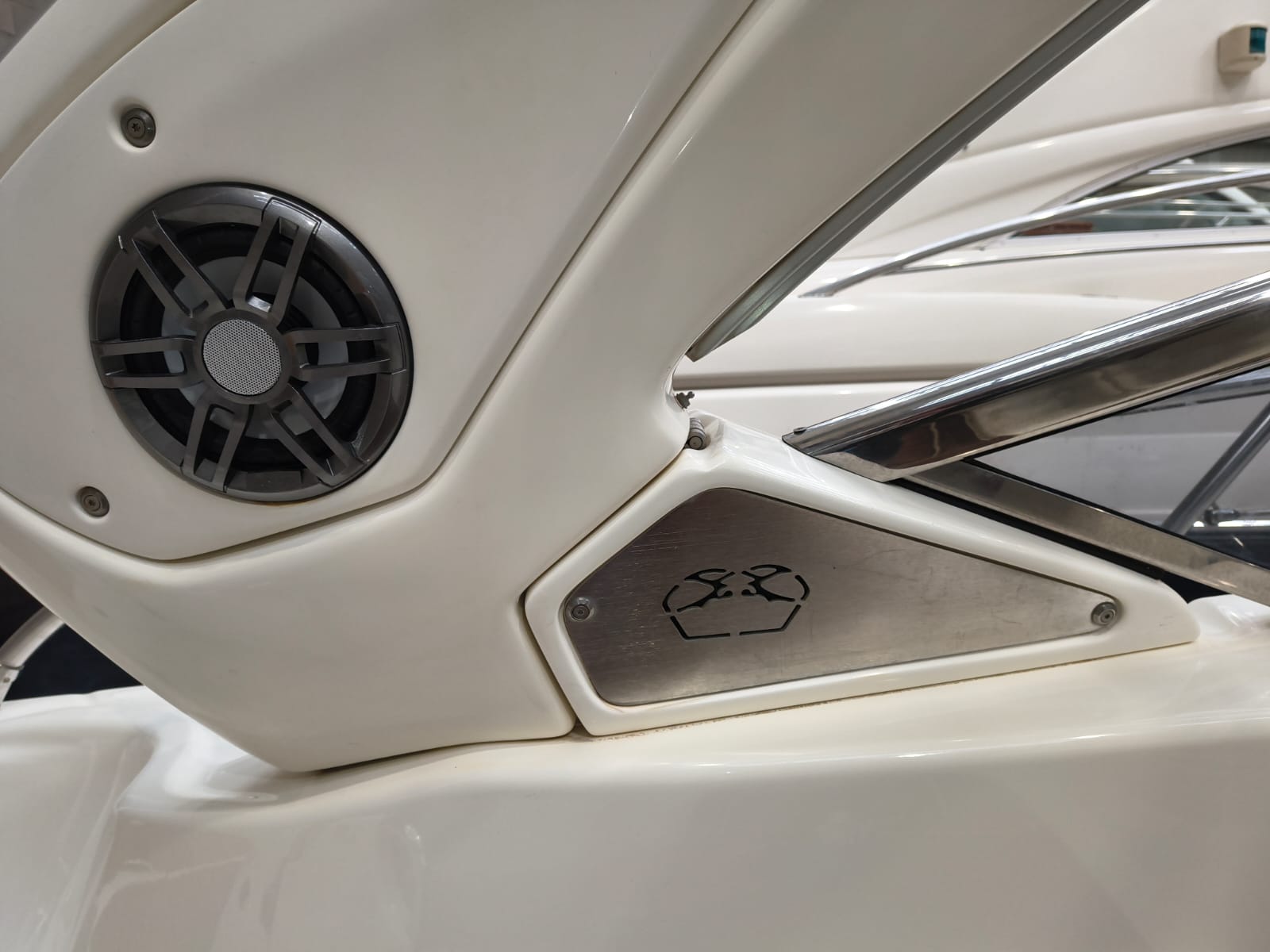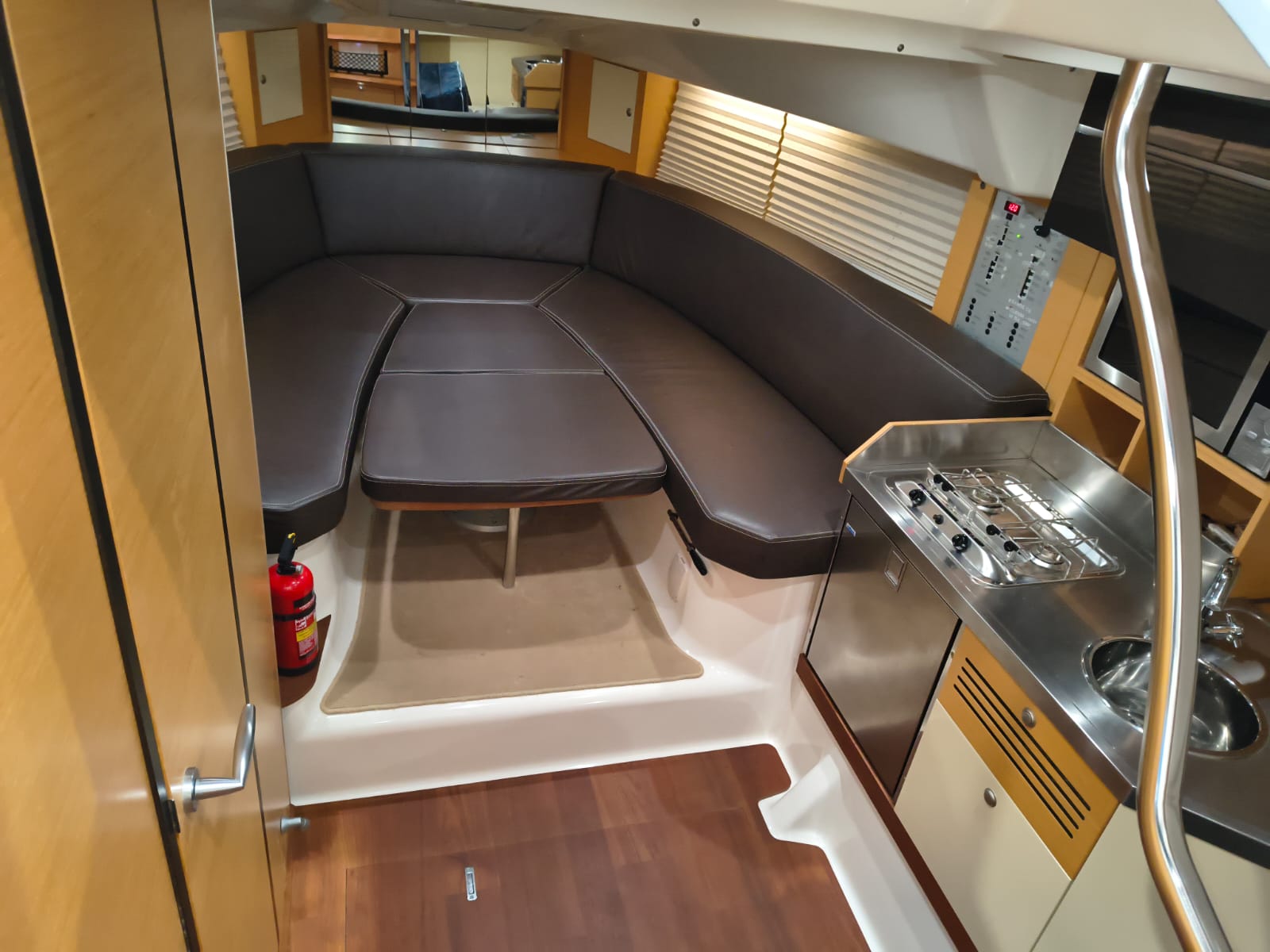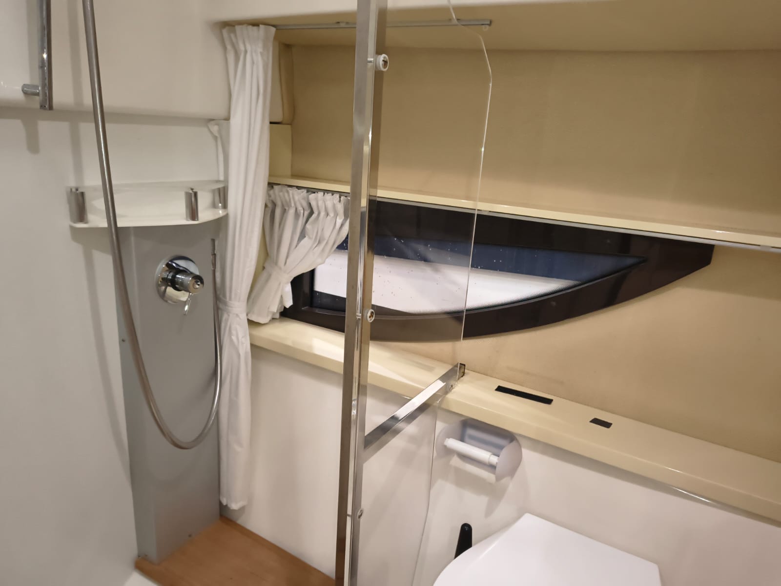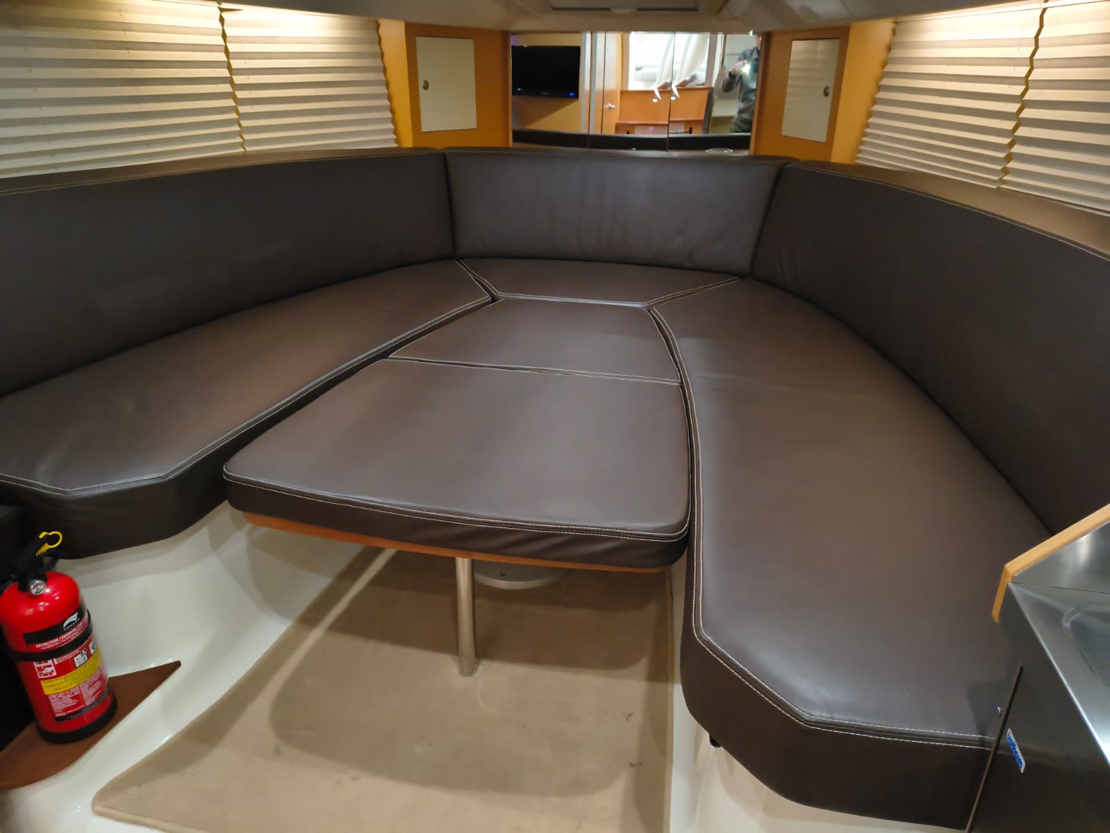 Guindeau électrique - Trim tabs - Taud soleil - Coussin bain de soleil avant - Réfrigérateur 12 V dans le cockpit - Réfrigerateur 12 V dans la cabine - Douche à poupe - Prise de quai 220 V - Chargeur de batteries - Table dans la cabine transformable en lit - WC électrique - Douche séparée - Cuisine à gaz - Four à micro-ondes - Propulseur d'étrave - Pilote automatique - Commandes électroniques - GPS/Plotter/Sondeur - VHF - Équipement audio - Table électrique dans le cockpit - TV - Antifouling