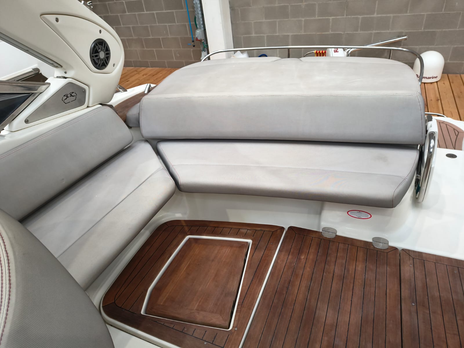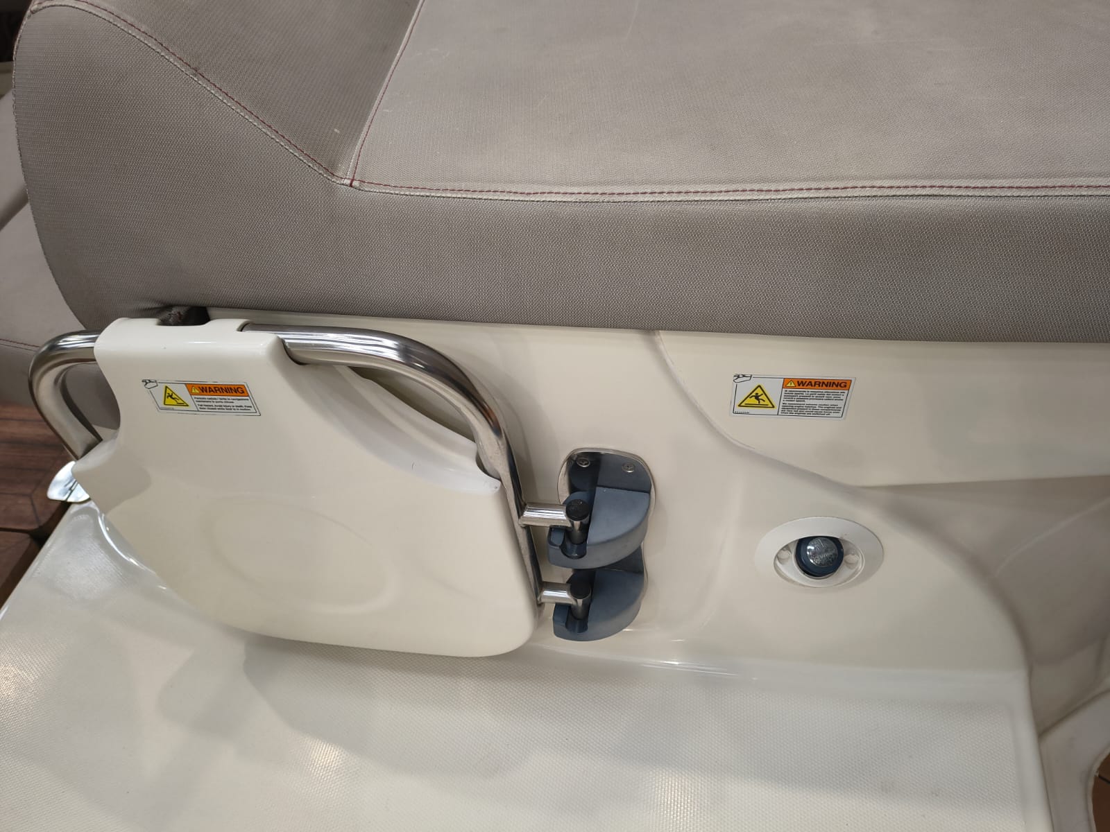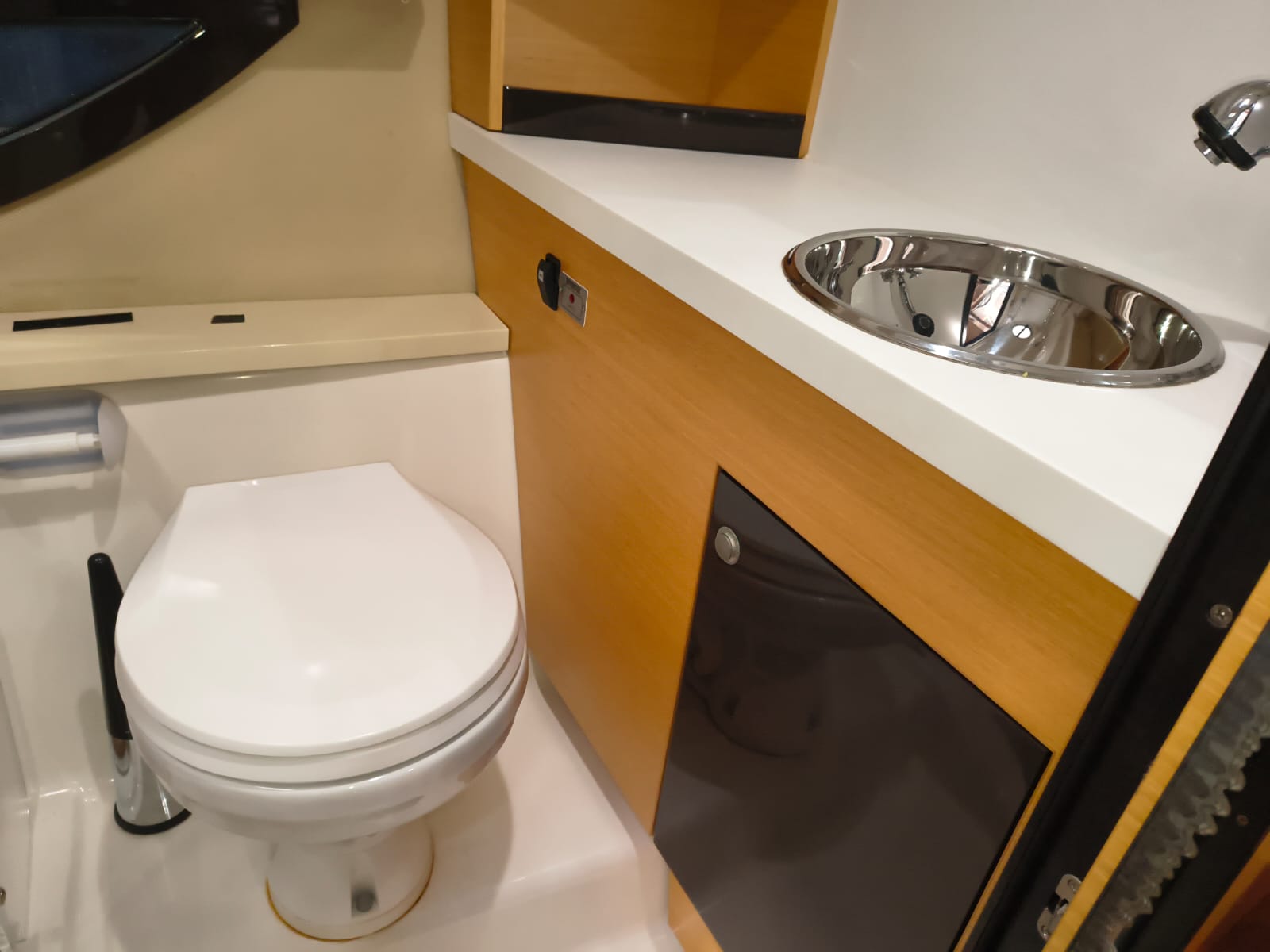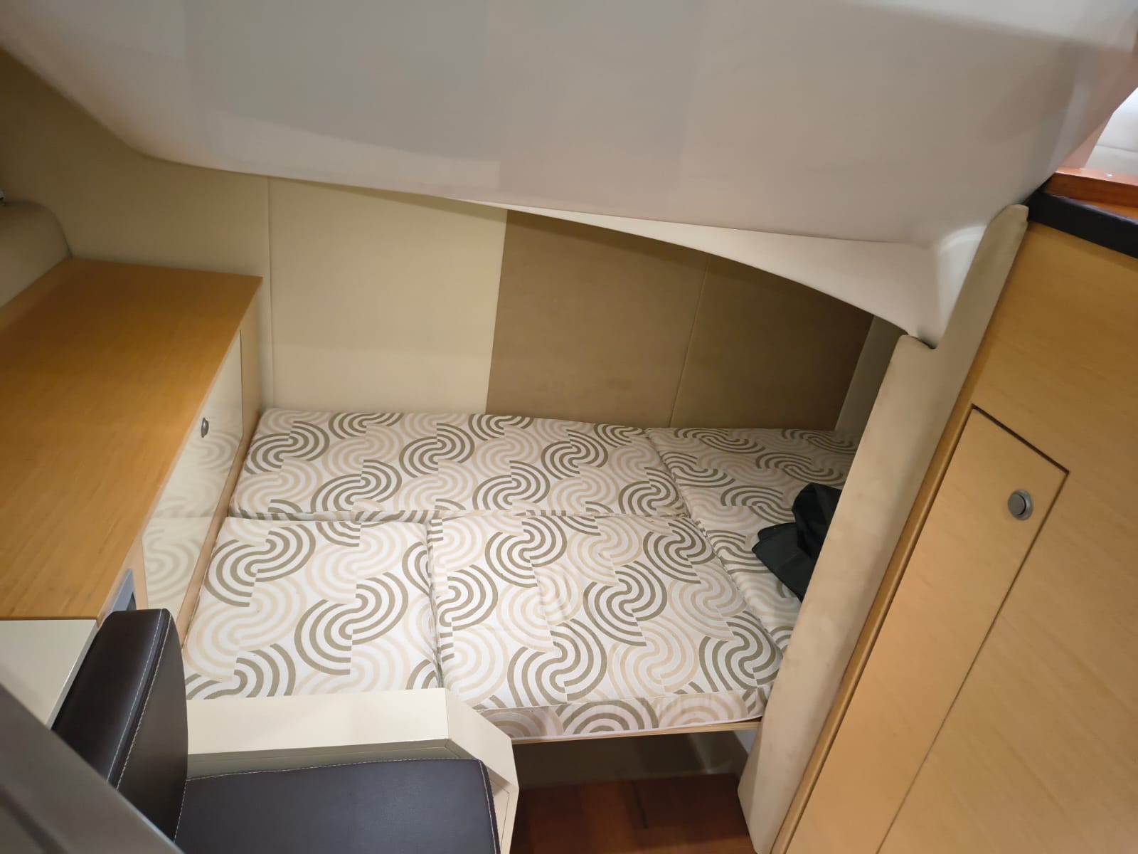 Guindeau électrique - Trim tabs - Taud soleil - Coussin bain de soleil avant - Réfrigérateur 12 V dans le cockpit - Réfrigerateur 12 V dans la cabine - Douche à poupe - Prise de quai 220 V - Chargeur de batteries - Table dans la cabine transformable en lit - WC électrique - Douche séparée - Cuisine à gaz - Four à micro-ondes - Propulseur d'étrave - Pilote automatique - Commandes électroniques - GPS/Plotter/Sondeur - VHF - Équipement audio - Table électrique dans le cockpit - TV - Antifouling