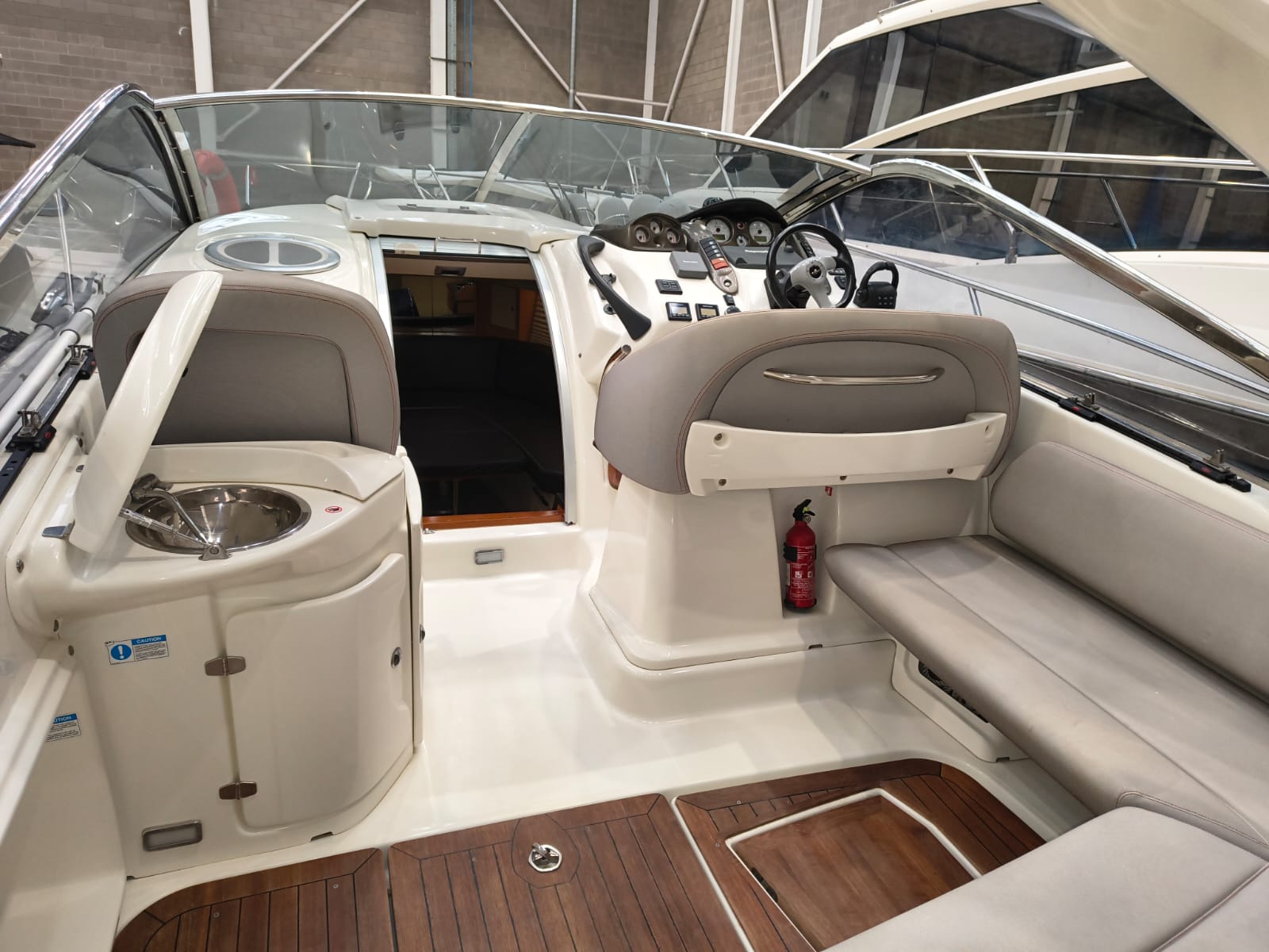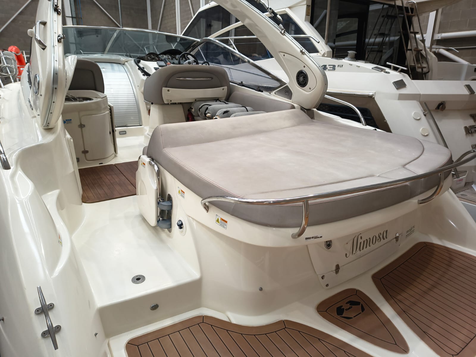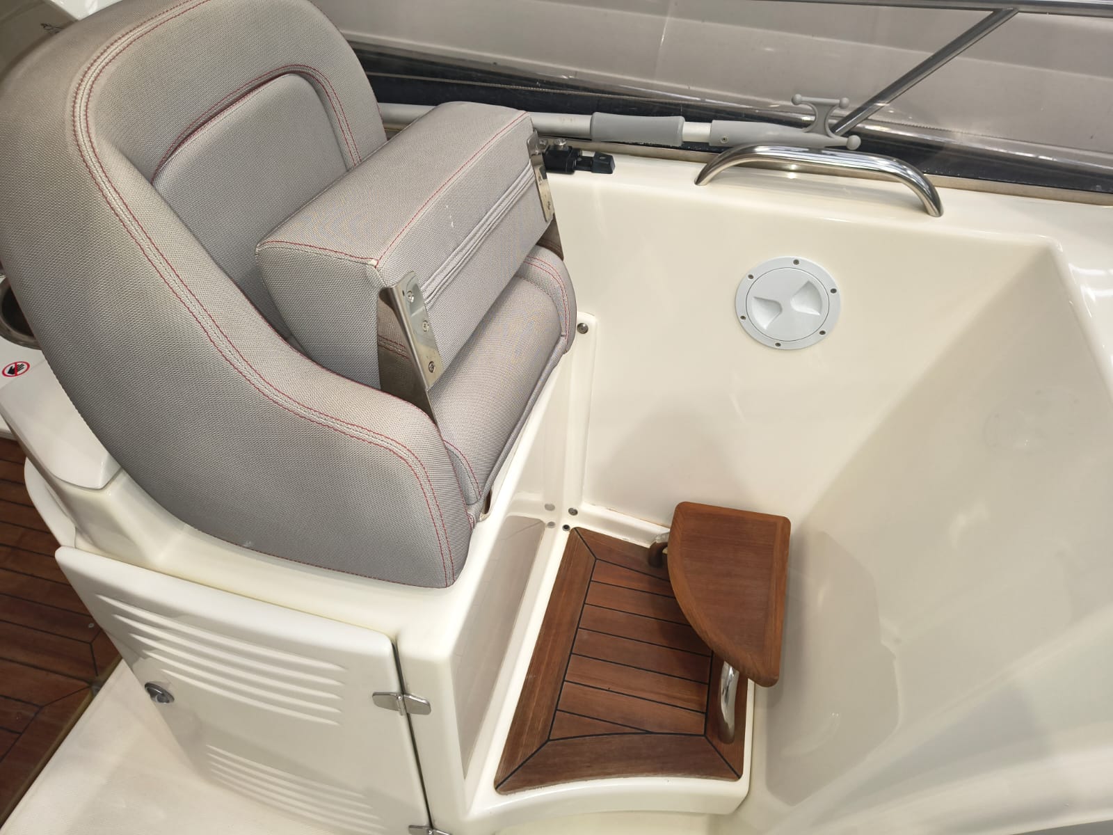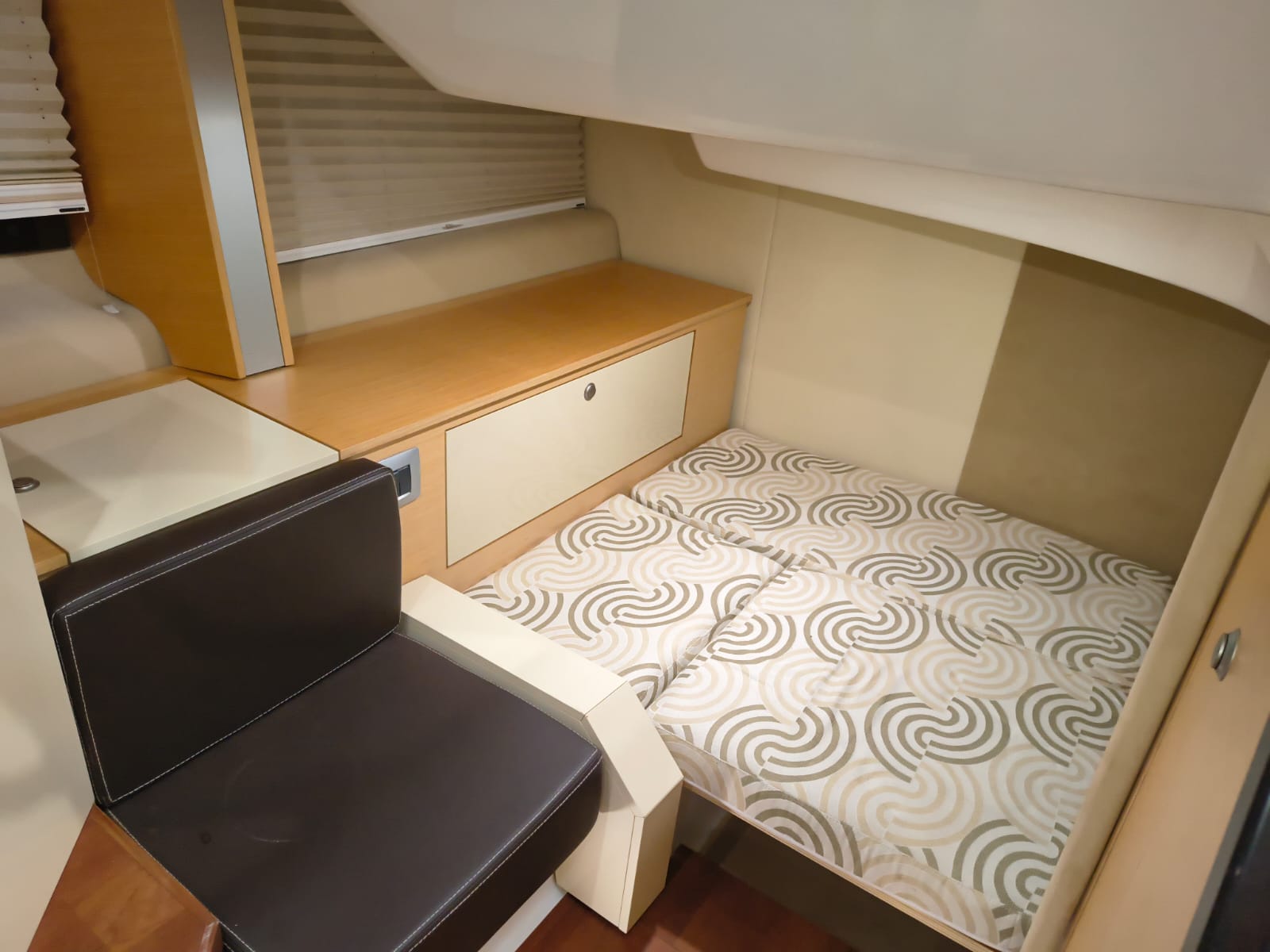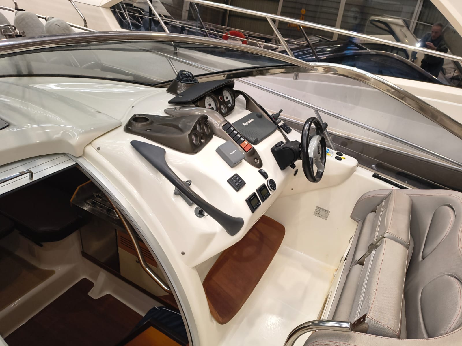 Guindeau électrique - Trim tabs - Taud soleil - Coussin bain de soleil avant - Réfrigérateur 12 V dans le cockpit - Réfrigerateur 12 V dans la cabine - Douche à poupe - Prise de quai 220 V - Chargeur de batteries - Table dans la cabine transformable en lit - WC électrique - Douche séparée - Cuisine à gaz - Four à micro-ondes - Propulseur d'étrave - Pilote automatique - Commandes électroniques - GPS/Plotter/Sondeur - VHF - Équipement audio - Table électrique dans le cockpit - TV - Antifouling