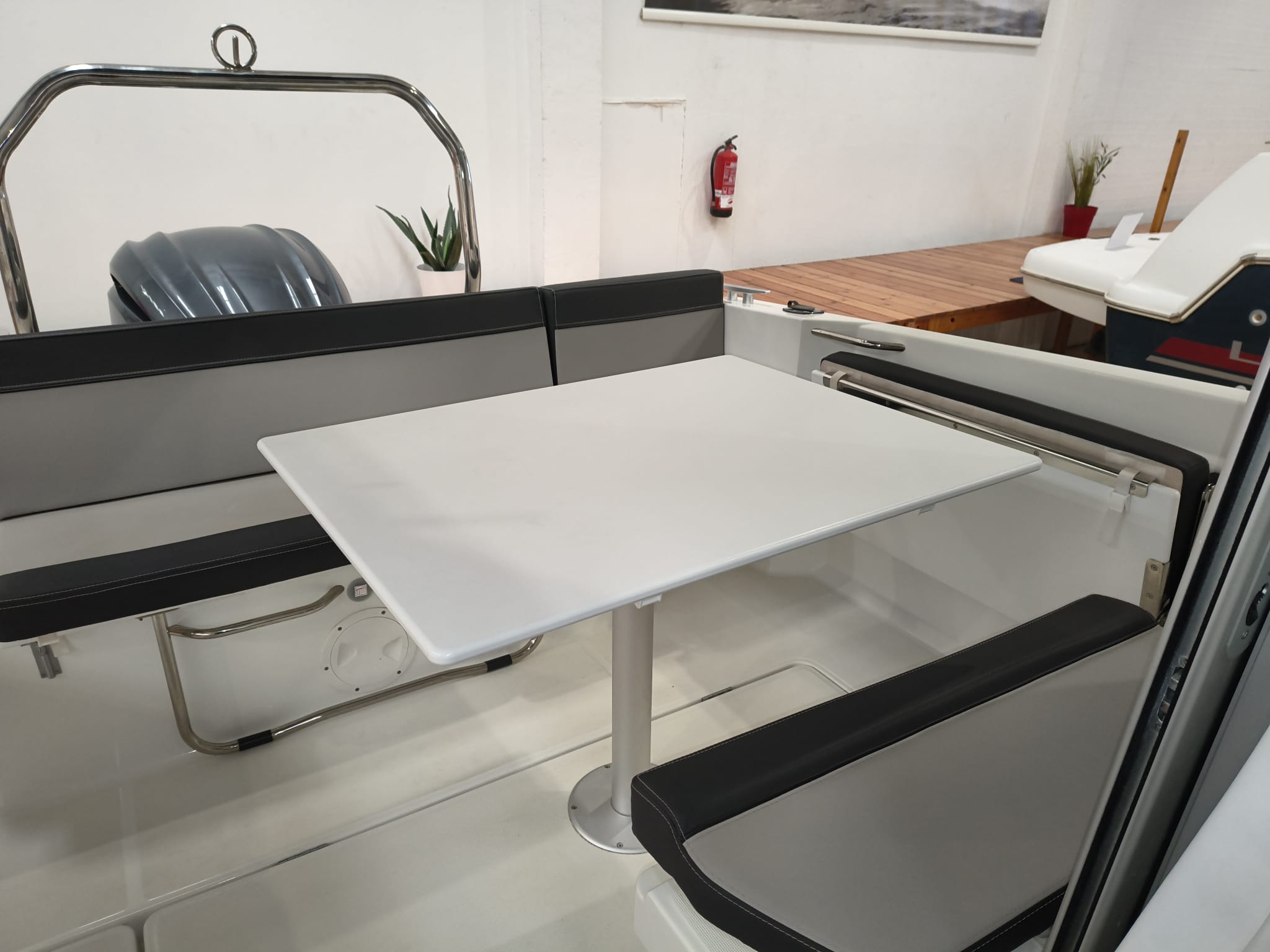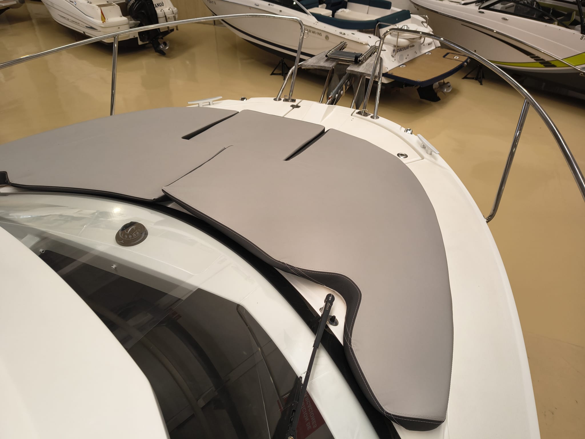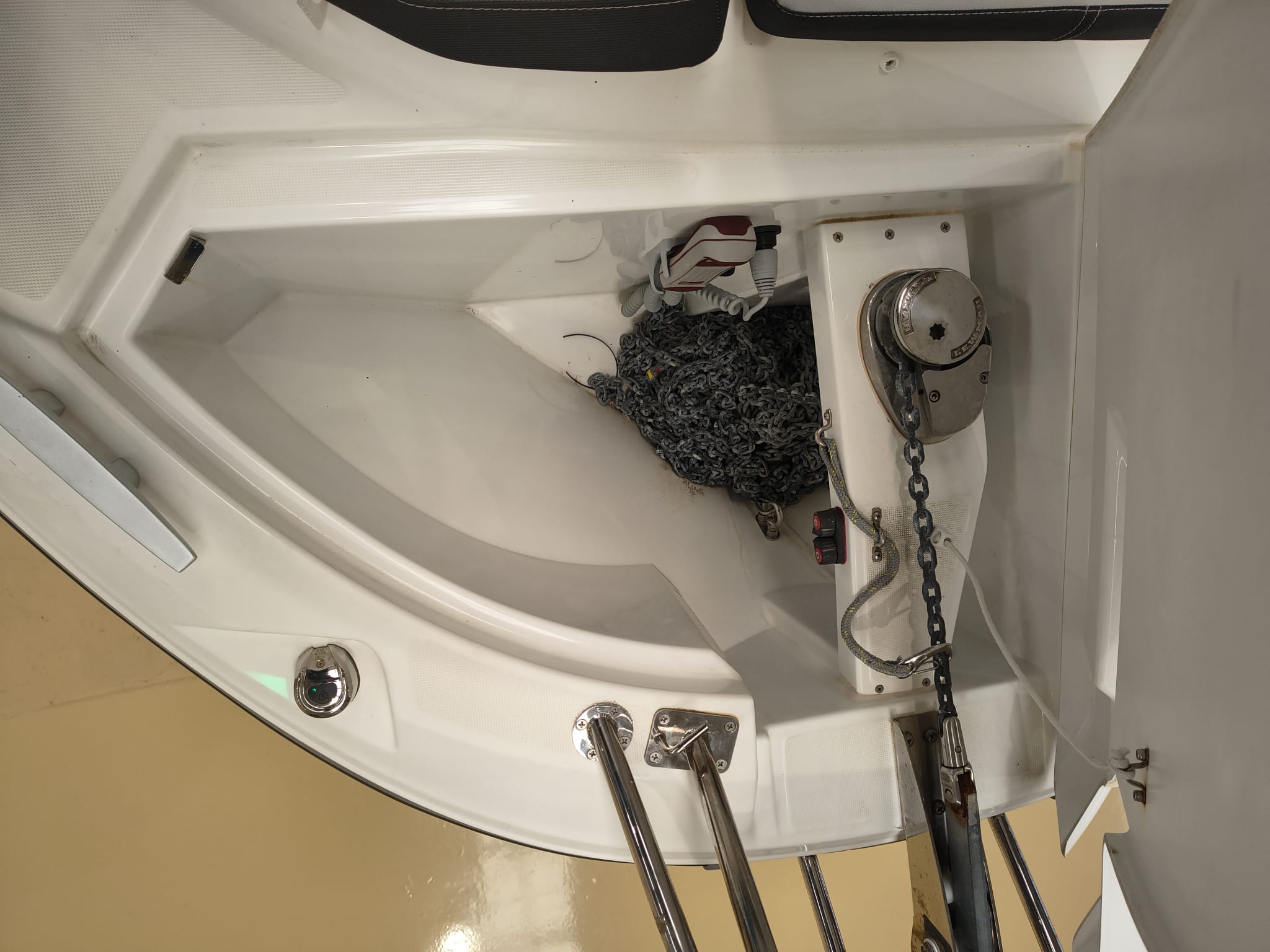 Bimini-Guindeau électrique-Coussin bain soleil avant-Table cockpit-Vhf-Tour  ski-Douche en poupe-Coussin bain soleil arriere-Prise quai 220 v.-Chargeur de batteries-Support en Hard-Top-Frigo 12v.-Cuisinière à gaz-Propulseur d'Étrave-Gps/Plotter/Sondeur-Équipement audio-Toilette marin avec reservoir d'eau noires-Flaps Zipwake-Commande Électronique.