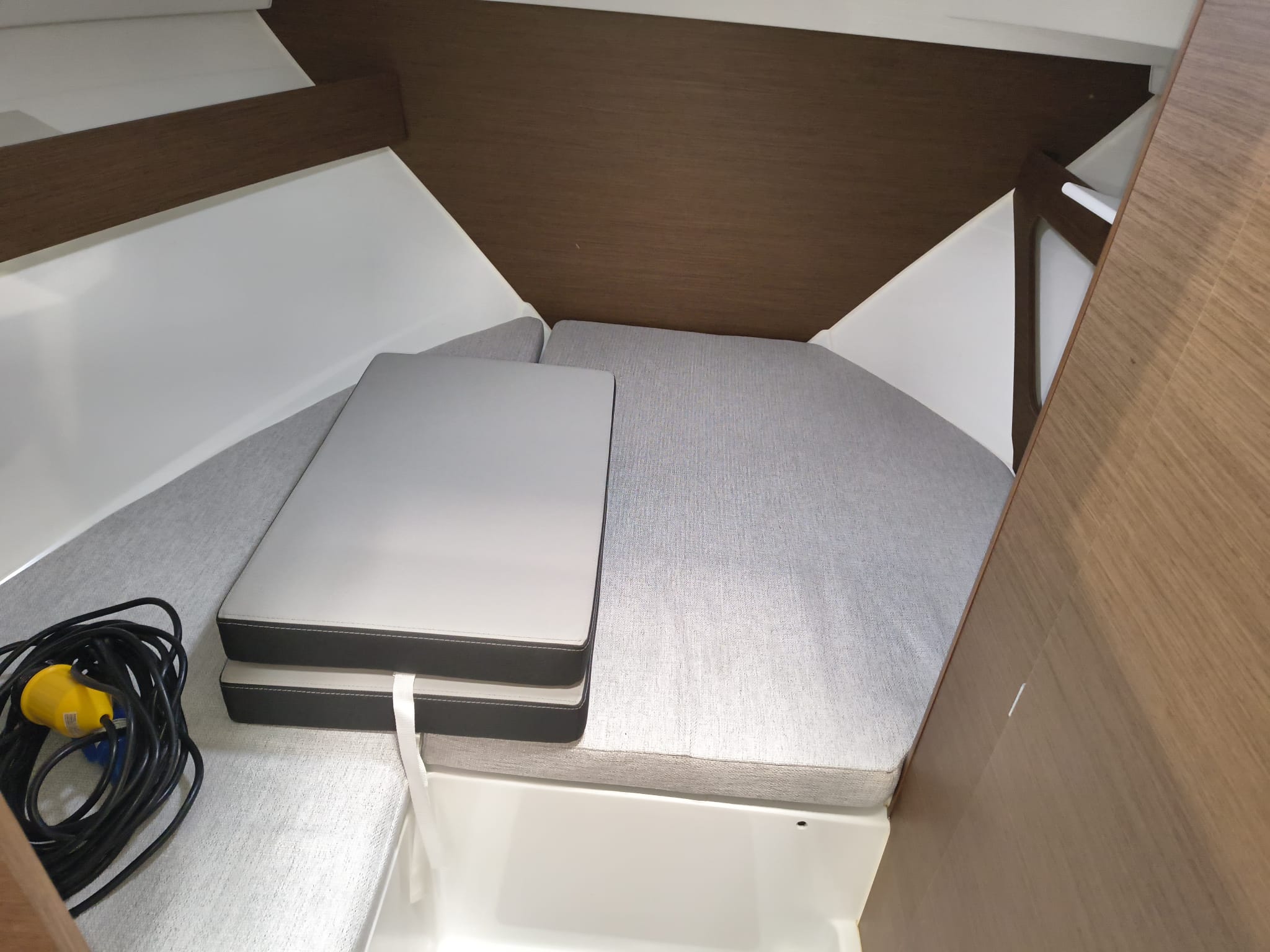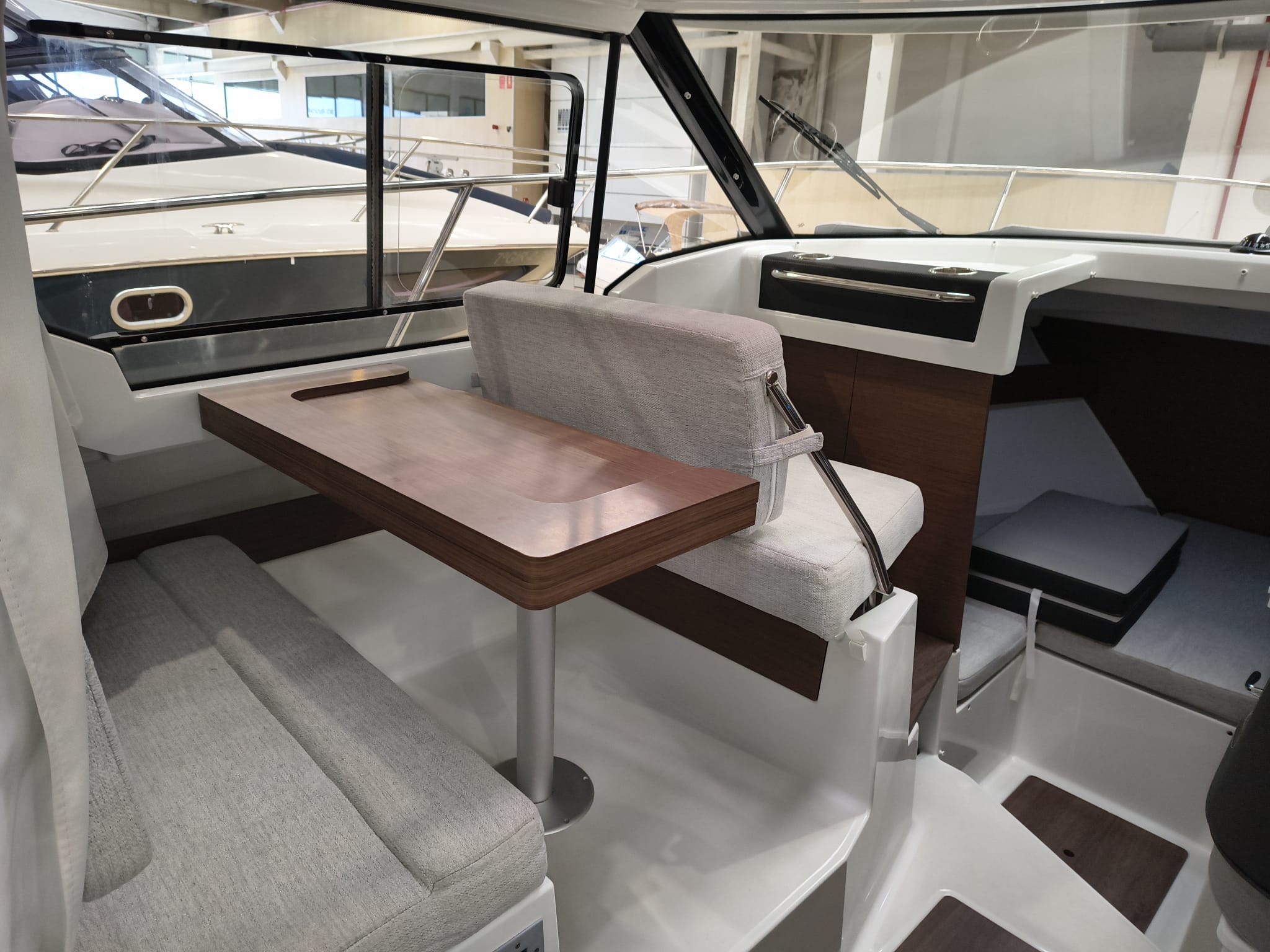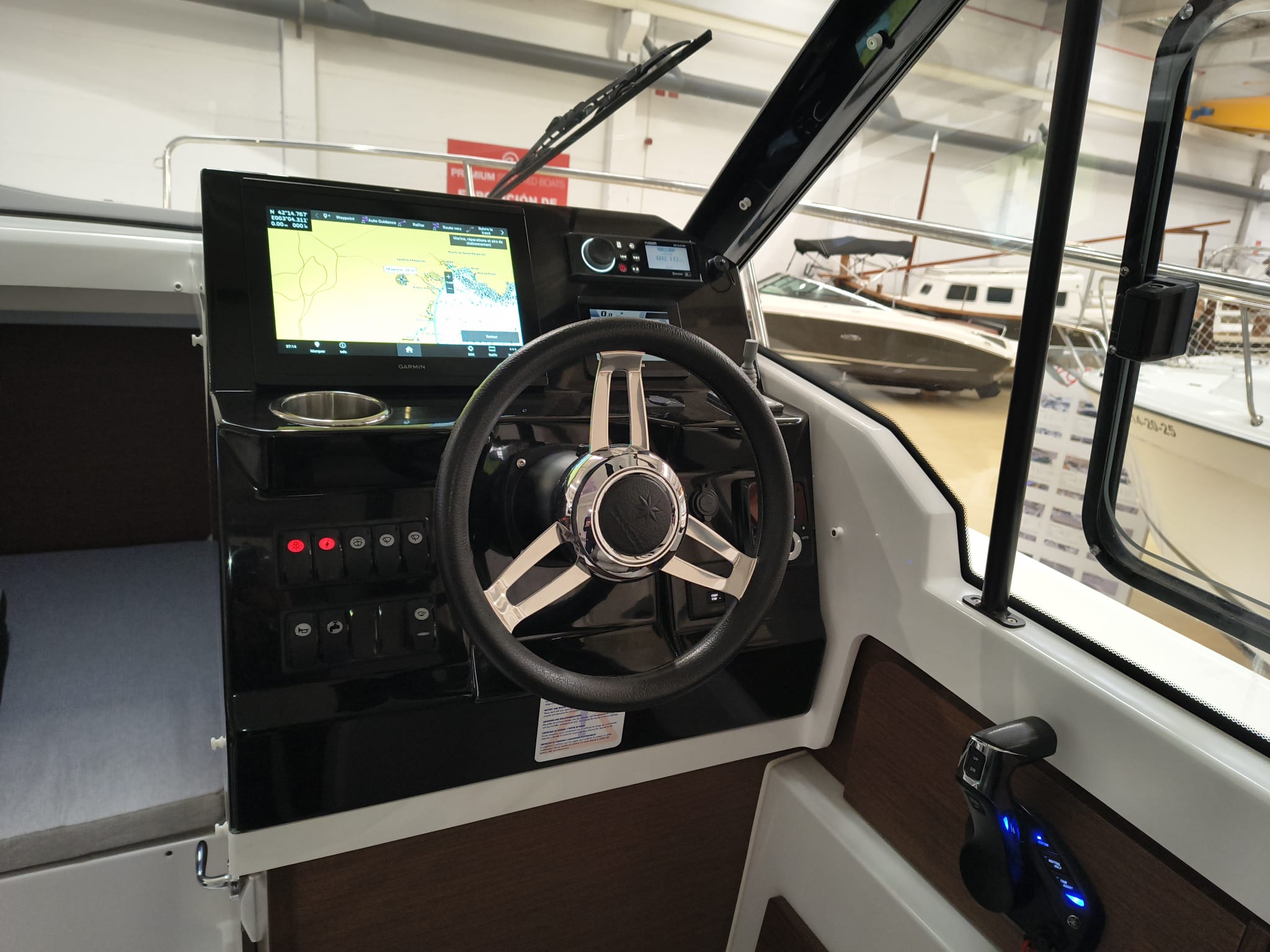 Bimini-Guindeau électrique-Coussin bain soleil avant-Table cockpit-Vhf-Tour  ski-Douche en poupe-Coussin bain soleil arriere-Prise quai 220 v.-Chargeur de batteries-Support en Hard-Top-Frigo 12v.-Cuisinière à gaz-Propulseur d'Étrave-Gps/Plotter/Sondeur-Équipement audio-Toilette marin avec reservoir d'eau noires-Flaps Zipwake-Commande Électronique.