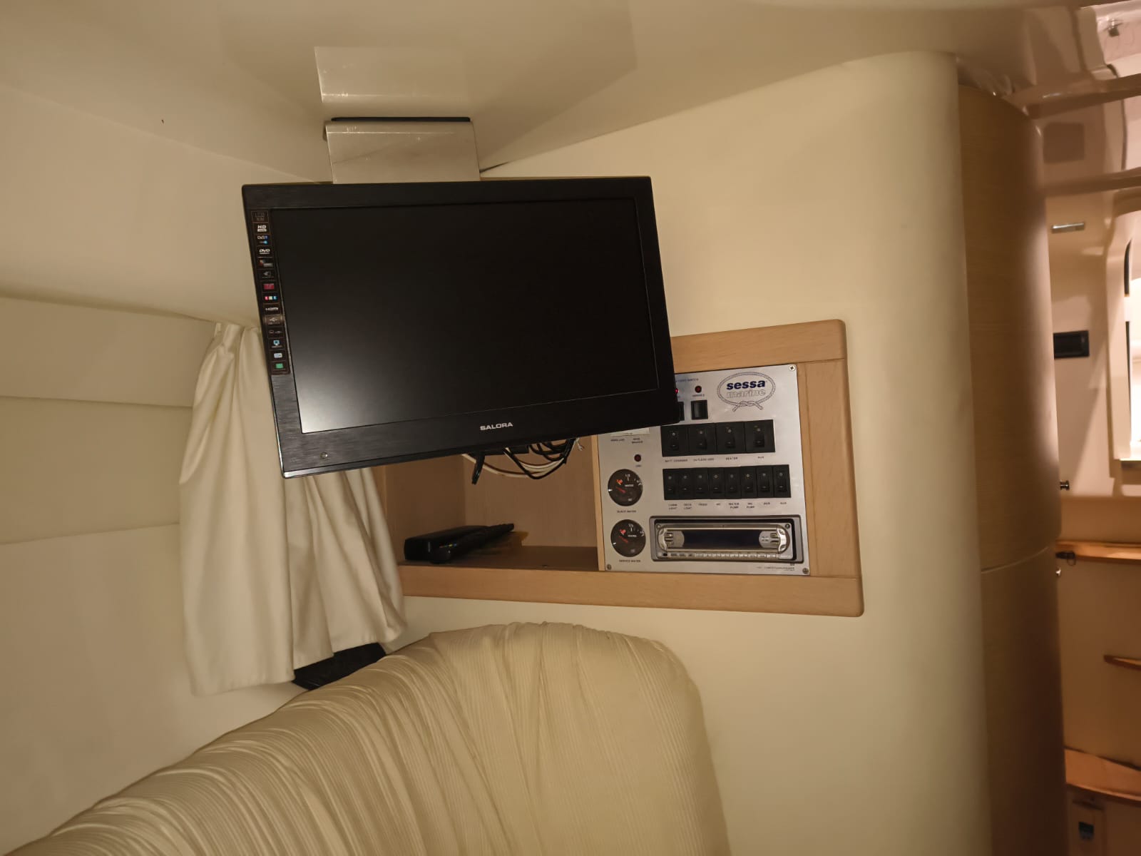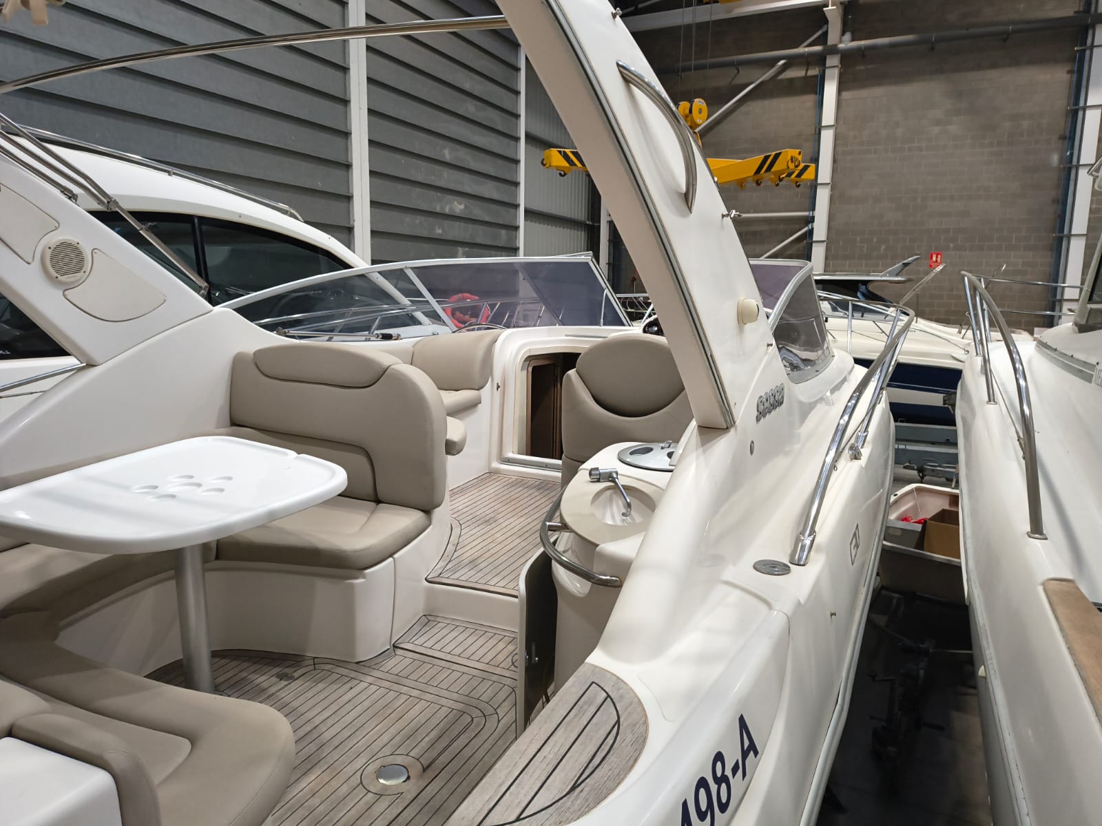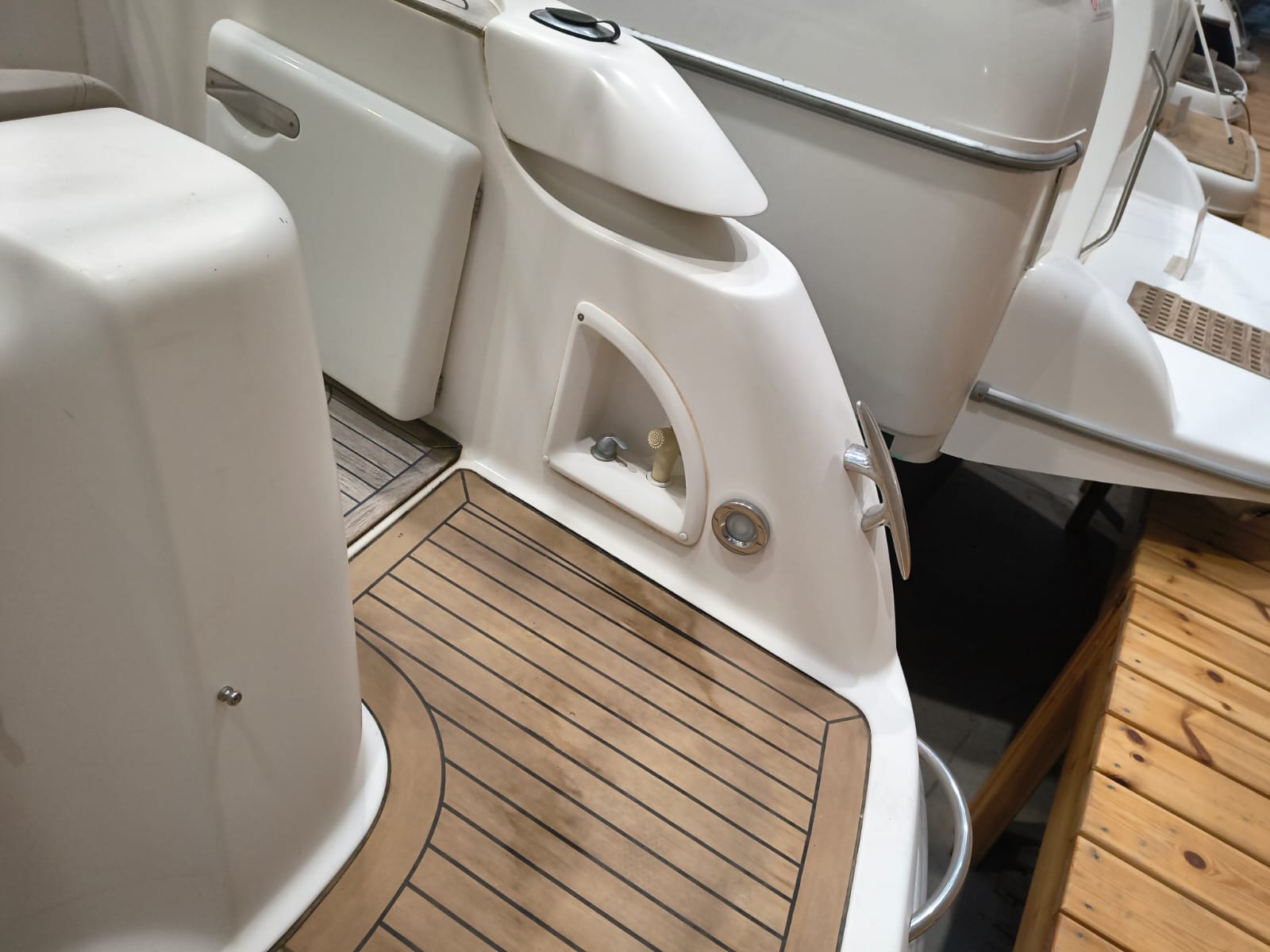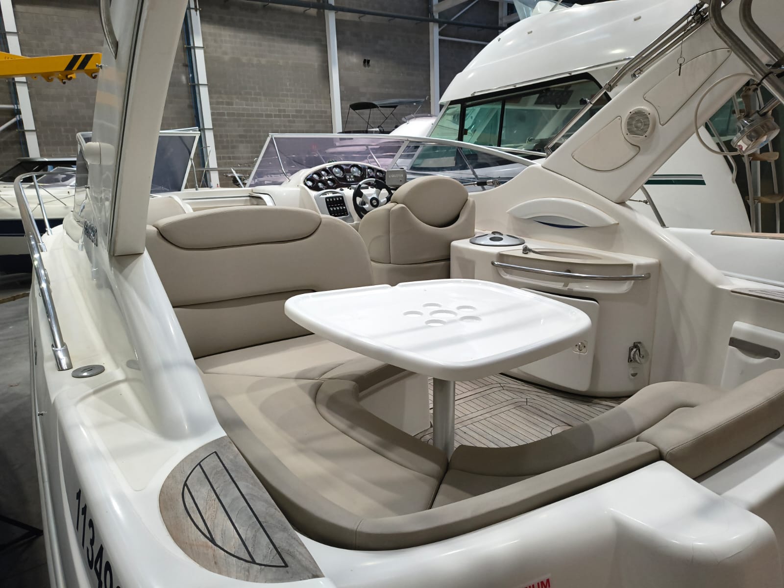 Guindeau électrique - Trim tabs - Taud soleil - Coussin bain de soleil avant - Réfrigérateur 12 V dans le cockpit - Réfrigerateur 12 V dans la cabine - Douche à poupe - Prise de quai 220 V - Chargeur de batteries - Table dans la cabine transformable en lit - WC électrique - Cuisine à gaz - Four à micro-ondes - Propulseur d'étrave - GPS/Plotter/Sondeur - VHF - Équipement audio - Table dans le cockpit - TV – Antifouling