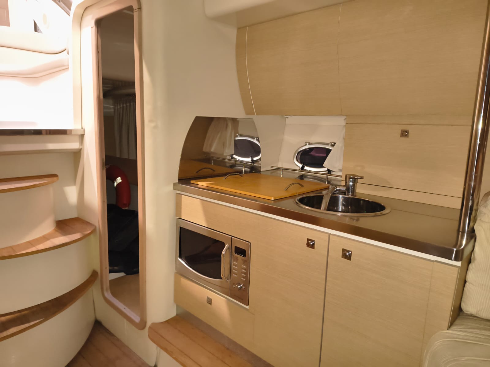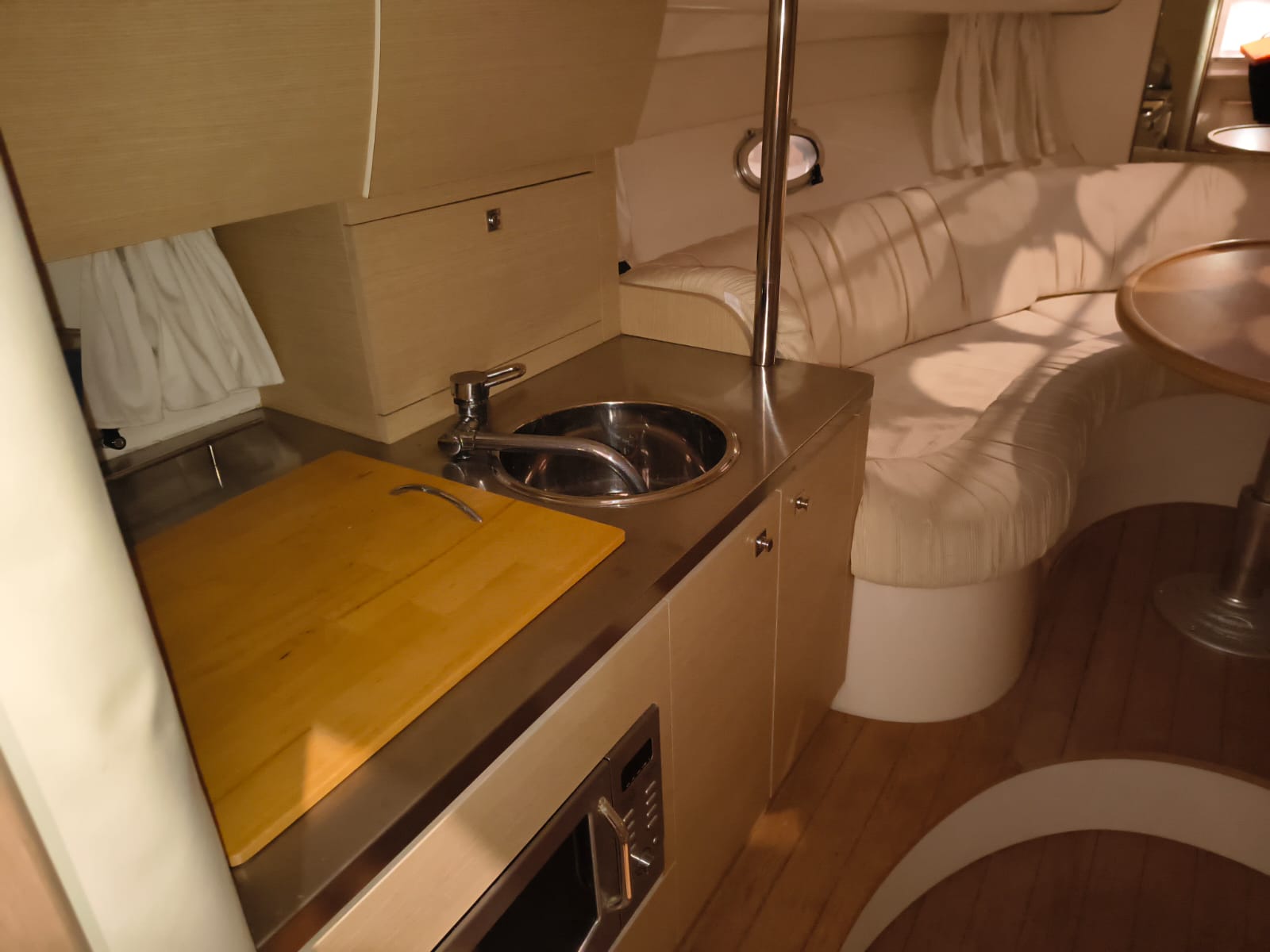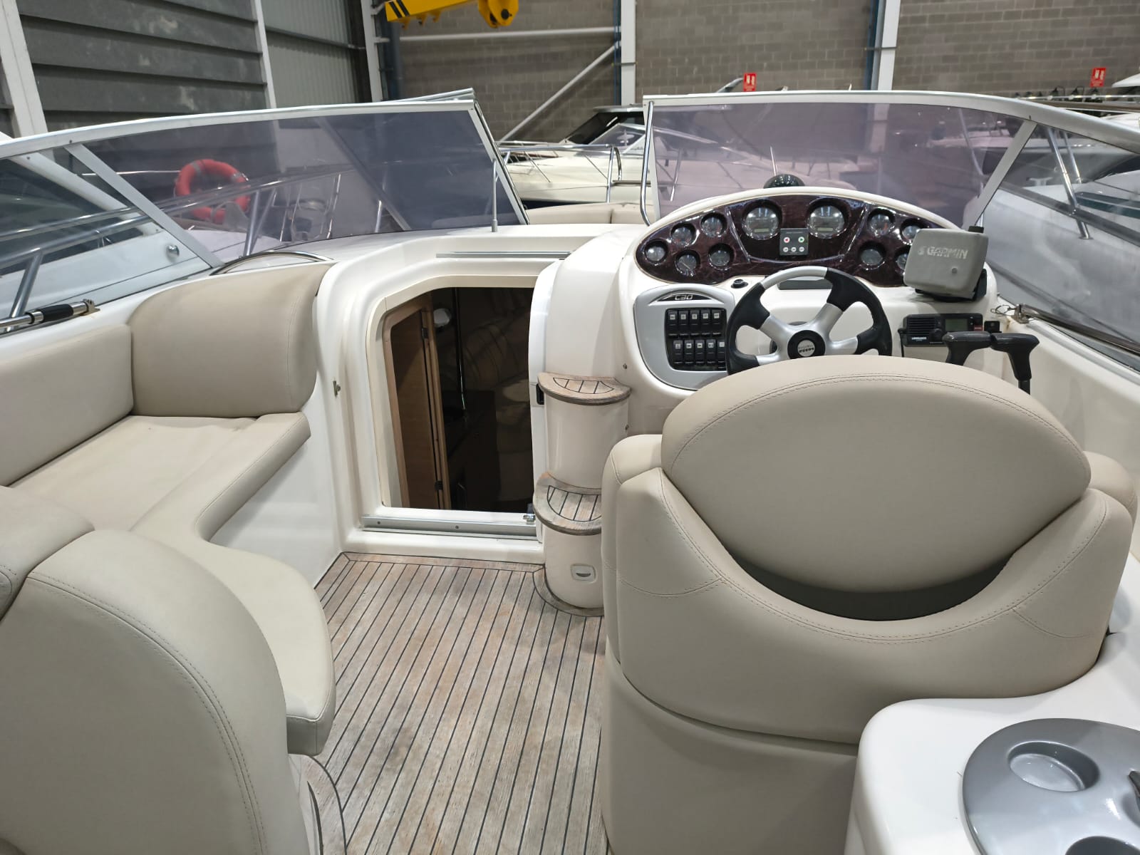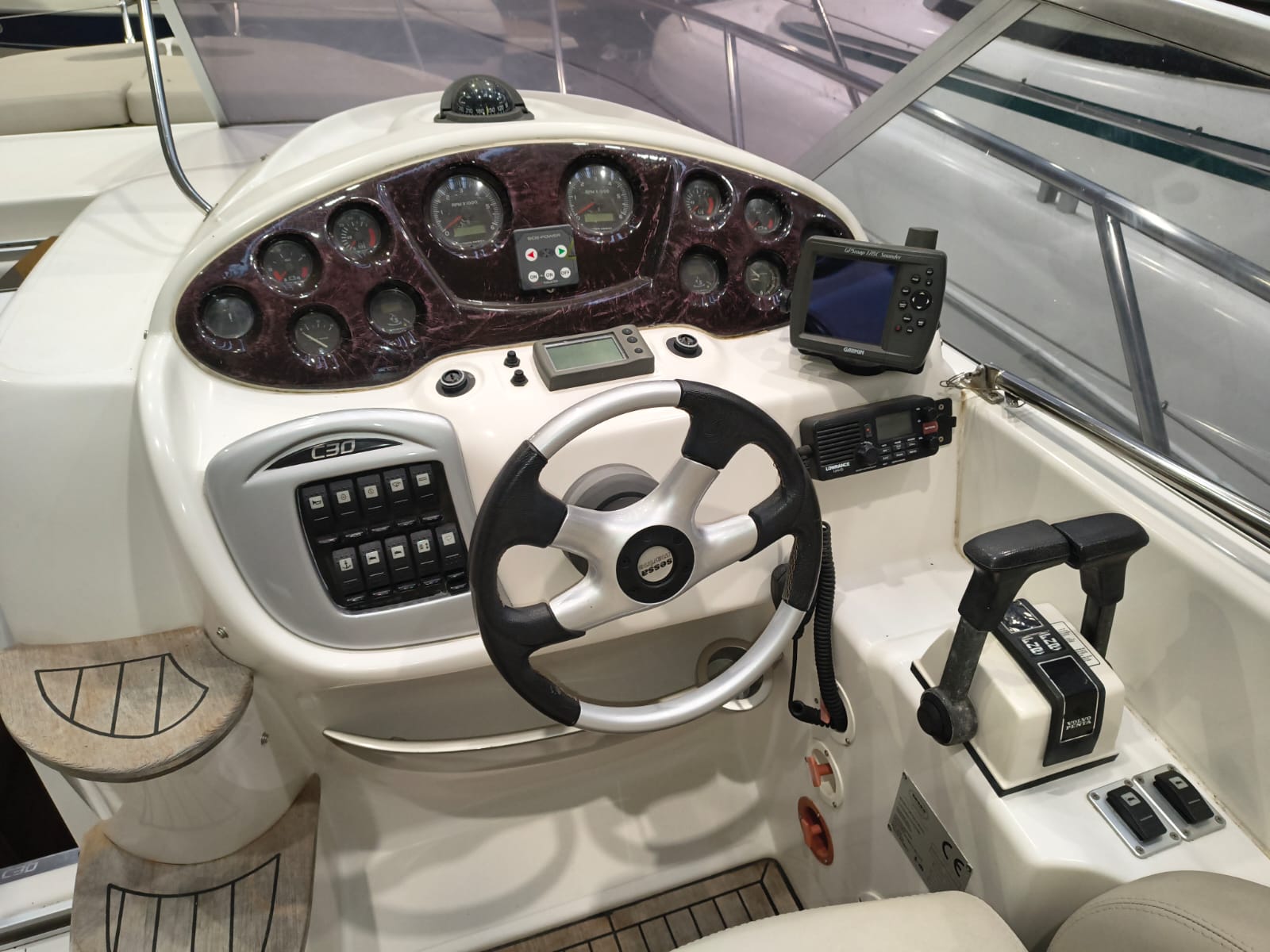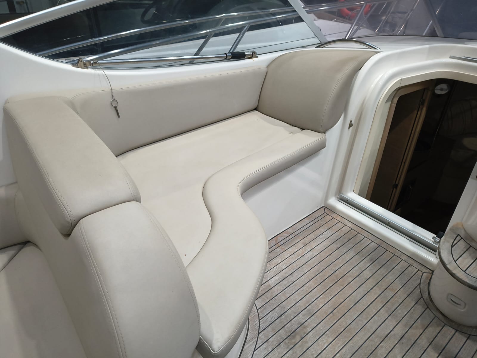 Guindeau électrique - Trim tabs - Taud soleil - Coussin bain de soleil avant - Réfrigérateur 12 V dans le cockpit - Réfrigerateur 12 V dans la cabine - Douche à poupe - Prise de quai 220 V - Chargeur de batteries - Table dans la cabine transformable en lit - WC électrique - Cuisine à gaz - Four à micro-ondes - Propulseur d'étrave - GPS/Plotter/Sondeur - VHF - Équipement audio - Table dans le cockpit - TV – Antifouling