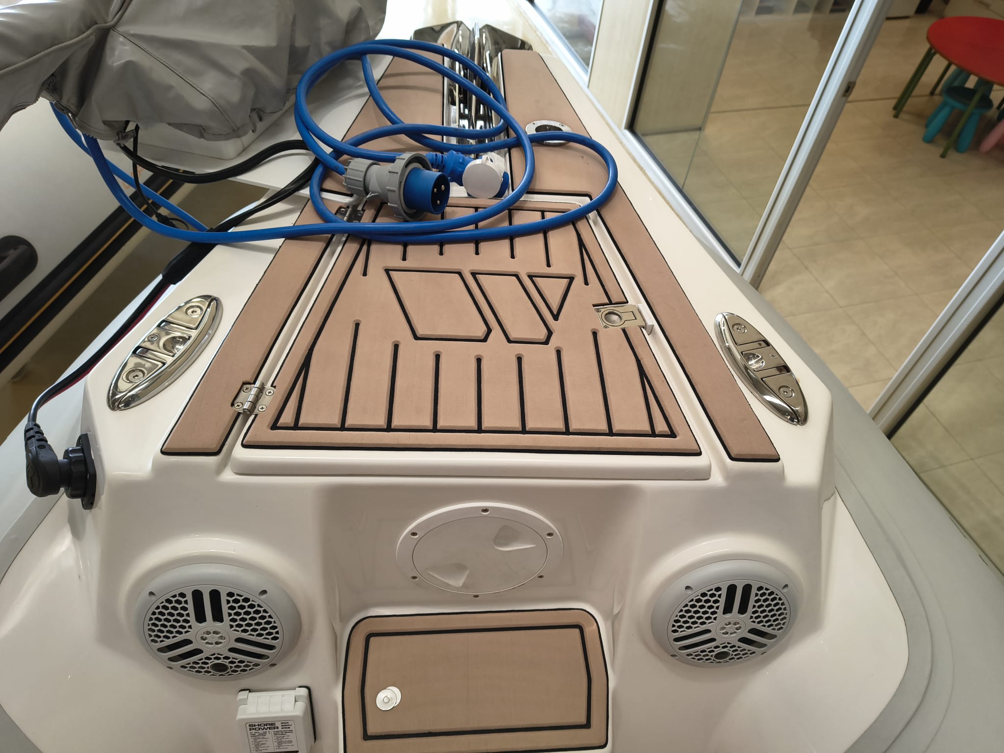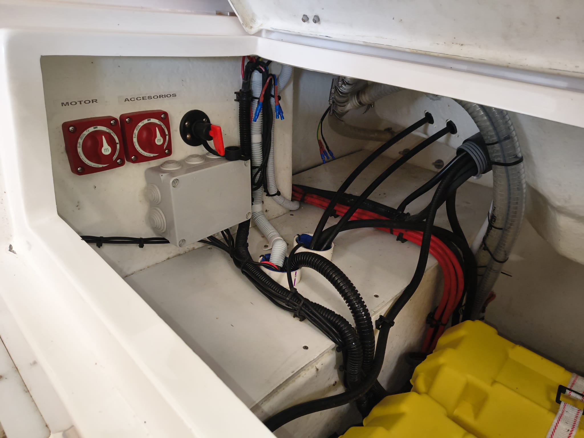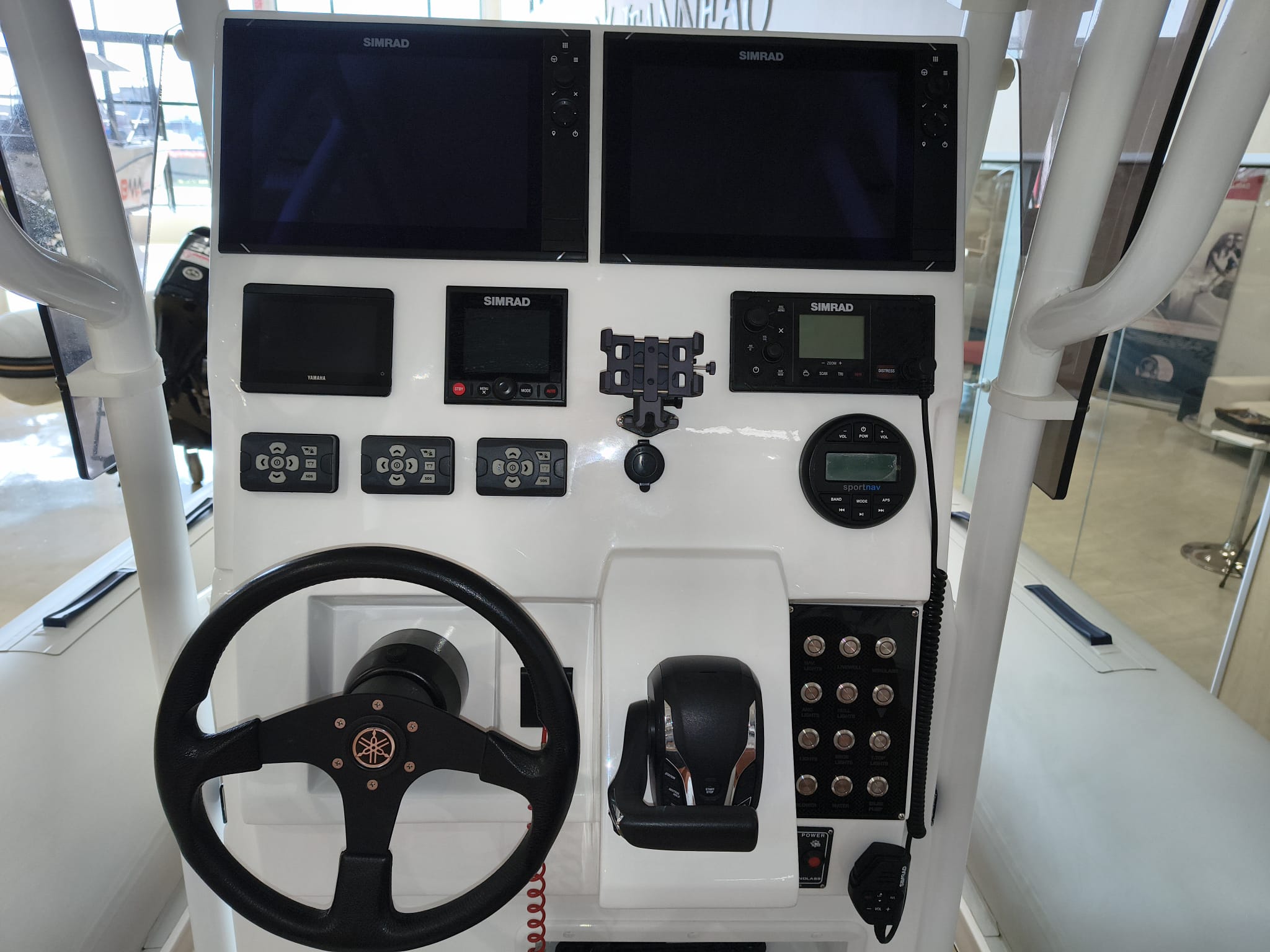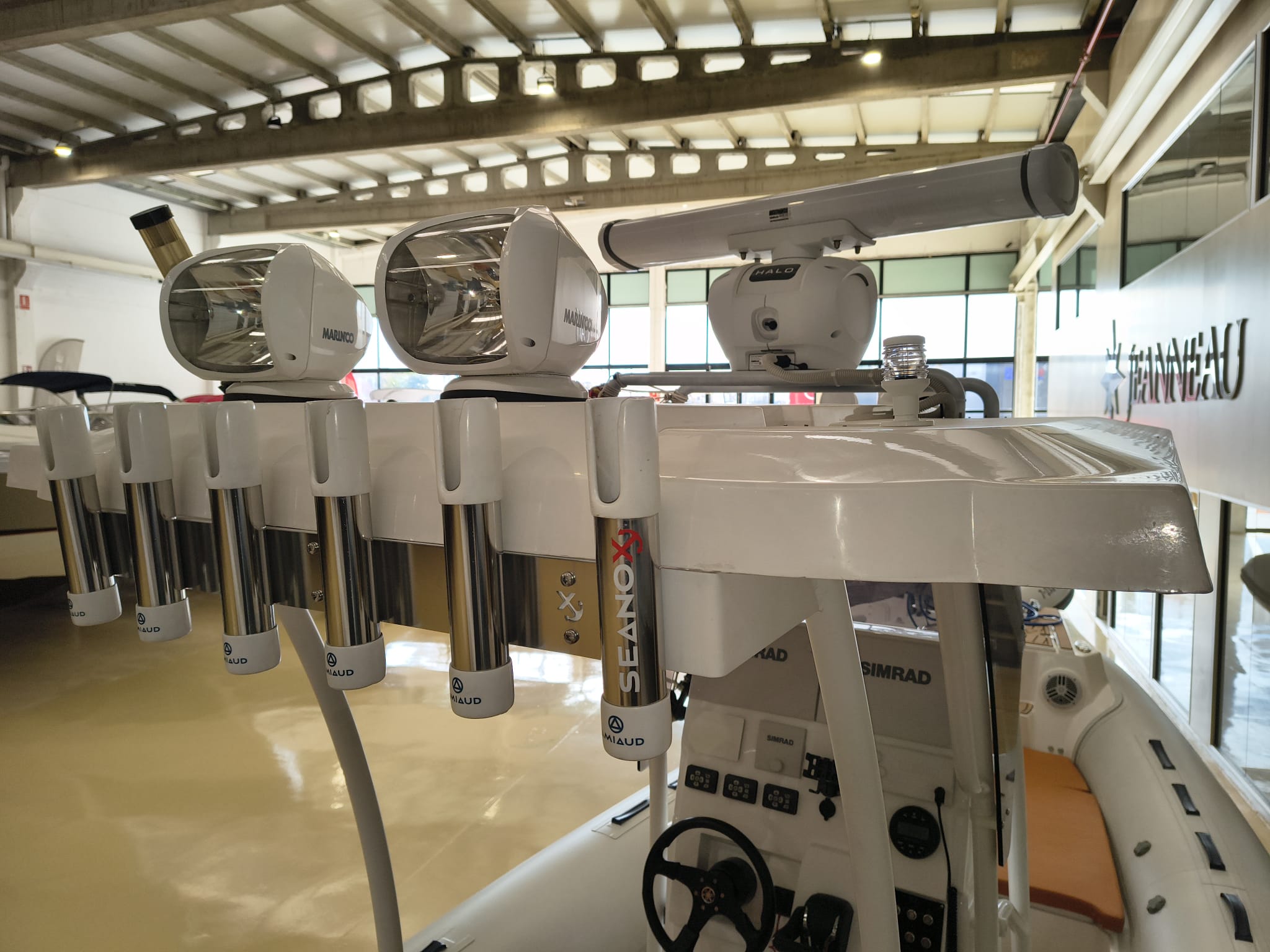 Deux écrans multifonctions Simrad 12 " - Radar Halo 24 - Transducteur sondeur 1 Kw - Caméra de vision nocturne Sionix - Pilote automatique - Connexion engine display Simrad - 3 Projecteurs télécommandés - Support d'ancrage en fibre avec ancre en acier inoxydable - Guindeau électrique - Pompe de rinçage - Deux batteries de service - Minn Kotta Instinct - Porte Canne Rocket - Installation pour cannes pêche électriques - Prise quai 220 v. - Chargeur de batteries - Vhf - T-Top - Douche - Seadek dans cockpit - Kit audio